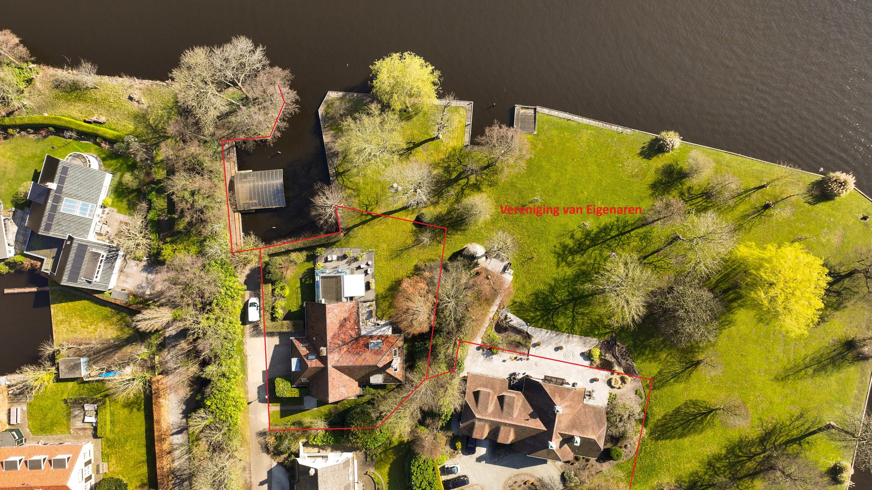 What makes this property so special is that it is situated on 1,032 m² of private land and that you, as the owner, join the VvE that owns and leases (in perpetuity) another 6,500 m² of land and water. This plot includes a beautiful private park and an inner harbour, both exclusively intended for the exclusive use of you and the owners of the 5 adjacent villas. The photos already show the enrichment of this: the plot can be described as a green oasis and offers a lot of privacy. On the other side of the water you look out over the nature reserve 'Polders Poelgeest'.