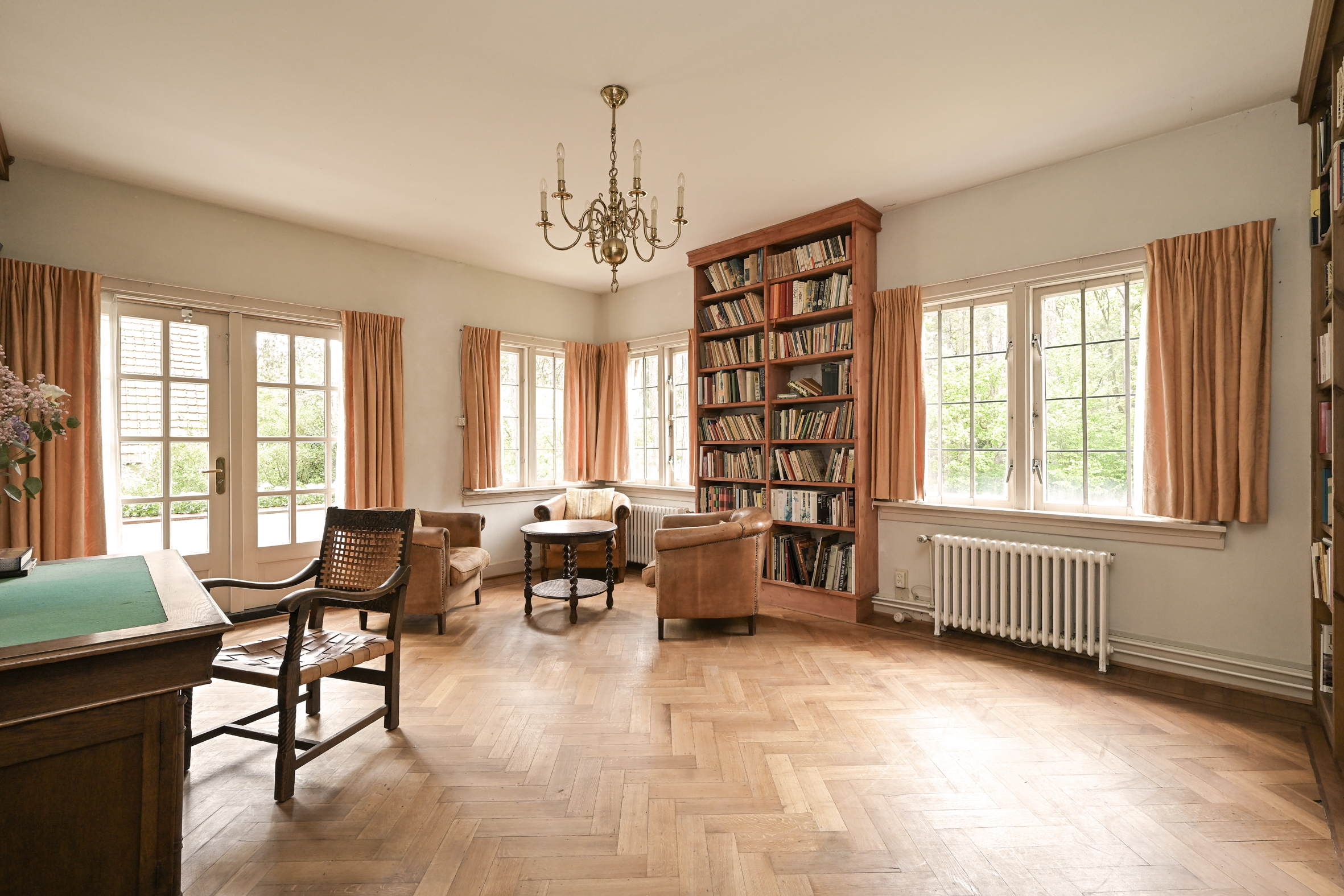 Detached villa Wassenaar offers a light-filled and charming residence, distinguished by its thatched roof and beautifully landscaped, sunny plot of 1000 m². The villa provides approximately 237 m² of refined living space, blending understated style with palpable warmth. Signature oak accents—seen in the solid front door, stair finishes, and parquet flooring—underscore a thoughtful attention to authentic materials and timeless design.