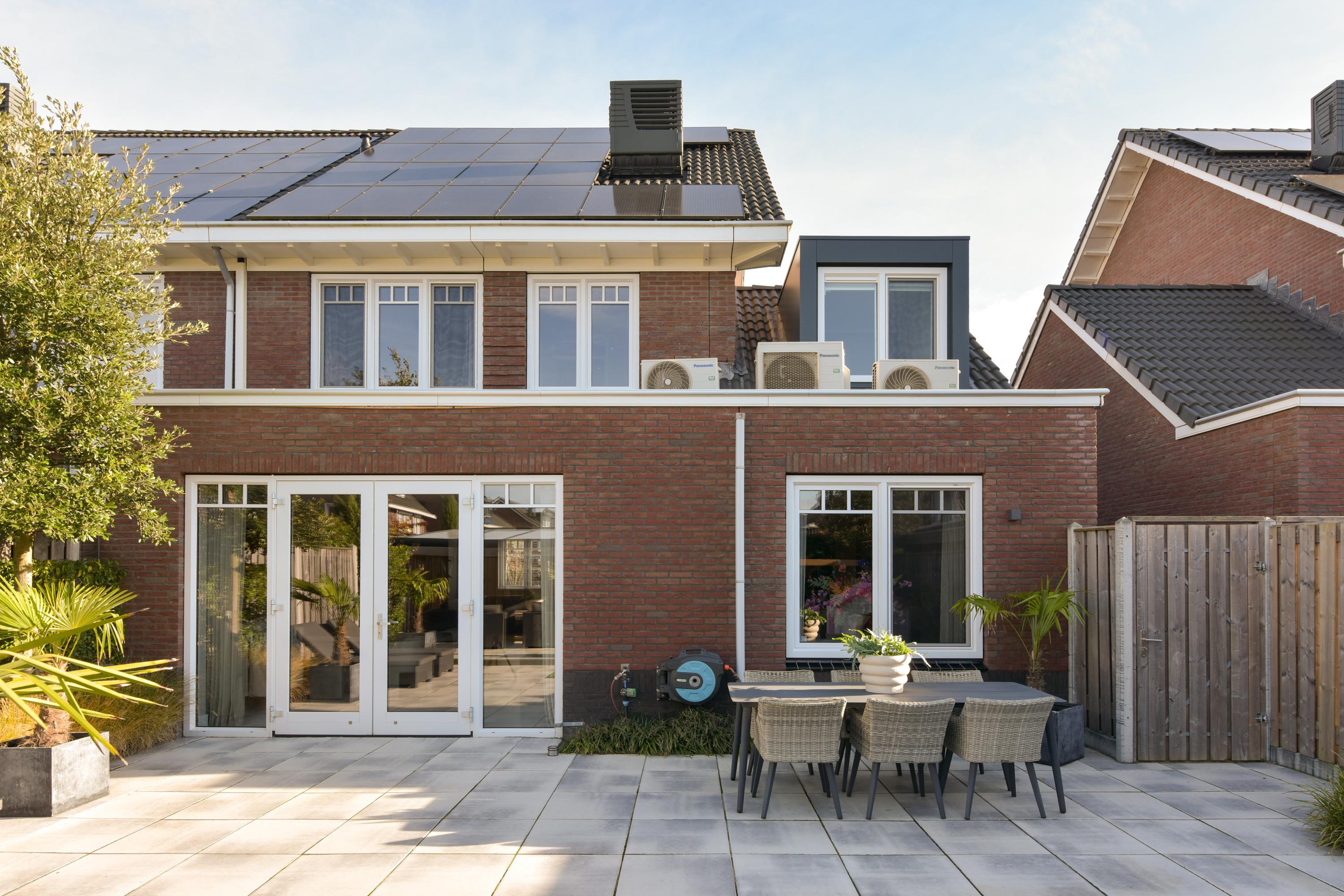 Sustainability and comfort are central to this home. With 20 solar panels, a water and air heat pump, a balanced heat recovery ventilation system, energy label A, and a private charging station, you are fully prepared for the future. Practical extras include parking for two cars on your own property, a storage room, and a rear access gate, making daily life convenient. Guests can also park easily right outside. Located in De Maricken, the neighborhood is family-friendly and green, with a playground within walking distance, schools, a health center, and shops close by. Excellent connections to surrounding cities complete the picture.