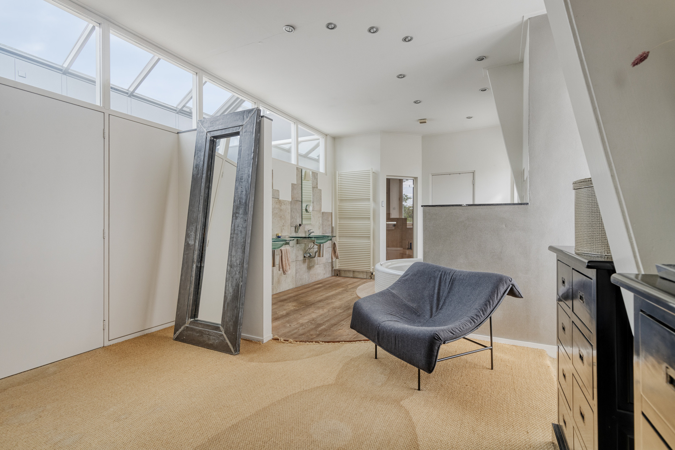 hoofdslaapkamer voor (ca. 40 m² incl. badkamer en-suite), wandafwerking stucwerk, vloer afgewerkt met tapijt, plafond afgewerkt met stucwerk;