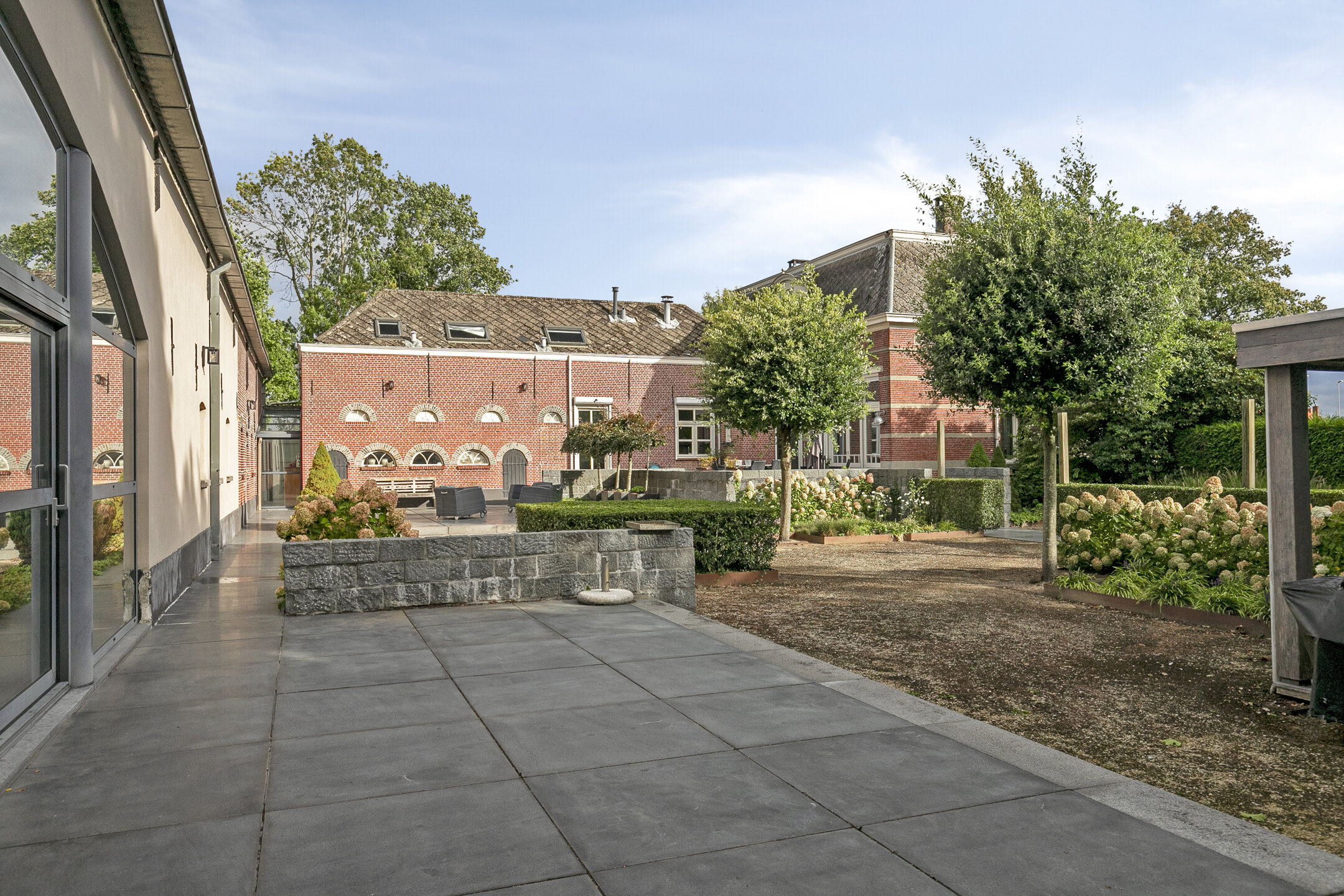 Erf verhard met authentieke kasteelkeien en paden met Dolomiet;