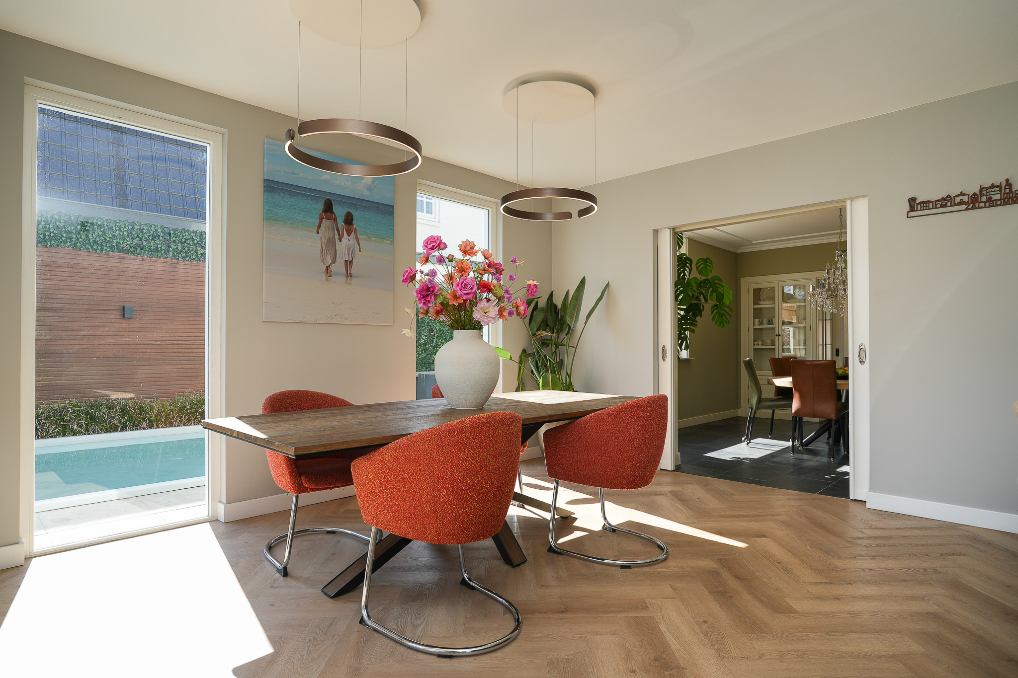 Near the historic centre of Zaltbommel stands this luxurious, pre-war detached villa, offering six bedrooms, two bathrooms and a multifunctional outbuilding, all set within a sun-drenched garden with a swimming pool.