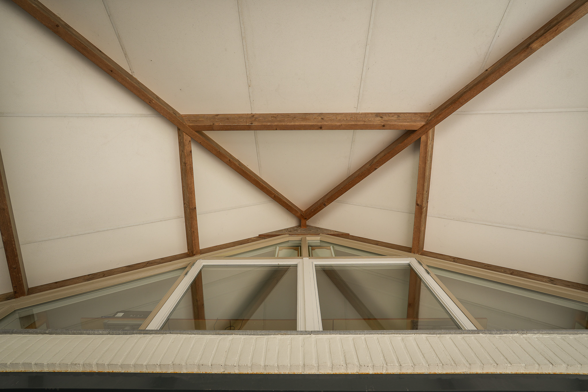 The electrical installation has been completely renewed, incorporating retro-style switches combined with Philips Hue lighting. Twelve solar panels have been installed on the flat roof, and the main roof was fully renovated in 2024, including new battens and tiles. The zinc work had already been renewed the year before.