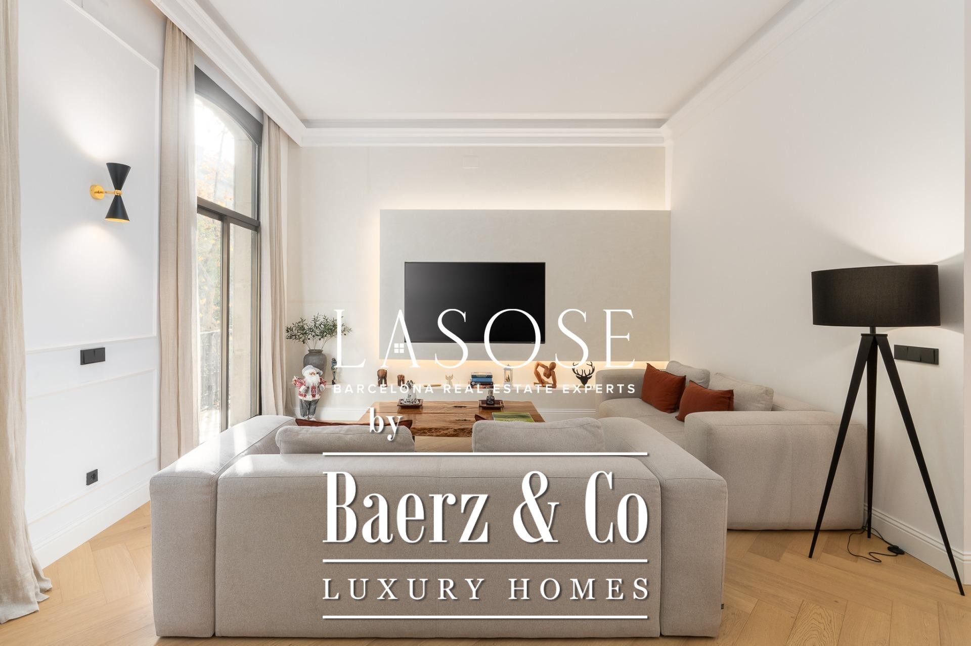 Este apartamento modernista en el Quadrat d'Or de Barcelona es una oportunidad única, ofreciendo 150 metros cuadrados de espacio interior meticulosamente restaurado y una extraordinaria terraza trasera de aproximadamente 100 metros cuadrados. La vivienda, situada en un edificio protegido, fue completamente renovada en 2024 con acabados de alta gama. Se han conservado detalles patrimoniales, como la carpintería exterior en roble natural, las altas puertas interiores y armarios empotrados únicos, aportando una sensación de calidad duradera.