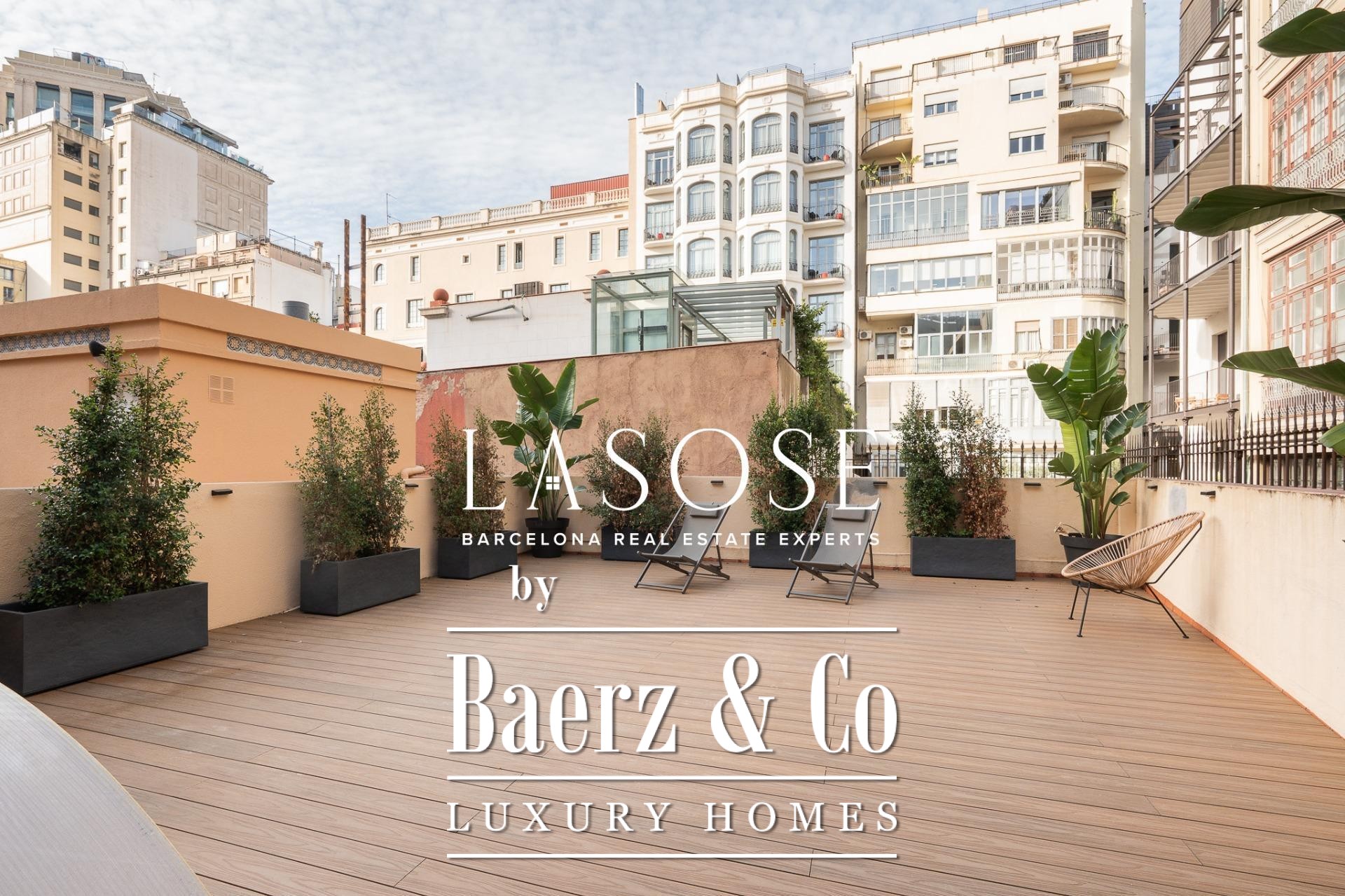 Uno de los grandes atractivos de la propiedad es la terraza privada, inusualmente grande para su ubicación en el Eixample, que ofrece espacio suficiente para una cocina exterior y una amplia zona de estar. Este apartamento modernista en venta en el Quadrat d'Or de Barcelona se sitúa entre la calle Casp y Passeig de Gràcia, rodeado de obras icónicas como la Casa Milà y la Casa Batlló, con boutiques de lujo y principales estaciones de metro a pocos minutos a pie. El edificio cuenta con ascensor y servicio de conserjería para mayor comodidad y discreción, ideal para quienes buscan exclusividad en pleno corazón de Barcelona.