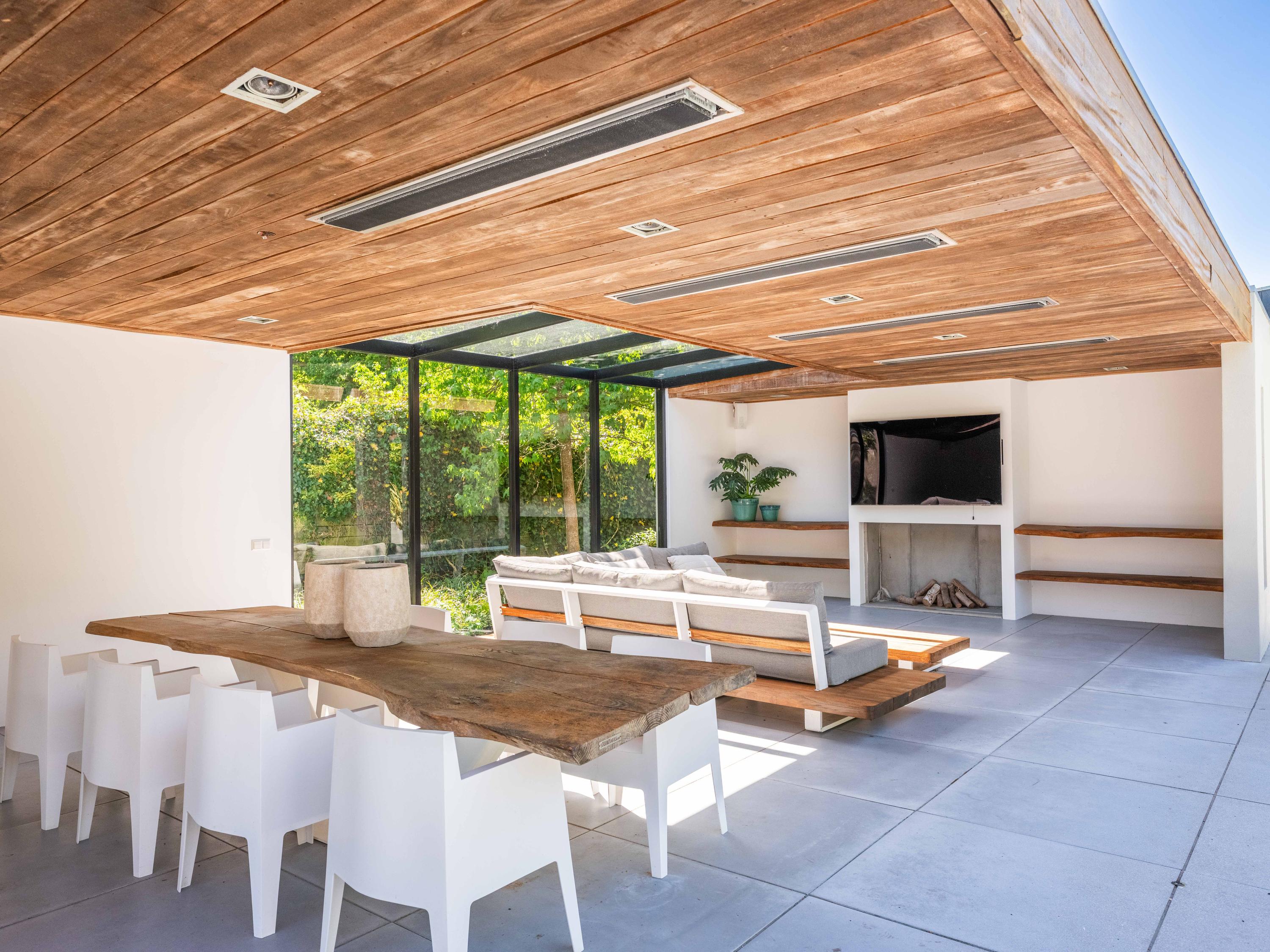 La suite principal ofrece un vestidor y un baño de concepto abierto con vistas a la piscina, reforzando la atmósfera de tranquilidad. Un altillo arriba brinda potencial para un espacio de trabajo adicional o área de retiro. En toda la casa, la calefacción por suelo radiante, una bomba de calor y el aislamiento clase A en techo, paredes, suelo y cristal HR proporcionan confort durante todo el año.