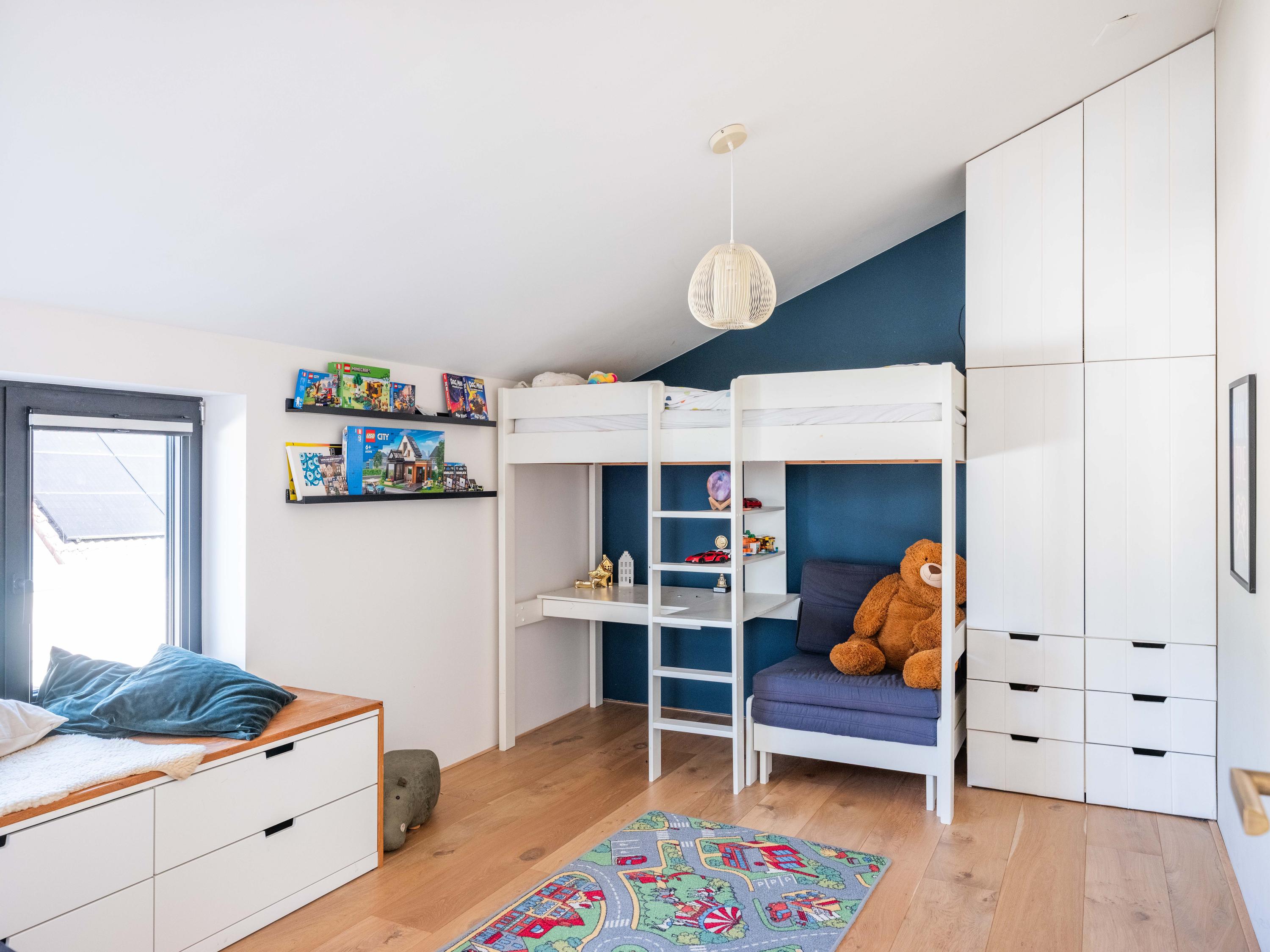 En la planta superior se encuentran tres dormitorios, un despacho versátil con vistas panorámicas, sala de yoga y un altillo con un diseño lúdico, ideales tanto para la vida familiar como para actividades creativas. Un segundo baño completo, una lavandería independiente y detalles cuidadosamente pensados en todo el inmueble aportan sensación de confort estudiado.