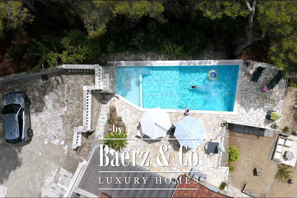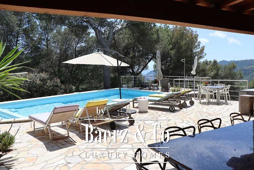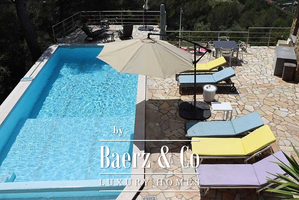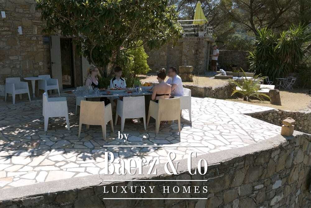 La piscina de 11 por 4 metros, renovada íntegramente en 2022, se sitúa junto a una amplia terraza con vistas al valle y al mar. Múltiples terrazas, cocinas exteriores y pérgolas sombreadas invitan a disfrutar de comidas relajadas todo el año. Los senderos alrededor de la casa están rodeados de olivares y el abundante sol garantiza cosechas excepcionales.