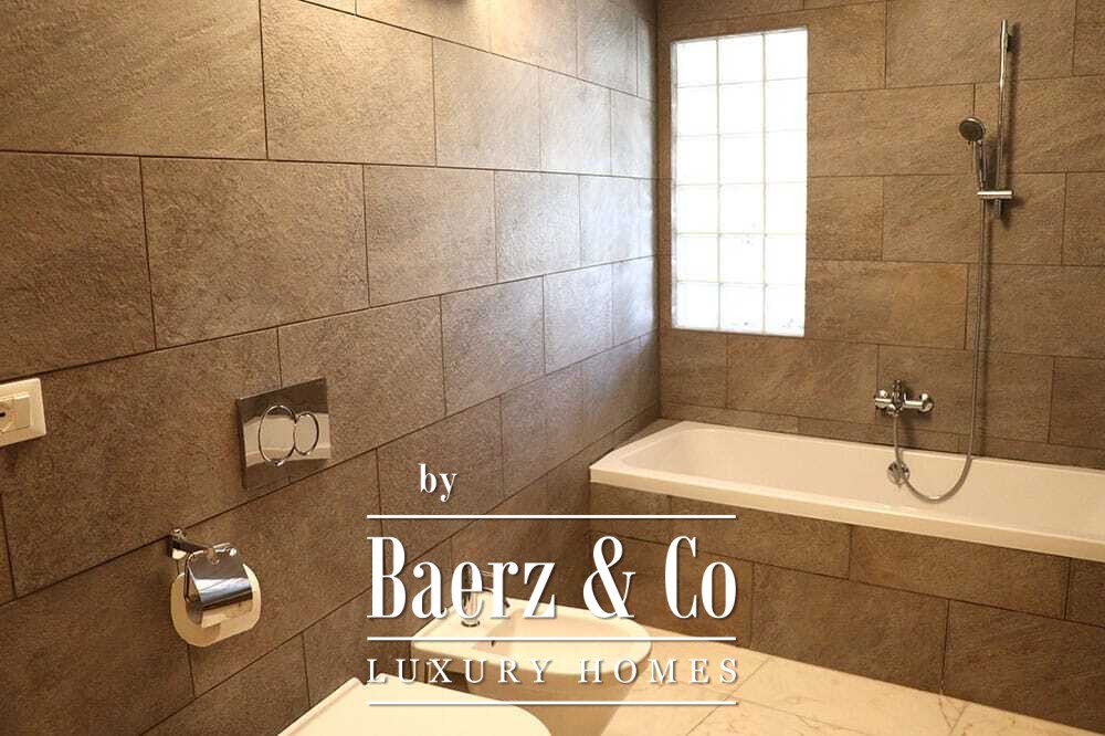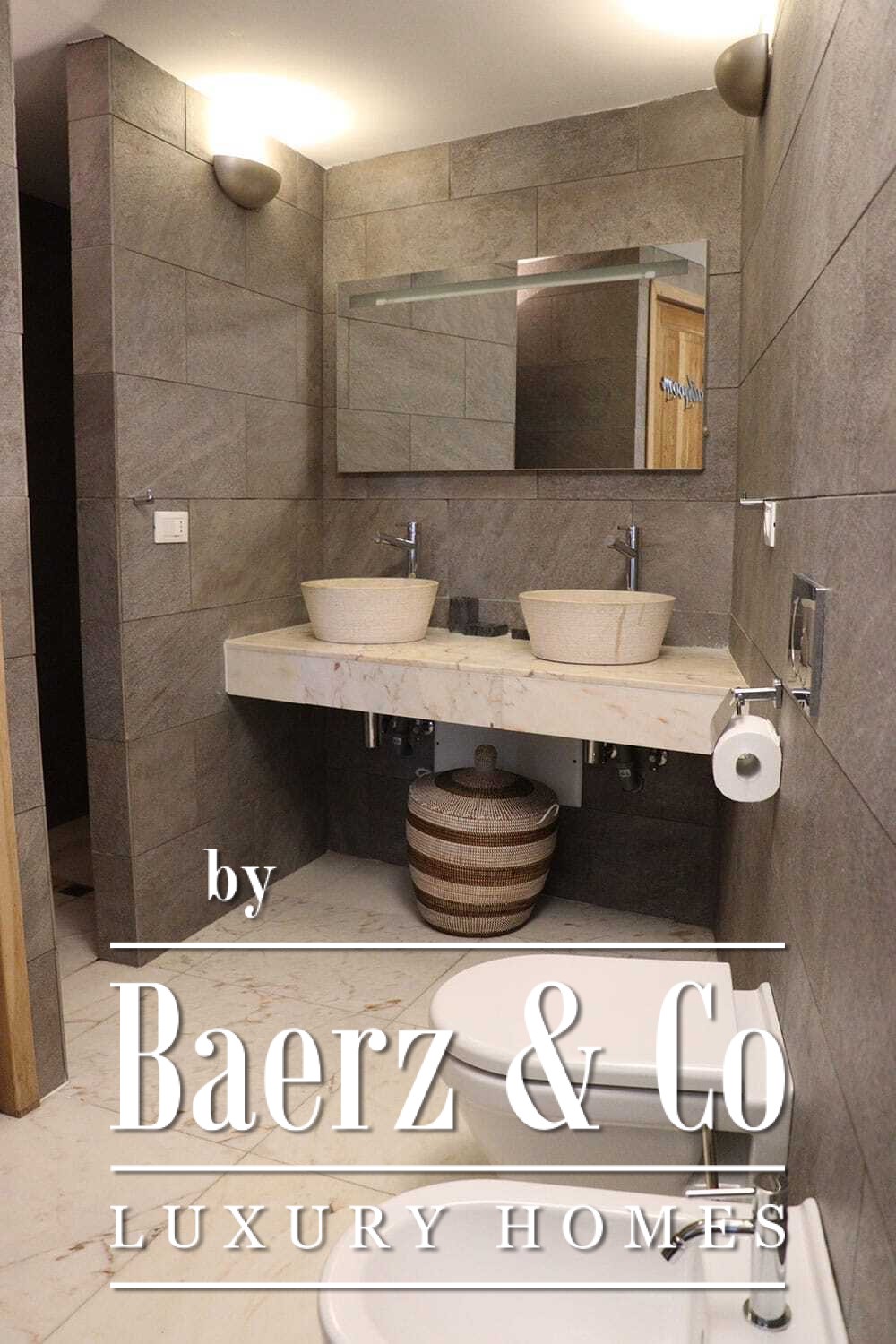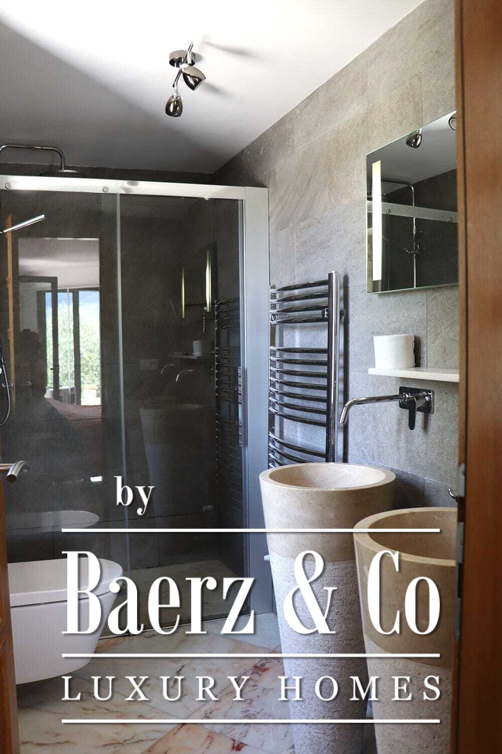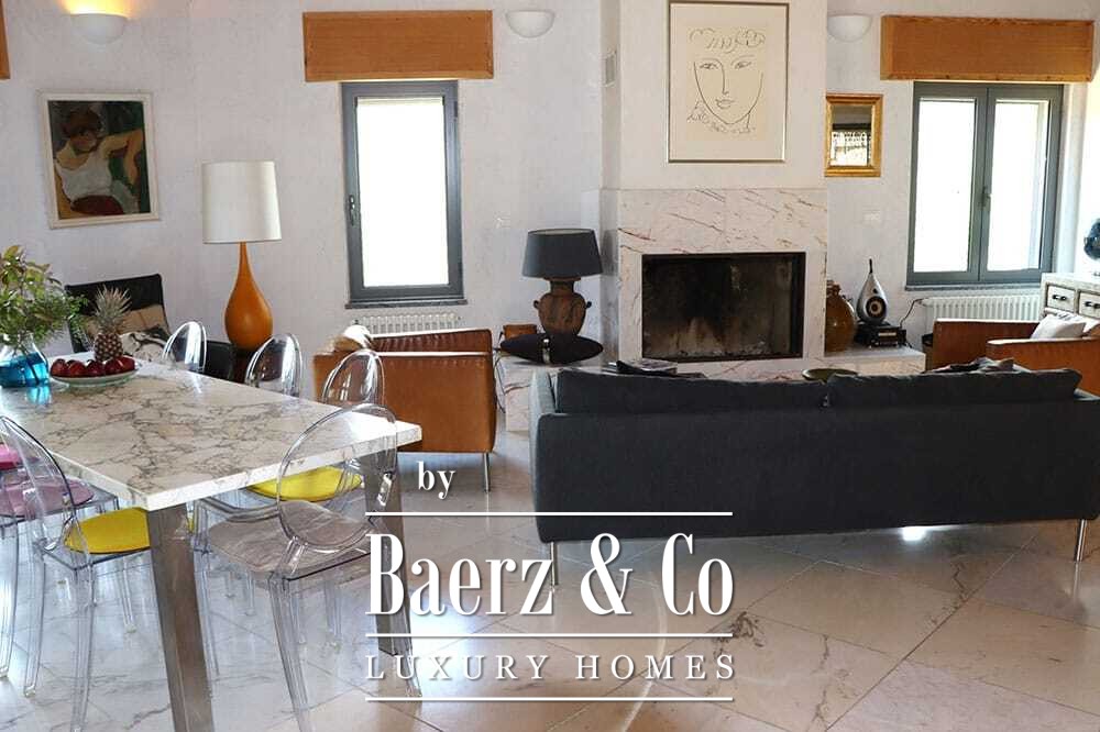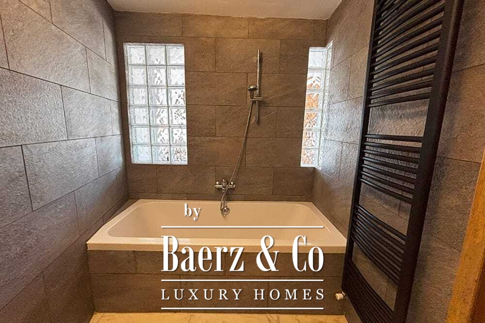 Distribuida en dos plantas, la villa cuenta con cuatro dormitorios y cuatro baños. Tres de los dormitorios en la planta baja, cada uno con puertas francesas, se abren a una terraza inferior con vistas montañosas. La suite principal dispone de un amplio baño, ducha separada, dos lavabos de mármol y accesorios de diseño, creando un ambiente de refugio. El dormitorio tipo estudio, con entrada independiente, aporta flexibilidad tanto para invitados como para convertirlo en zona de trabajo. En la planta superior, el salón con vigas de madera y chimenea se integra con una cocina de nogal y acero inoxidable equipada con electrodomésticos Miele de alta gama. Grandes puertas acristaladas conducen a una sala con segunda chimenea y acceso a terrazas provistas de mesas de granito y sillas Philippe Starck.