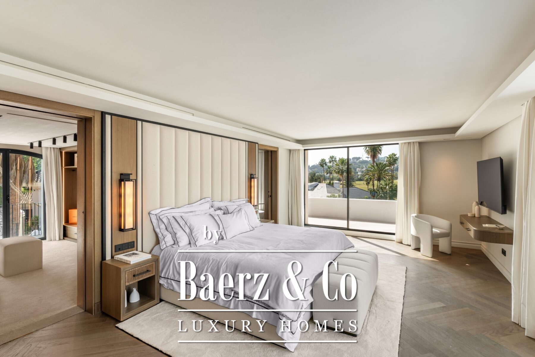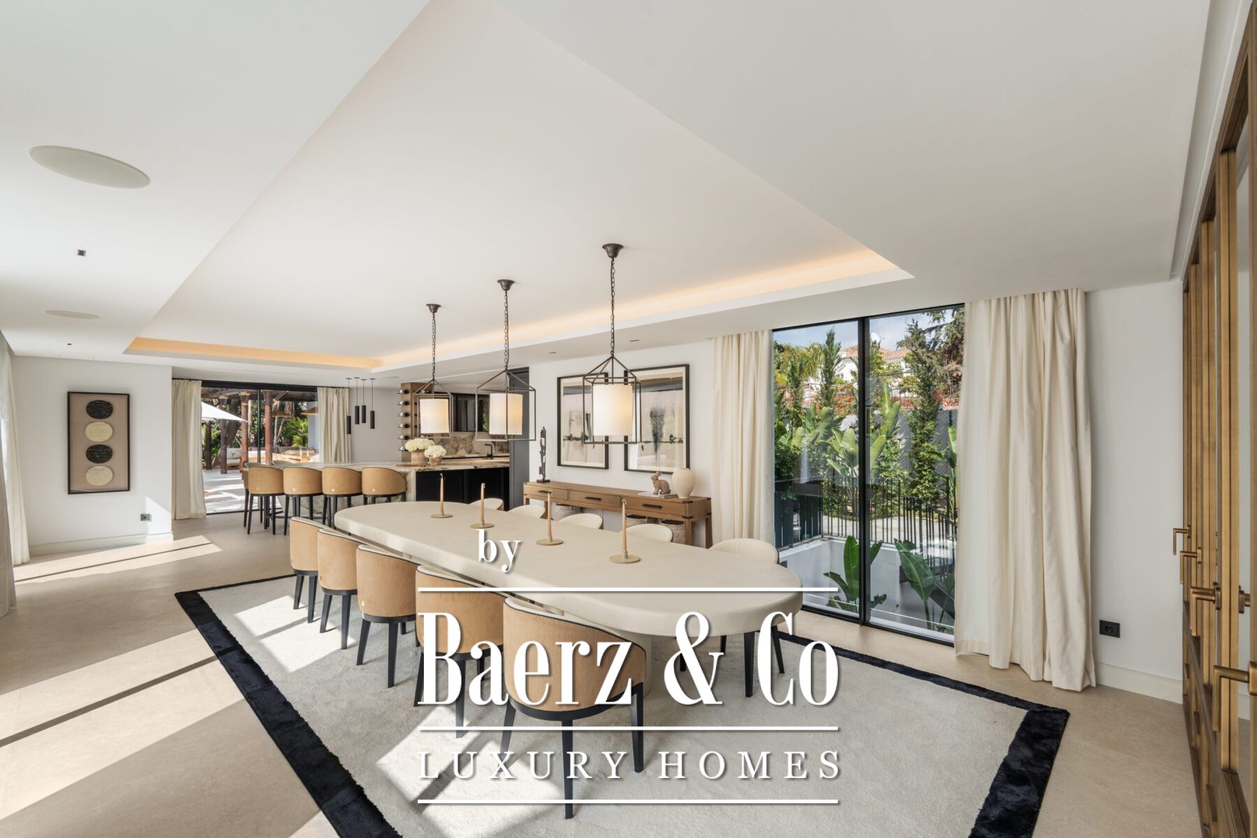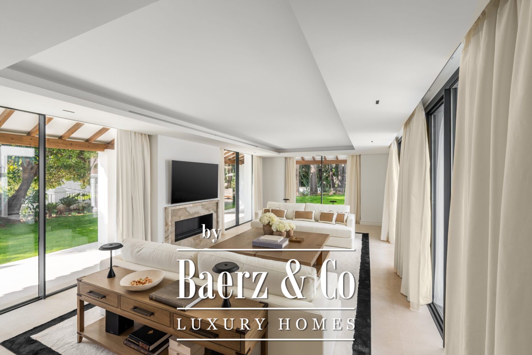 Tres salas de televisión independientes ofrecen flexibilidad para reuniones o momentos de privacidad. En el exterior, la exuberante jardinería forma un refugio privado para cenar al aire libre, tomar el sol o disfrutar de pausas serenas bajo el cielo mediterráneo. La cercanía a prestigiosos campos de golf, servicios locales, la playa y las impresionantes vistas a las montañas y el golf hacen de esta villa una opción ideal para quienes buscan confort atemporal, privacidad y un ritmo de vida sofisticado en Marbella.