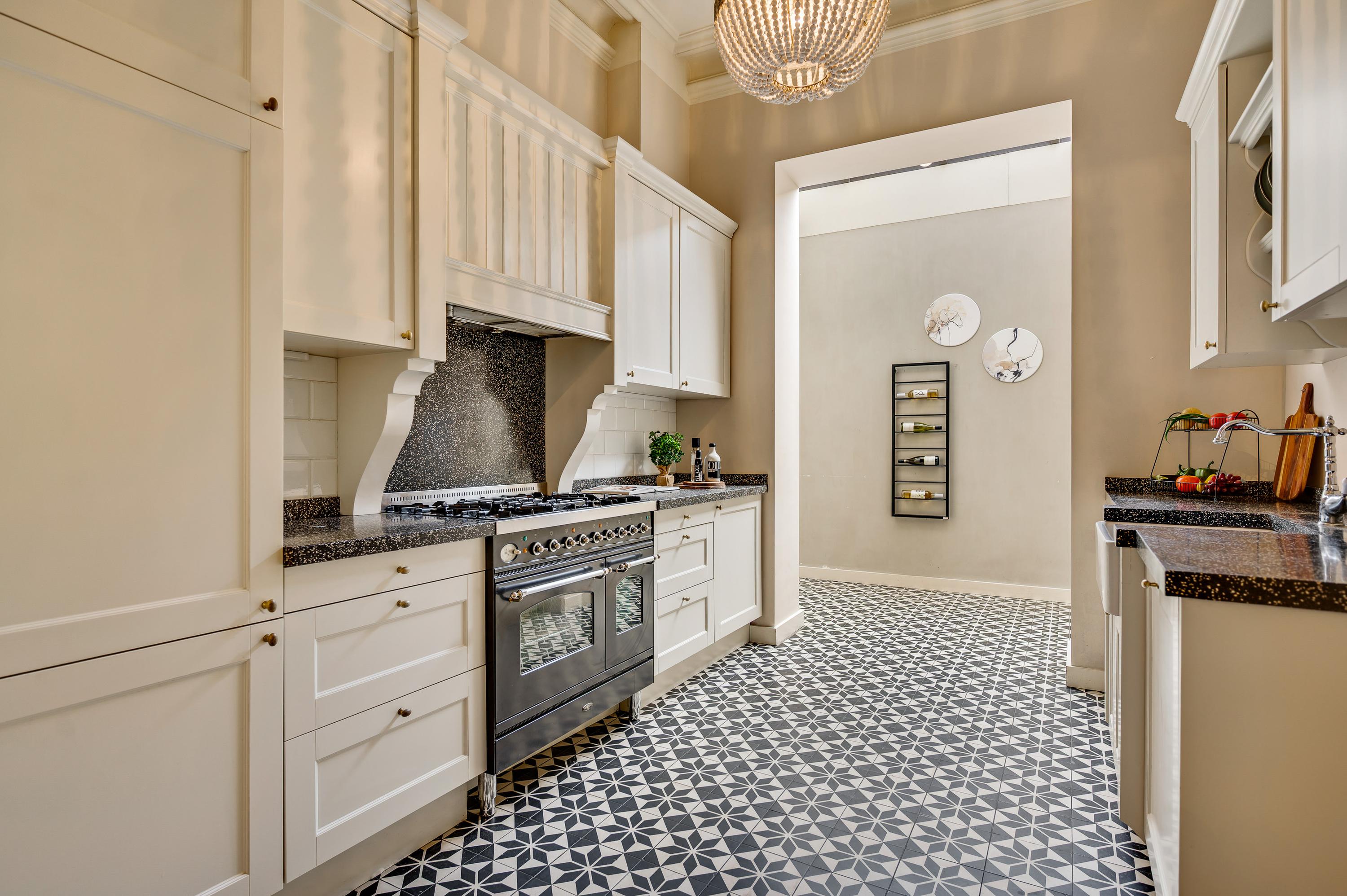 La cocina-comedor, de aproximadamente 25 m², rinde homenaje a la artesanía con una encimera de terrazo, cocina Boretti de seis fuegos y doble horno, además de electrodomésticos integrados de alta gama. La flexibilidad predomina con un estudio completamente equipado en la planta baja, y un estudio en la planta superior con área de cocina, añadido en 2019, que potencia la versatilidad para invitados o trabajo remoto.