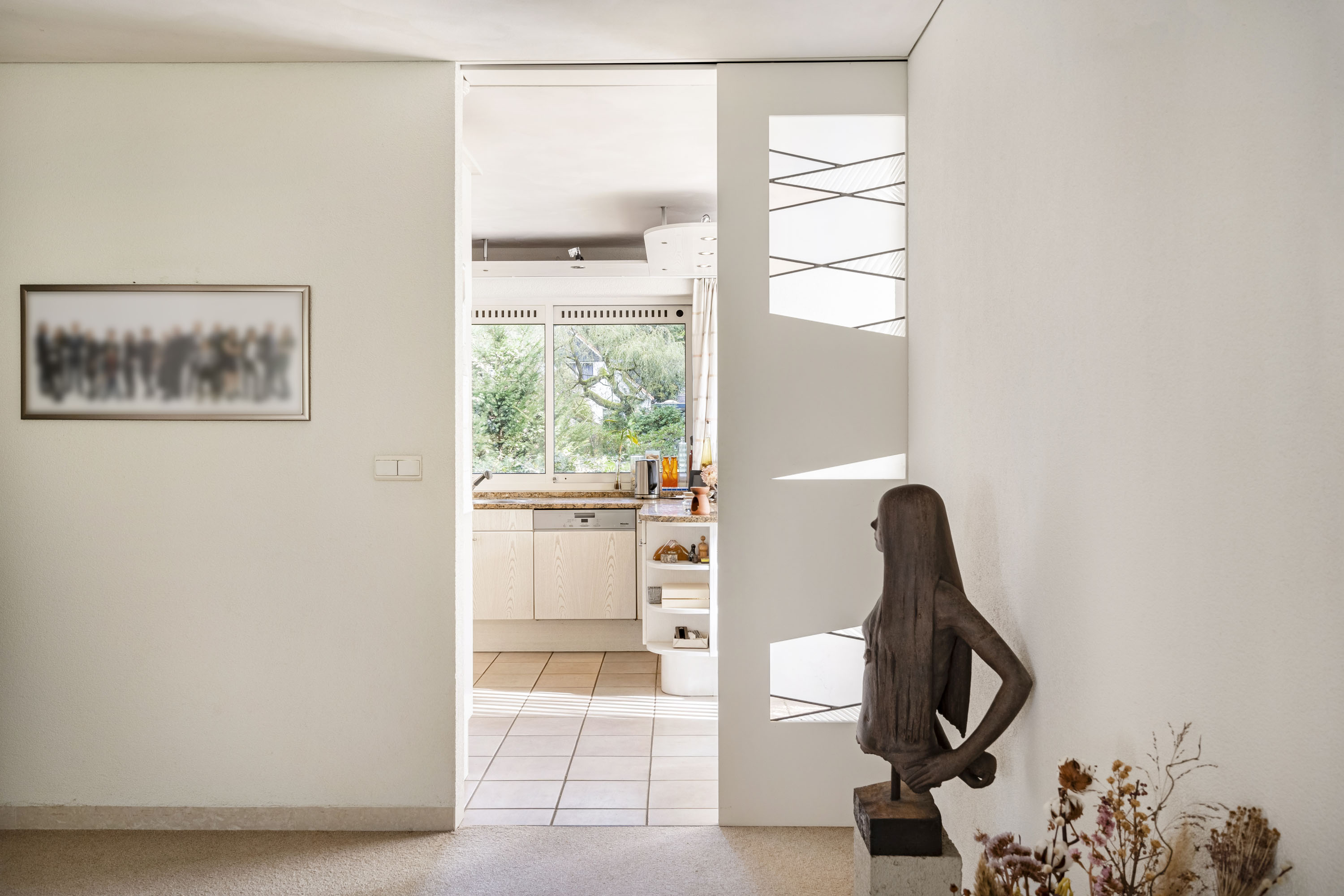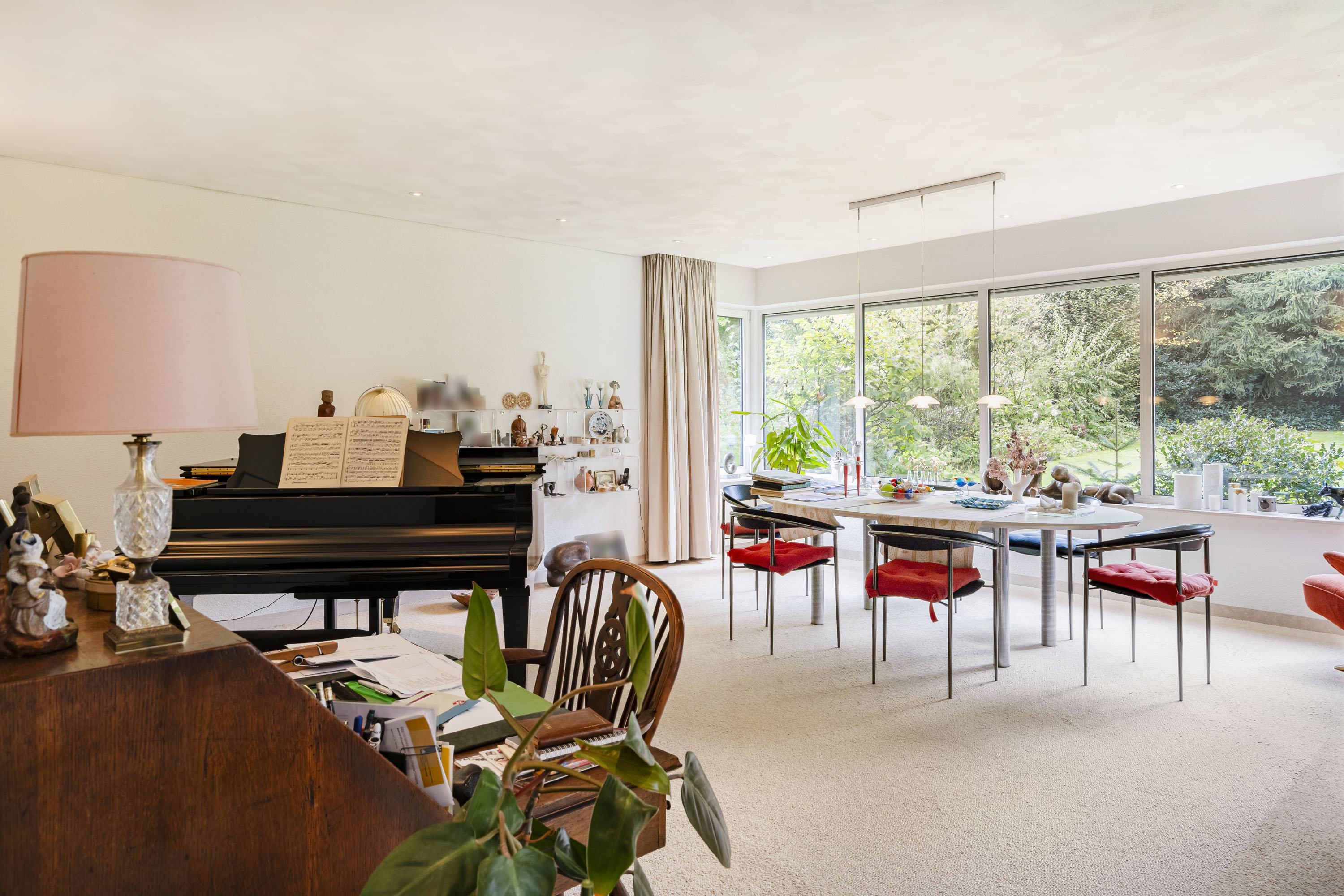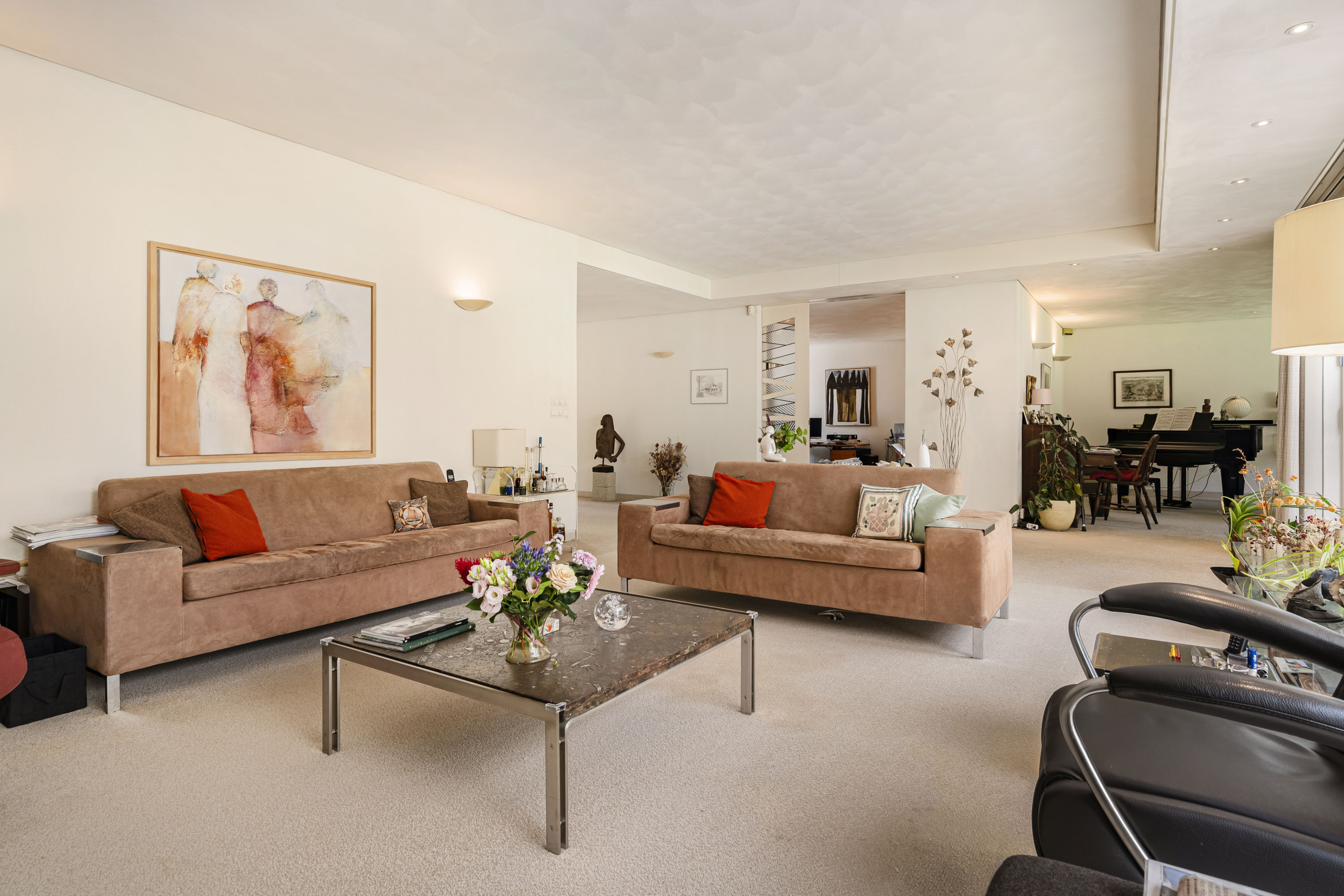La distribución inteligente incluye un gran salón, comedor orientado a las vistas del jardín, despacho y cocina abierta que se conecta con el lavadero, provisto de un discretísimo montaplatos. Elegantes puertas correderas equilibran apertura y privacidad. La piscina interior, con chorro a contracorriente y puertas correderas al jardín, representa un verdadero centro de bienestar en casa. La suite principal cuenta con aire acondicionado y acceso directo al jardín. Los dos baños disponen de bañera y ducha.