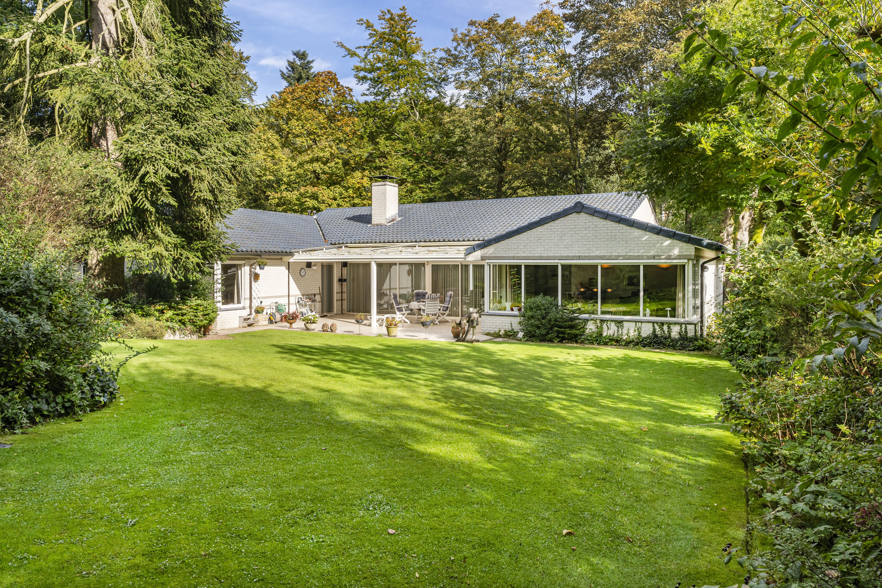 La Villa Velp con piscina cubierta se ubica junto a la reserva natural Posbank, ofreciendo 350 m² de espacio habitable y una privacidad absoluta en un jardín maduro y paisajístico de 1.911 m². Esta villa de cuatro dormitorios fusiona confort y arquitectura, aprovechando la luz natural y un diseño moderno, fluido y elegante. El amplio salón se articula en torno a fachadas acristaladas que se abren al jardín en suave pendiente, creando continuidad entre el interior y el exterior.