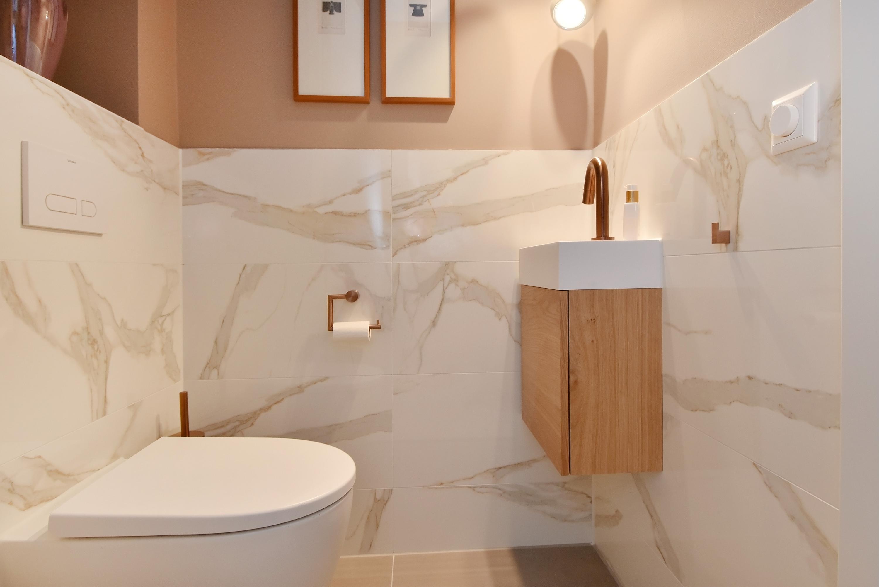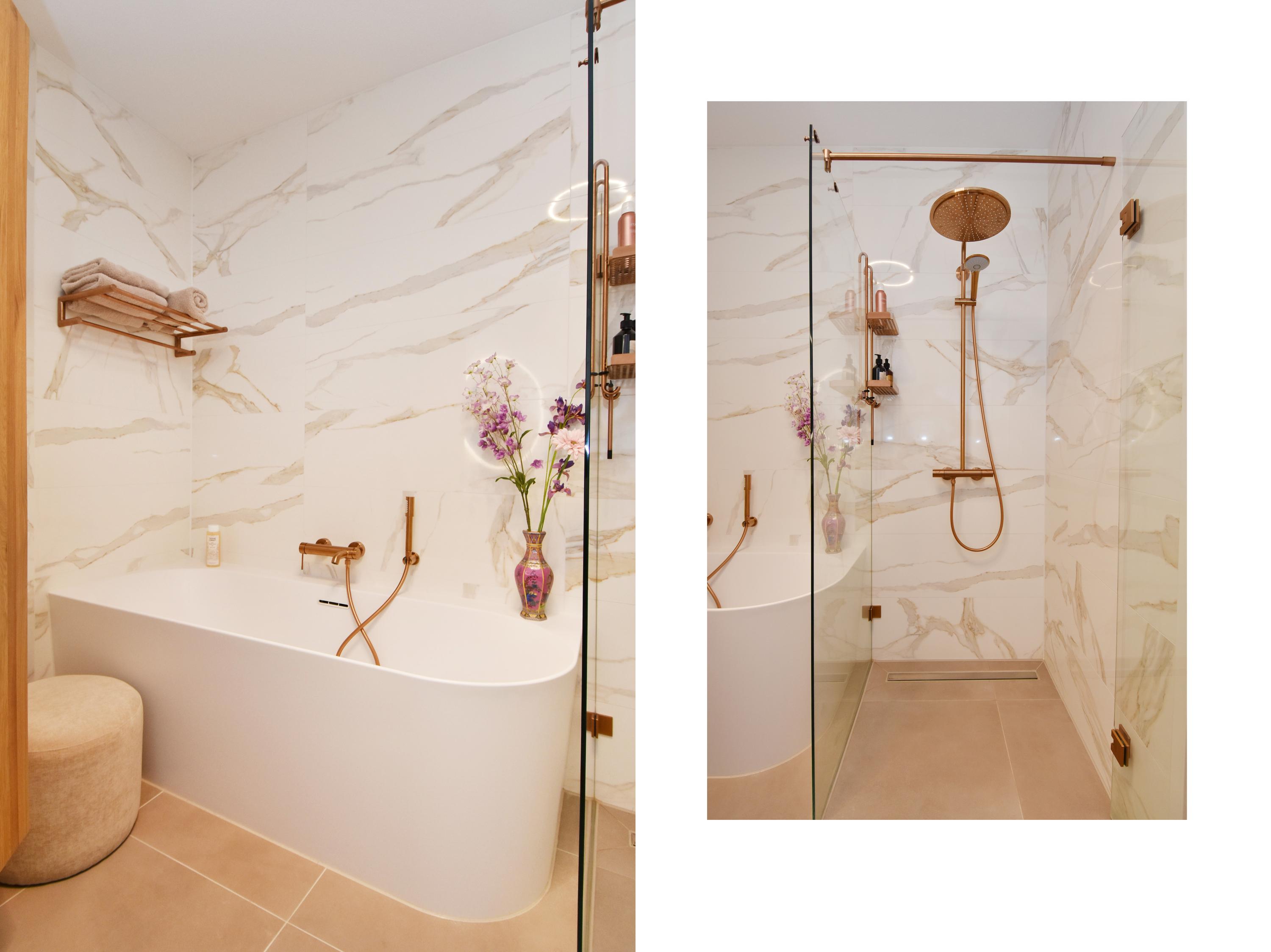 De moderne badkamer is ingericht volgens de laatste trends en voorzien van een inloopdouche, stijlvol wastafelmeubel en ligbad. Daarnaast is er een separaat toilet en een praktische berging met op maat gemaakte kast voor wasmachine en droger. Verder bevinden zich hier de WTW-unit en warmtepomp.