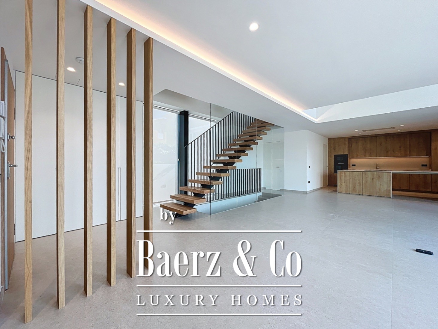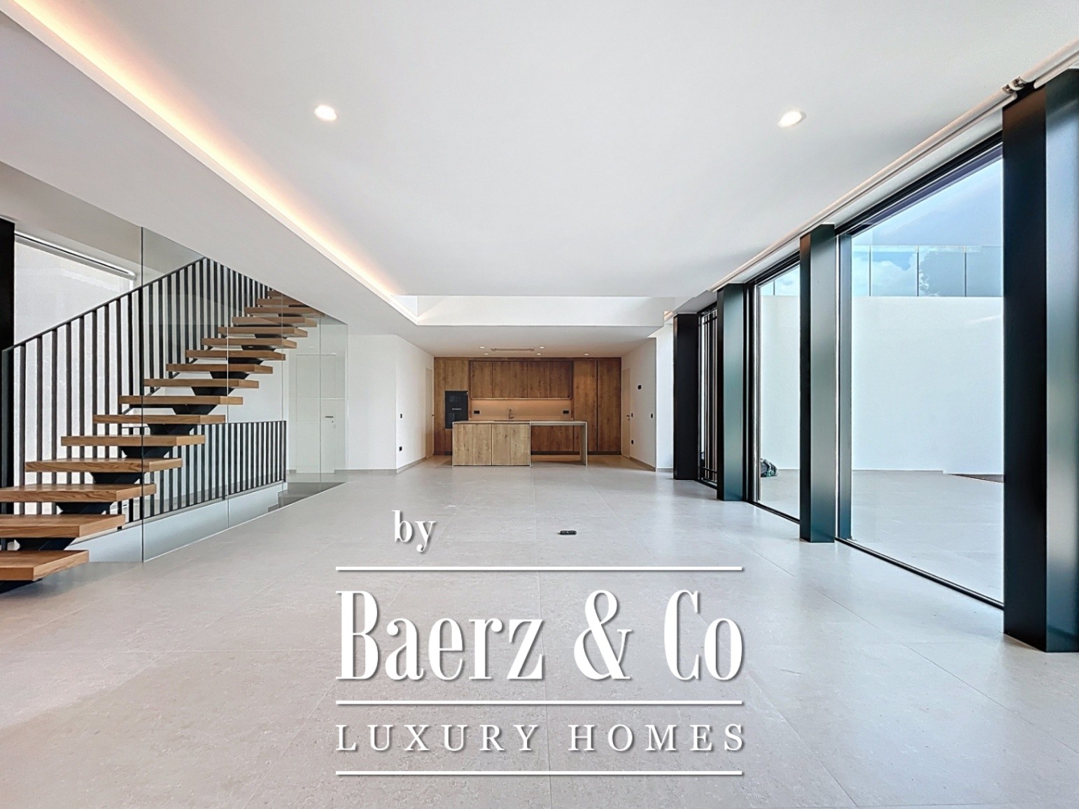 Op de begane grond integreert een ruime open ruimte de woonkamer, eetkamer en keuken, met dubbele hoogte plafonds en grote ramen die het interieur harmonieus met het exterieur verbinden. Het beschikt ook over een privé garage met directe toegang tot de woning.