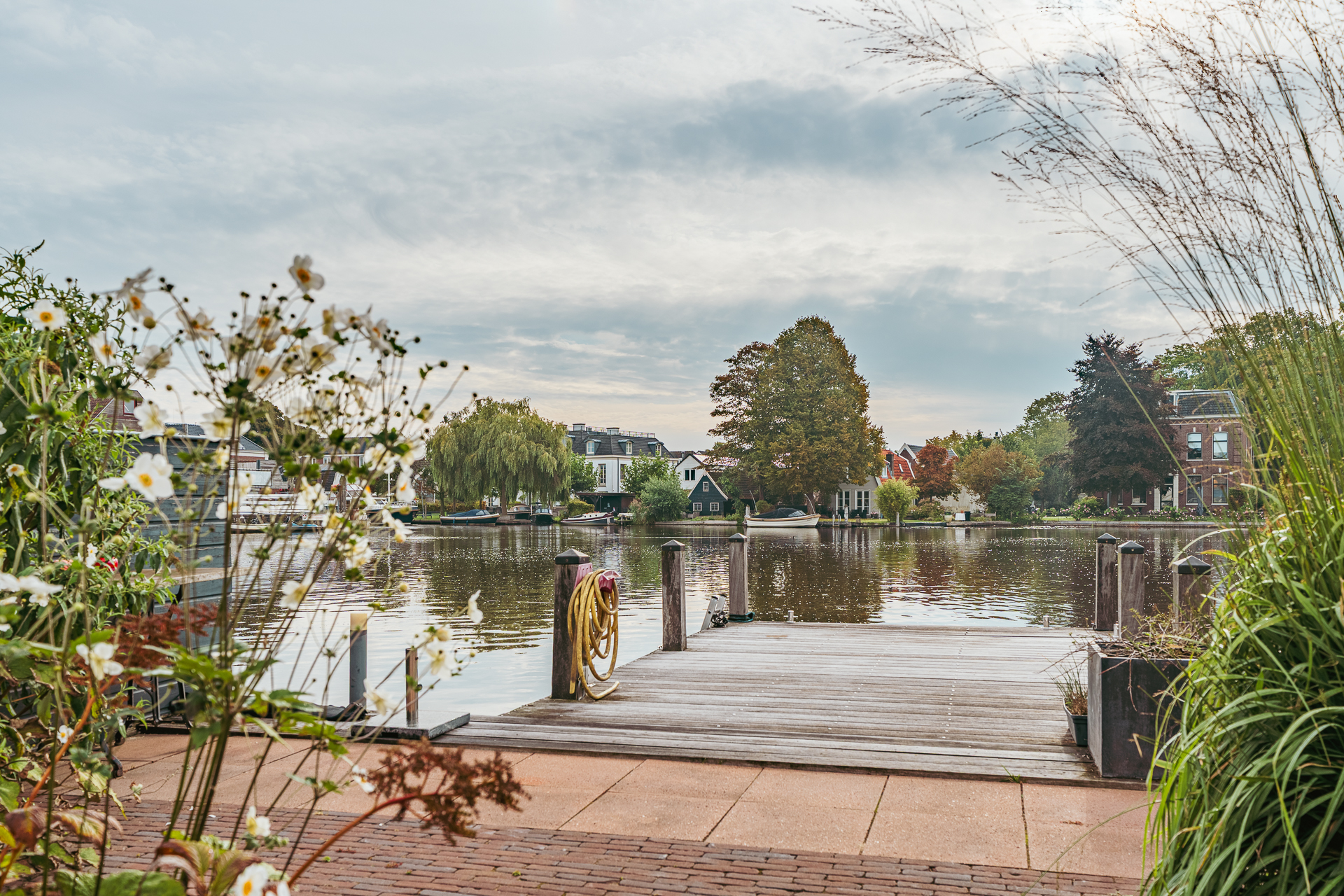 De achtertuin is fraai aangelegd met veel groen en beschikt over een steiger aan de Amstel. Hier kunt u in alle rust genieten van de unieke ligging en het vrije uitzicht over het water. De tuin is tevens bereikbaar via een privé zij-ingang naast de woning.