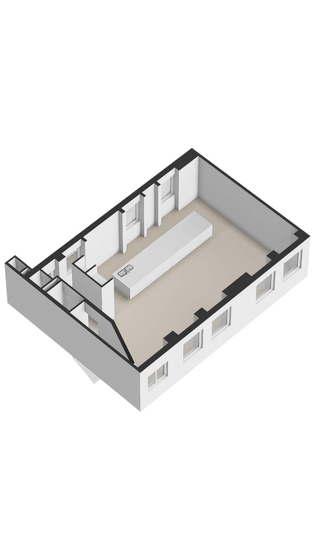 Via de trap bereikt u direct de royale, open woonkamer op de derde verdieping. De ruimte is extra breed en beschikt over maar liefst vier ramen – het dubbele van wat gebruikelijk is in Amsterdam – waardoor er een overvloed aan daglicht binnenvalt. De moderne open keuken is uitgerust met een imposant kookeiland met eetgedeelte en hoogwaardige inbouwapparatuur van onder andere Boretti, waaronder een oven, koel-vriescombinatie, 8-pits gasfornuis met afzuigkap, vaatwasser en wijnklimaatkast. Bovendien is er volop bergruimte aanwezig. Vanuit de keuken heeft u toegang tot het brede, gezellige balkon (circa 4 m²), gelegen op het oosten. Daarnaast bevindt zich op deze verdieping een separaat toilet met fonteintje en een handige berging. Een elegante trap met deels transparante brick-wall leidt u naar de vierde verdieping.