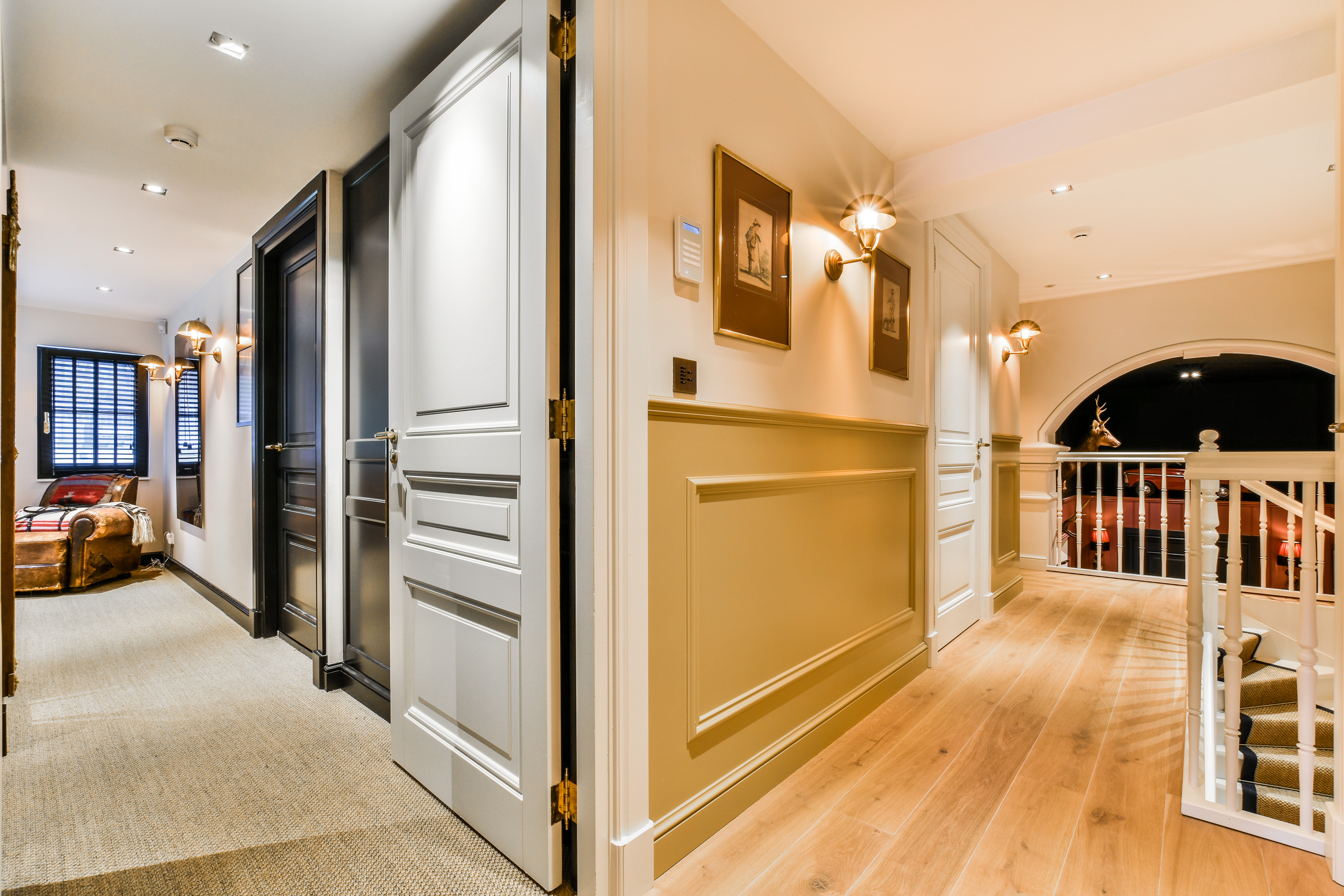 Op deze verdieping valt het gelijk op dat de stijl van beneden is doorgetrokken, met oog voor detail en afwerking. In totaal zijn er drie ruime slaapkamers, waarvan één de master bedroom en twee badkamers, o.a. voorzien van een ligbad en een rainshower voor twee personen. De master bedroom heeft een walk-in-closet en inbouw geluidsspeakers.
