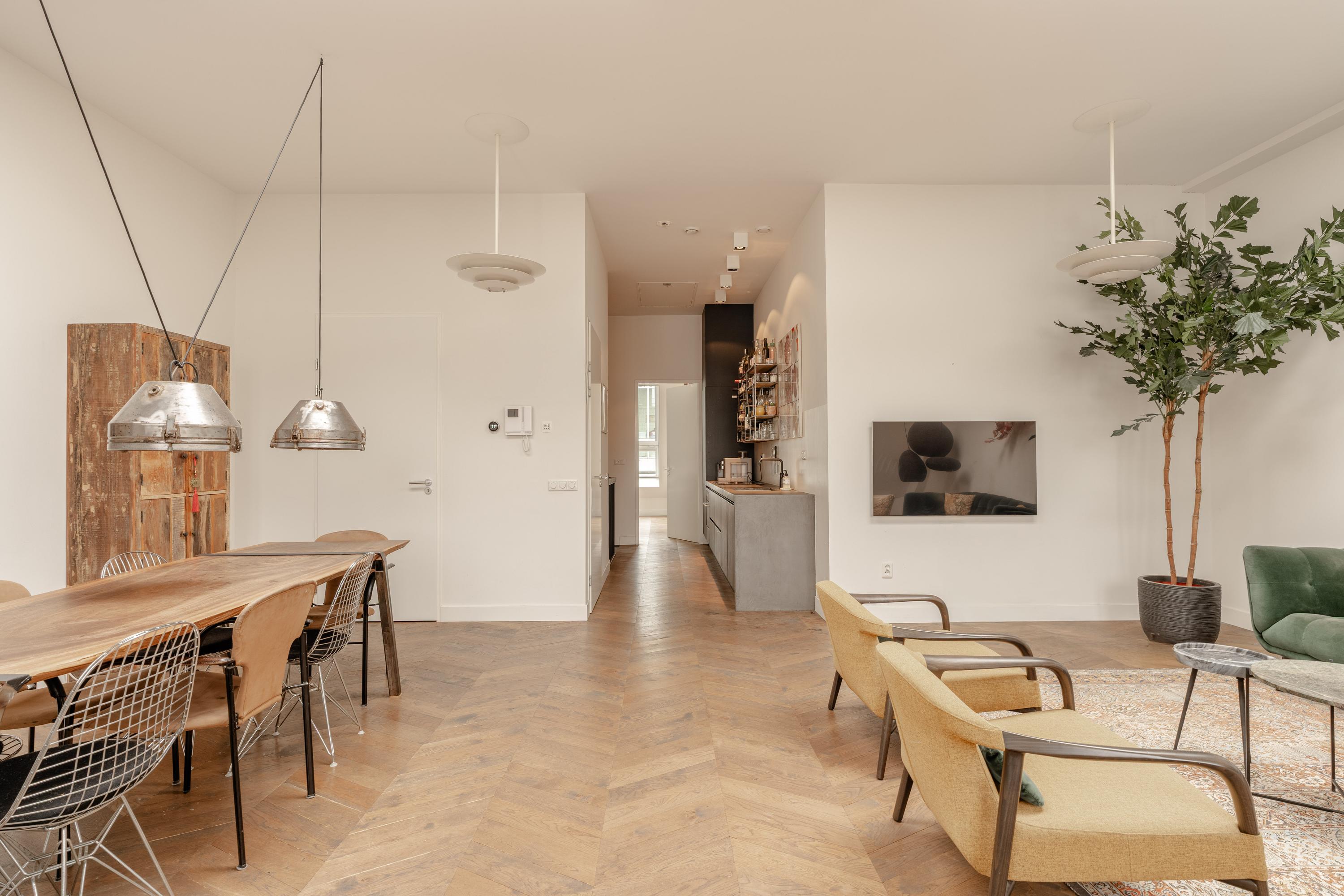 In het hart van de geliefde Jordaan bevindt zich dit lichte dubbel bovenhuis van circa 108 m², gelegen in het moderne nieuwbouwcomplex Elandshof uit 2017. De woning is verdeeld over twee woonlagen en beschikt onder meer over twee slaapkamers, twee badkamers, een ruime woonverdieping met open keuken en een dakterras met uitzicht over de daken van de Jordaan. Dankzij de hoge plafonds, dakramen en grote raampartijen geniet de woning van een bijzonder prettige lichtinval en een ruimtelijk karakter.