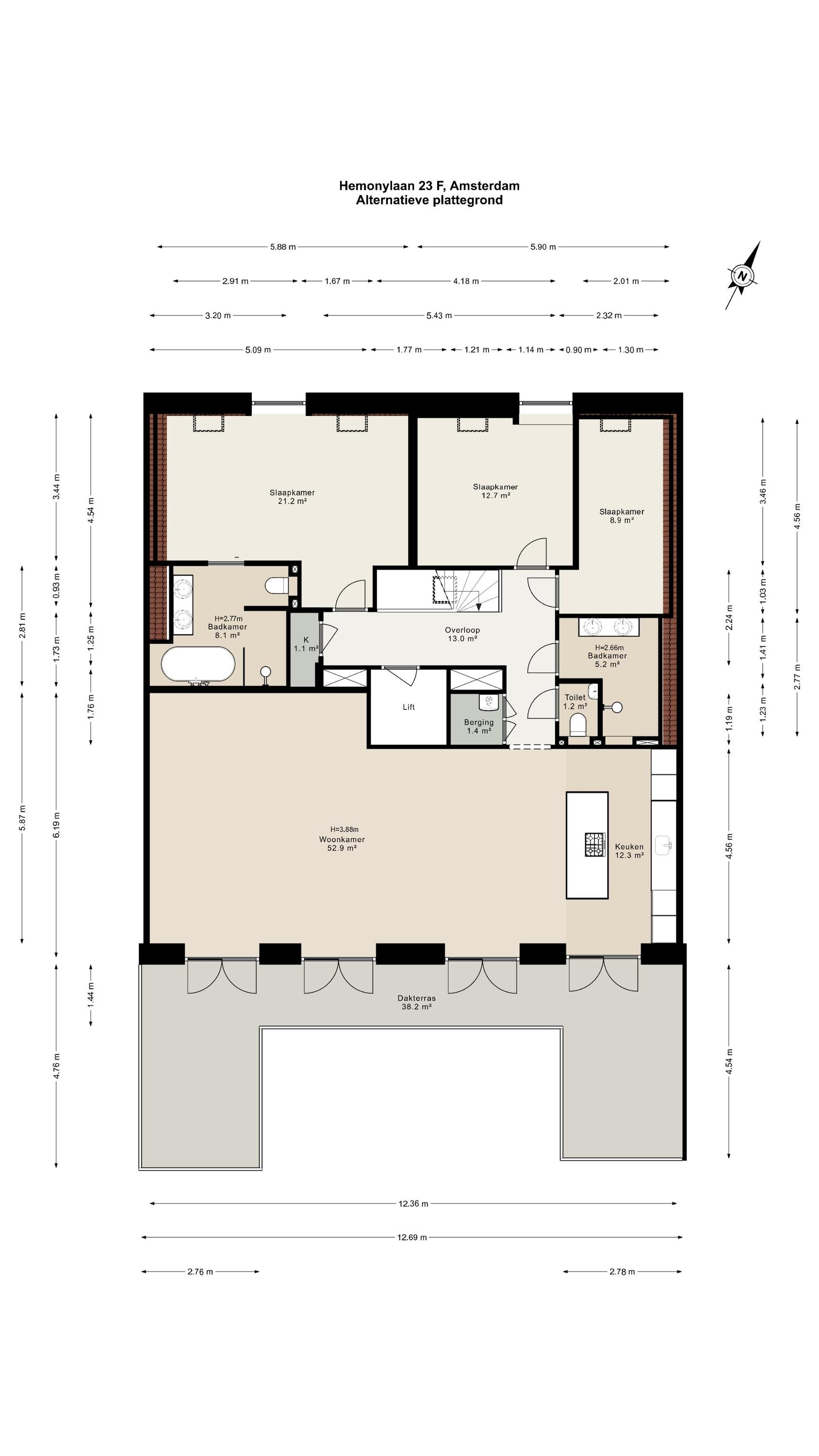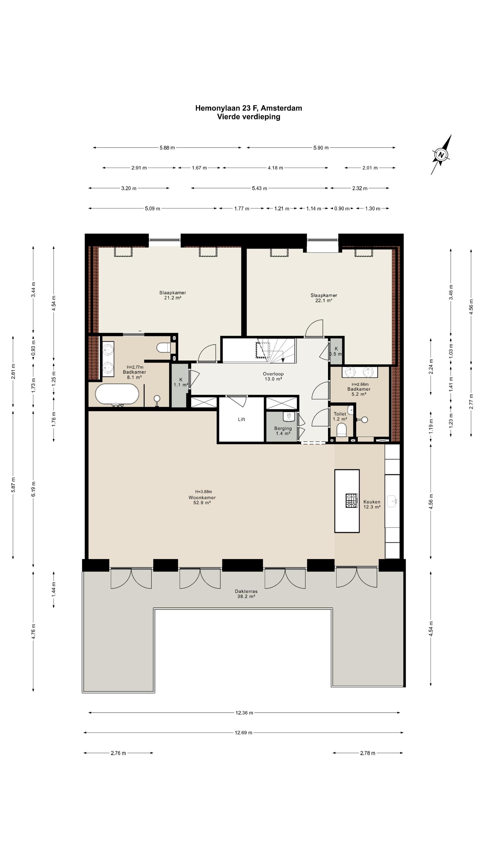 - Dakterras op het zuiden van ca. 38 m²;