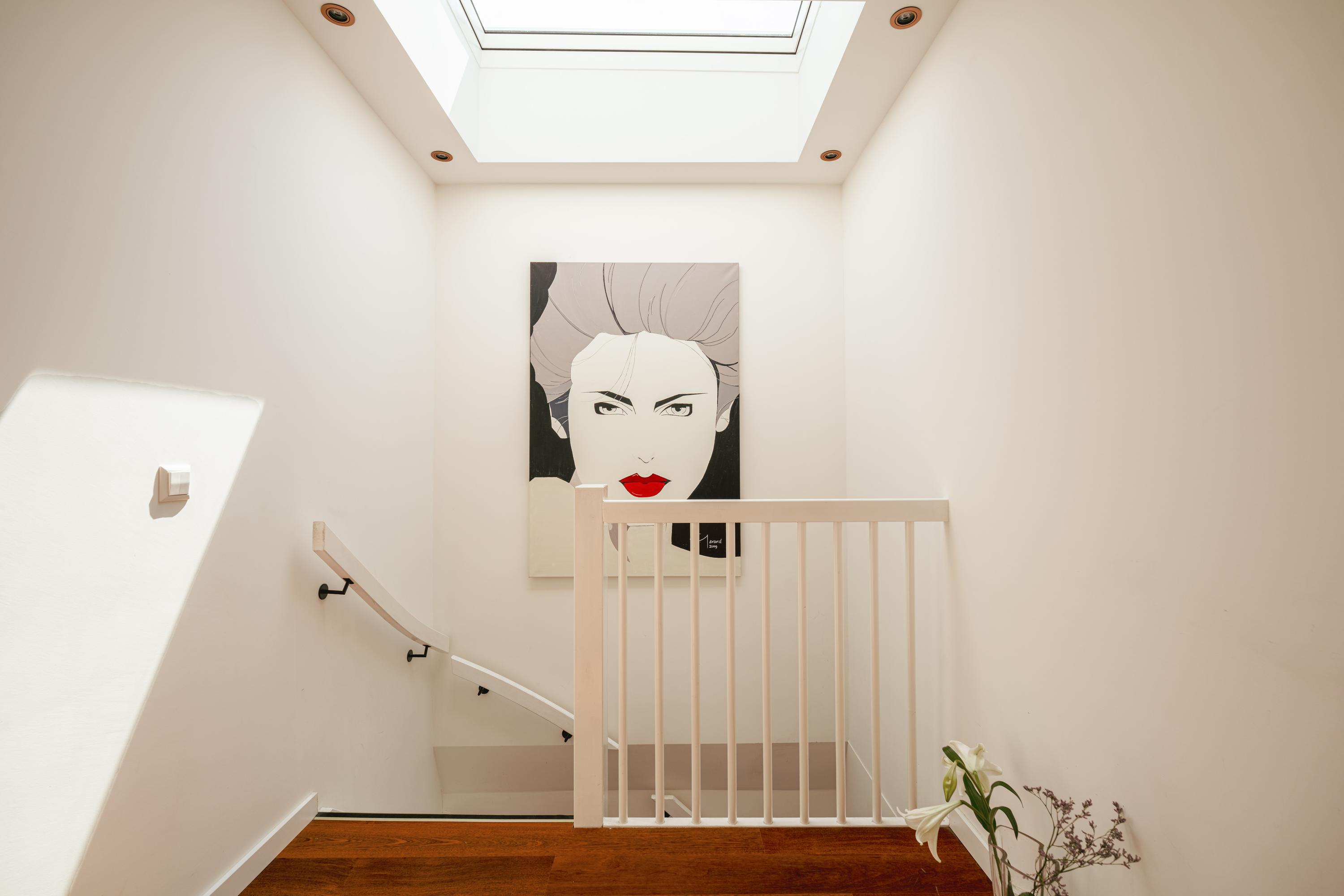 De overloop biedt toegang tot alle vertrekken op deze verdieping. Er zijn vier ruime slaapkamers, waarvan twee aan de voorzijde en twee aan de achterzijde van de woning. De centraal gelegen badkamer is voorzien van een dubbele wastafel met meubel, een inloopdouche, toilet en aansluitingen voor wasmachine en droger.