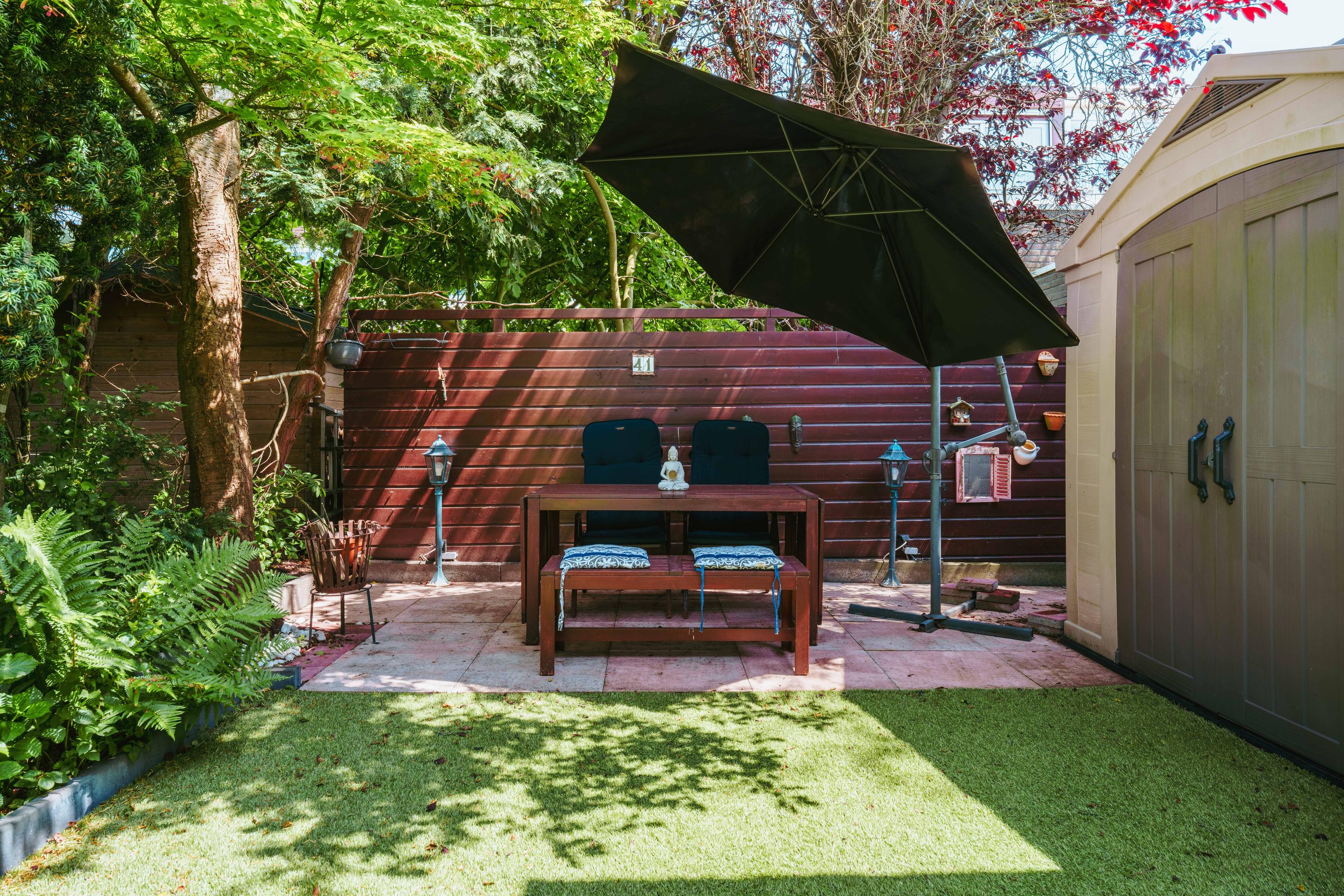 Via de fraai aangelegde voortuin bereikt u de entree van de woning. U komt binnen in het tochtportaal met garderoberuimte, dat leidt naar de centrale hal. Hier vindt u praktische bergruimte en een separaat toilet. Dubbele deuren geven toegang tot de royale en lichte living. Aan de voorzijde bevindt zich het zitgedeelte, sfeervol ingericht met een gashaard. Aan de achterzijde vindt u de eetkamer, die in directe verbinding staat met de halfopen keuken. De keuken is compleet uitgerust met een koelkast, oven, magnetron, gasfornuis, vaatwasser en spoelbak. Een gezellig bargedeelte en een knusse zithoek maken dit tot een fijne plek om te koken en samen te komen. Aangrenzend aan de keuken bevindt zich de bijkeuken, ideaal als extra bergruimte of wasruimte. Vanuit de keuken heeft u toegang tot de heerlijke en ruime achtertuin (ca. 51m²), gelegen op het oosten en voorzien van een berging.