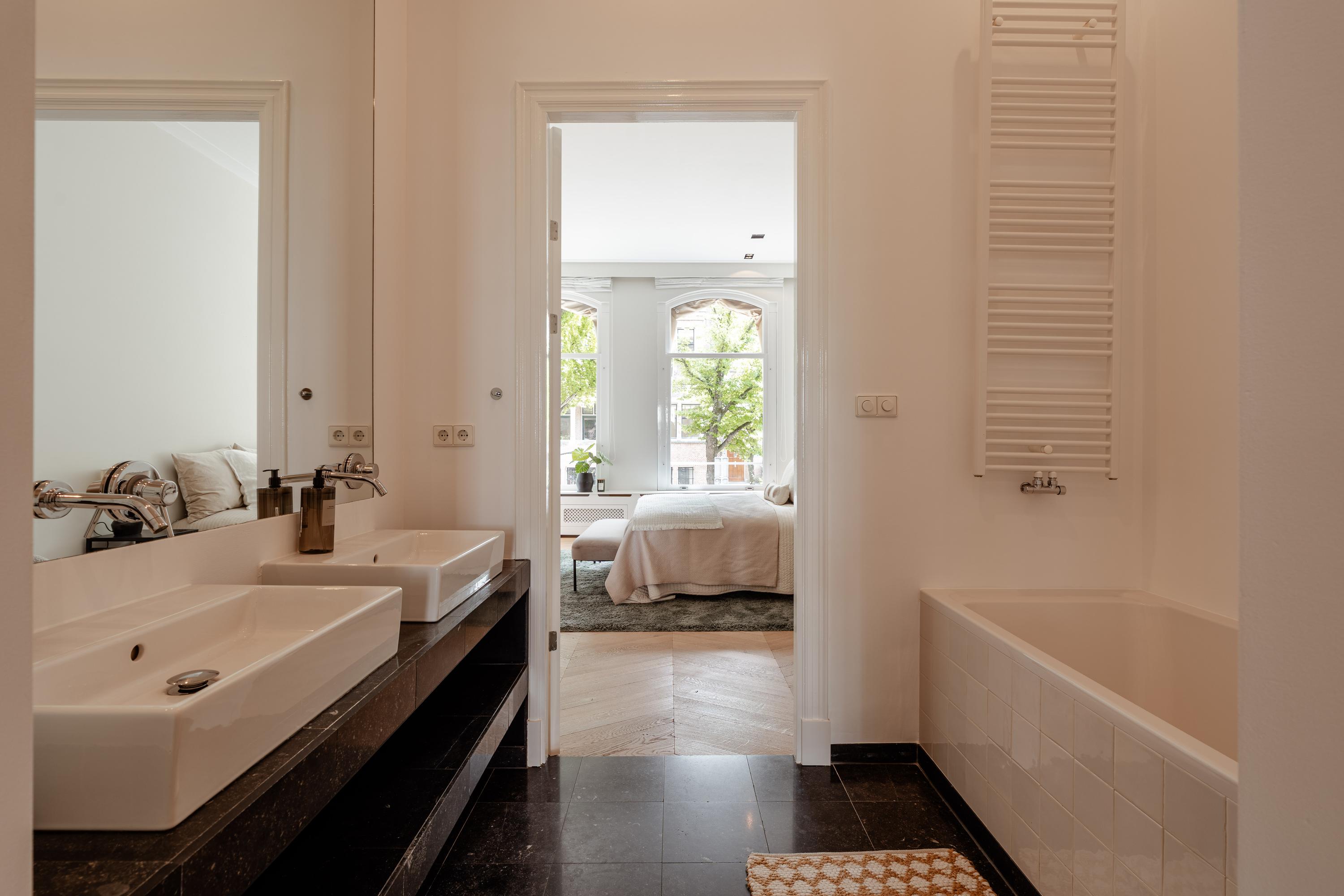 De bel-etage beschikt over drie comfortabele slaapkamers en twee stijlvolle badkamers, beide voorzien van vloerverwarming. De master bedroom is uitgerust met een op maat gemaakte kastenwand en een luxe en-suite badkamer met ligbad, dubbele wastafel met meubel, inloopdouche en toilet. De tweede badkamer is eveneens modern uitgevoerd en beschikt over een wastafel met meubel en een inloopdouche. Tevens bevindt zich op deze verdieping nog een apart toilet. De aanwezigheid van een tweede entree op dit niveau benadrukt het praktische én exclusieve karakter van de woning.