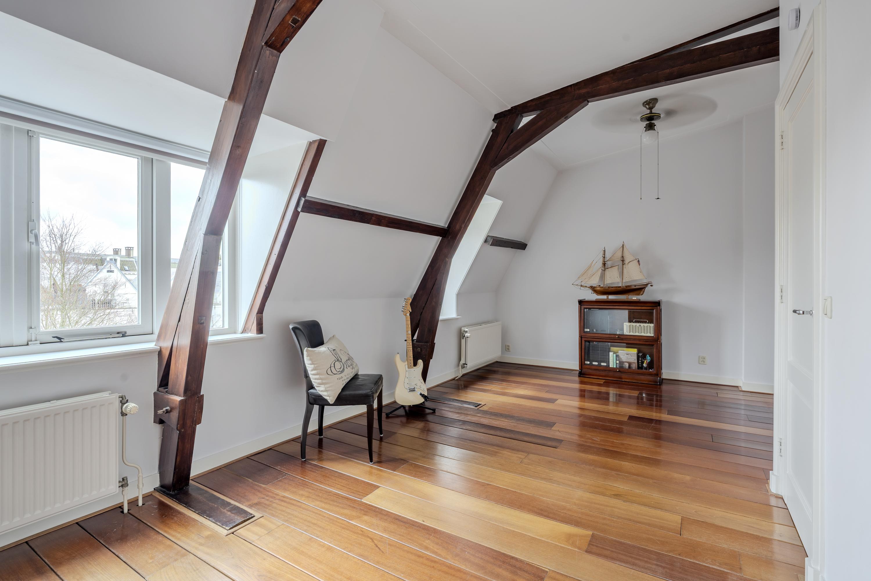 Op deze verdieping bevinden zich de twee goed bemeten slaapkamers, elk verdeeld over de gehele breedte van de woning. De ene slaapkamer bevindt zich aan de voorzijde en biedt uitzicht over het Vondelpark, de andere slaapkamer bevindt zich aan de achterzijde en biedt uitzicht over de diepe binnentuin. In beide slaapkamers komt de originele houten constructie van het pand prachtig tot zijn recht en middels de sfeervolle, grote raampartijen vangen beide slaapkamers bijzonder veel natuurlijk licht. Centraal gelegen en bereikbaar vanuit de overloop treft u de fijne badkamer, voorzien van een ligbad, inloopdouche, toilet en een dubbele wastafel met meubel. Tot slot heeft u nog een handige opbergkast tot uw beschikking waar ook de aansluitingen voor wasmachine en droger te vinden zijn.