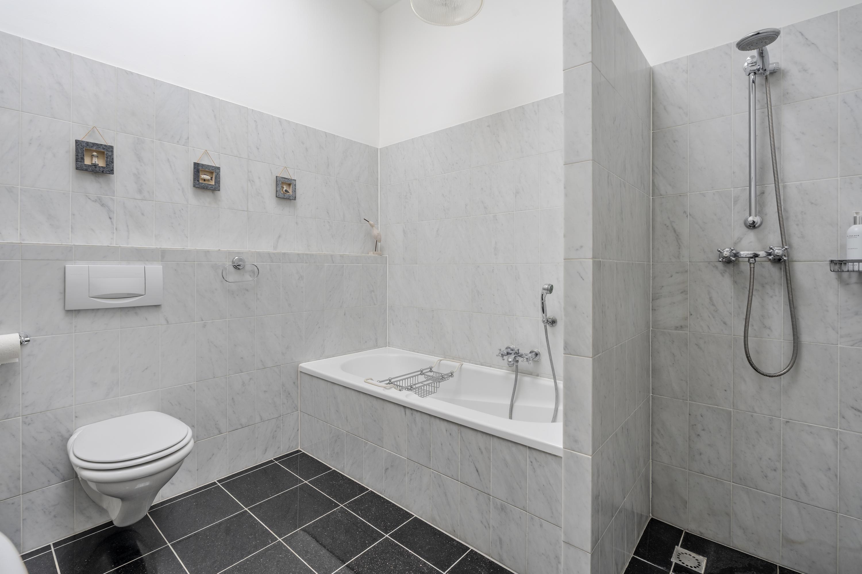 At the rear of this comfortable apartment, the dining room with an open kitchen is located, equipped with a kitchen island, a four-burner electrical cooktop with an extractor hood, a dishwasher, a fridge-freezer combination, and a wide oven. The dining room also provides access to a delightful south-east facing balcony of approximately 4 m², complete with sunshading. You can even see the Rijksmuseum!