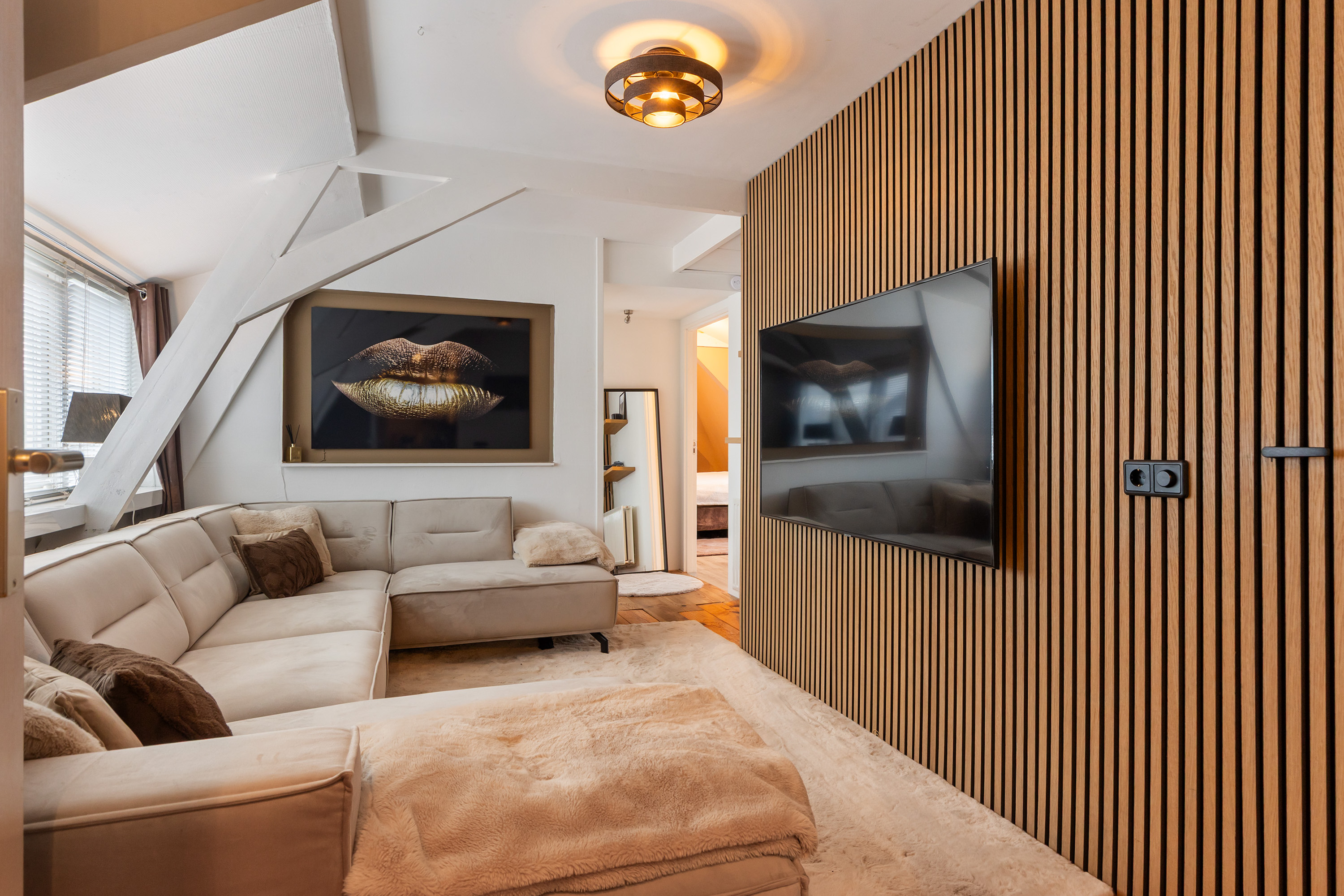 Op deze verdieping zijn de originele balken, schuine wanden, brede dakkapellen en houten vloeren aanwezig, wat zorgt voor een warme en karaktervolle sfeer.