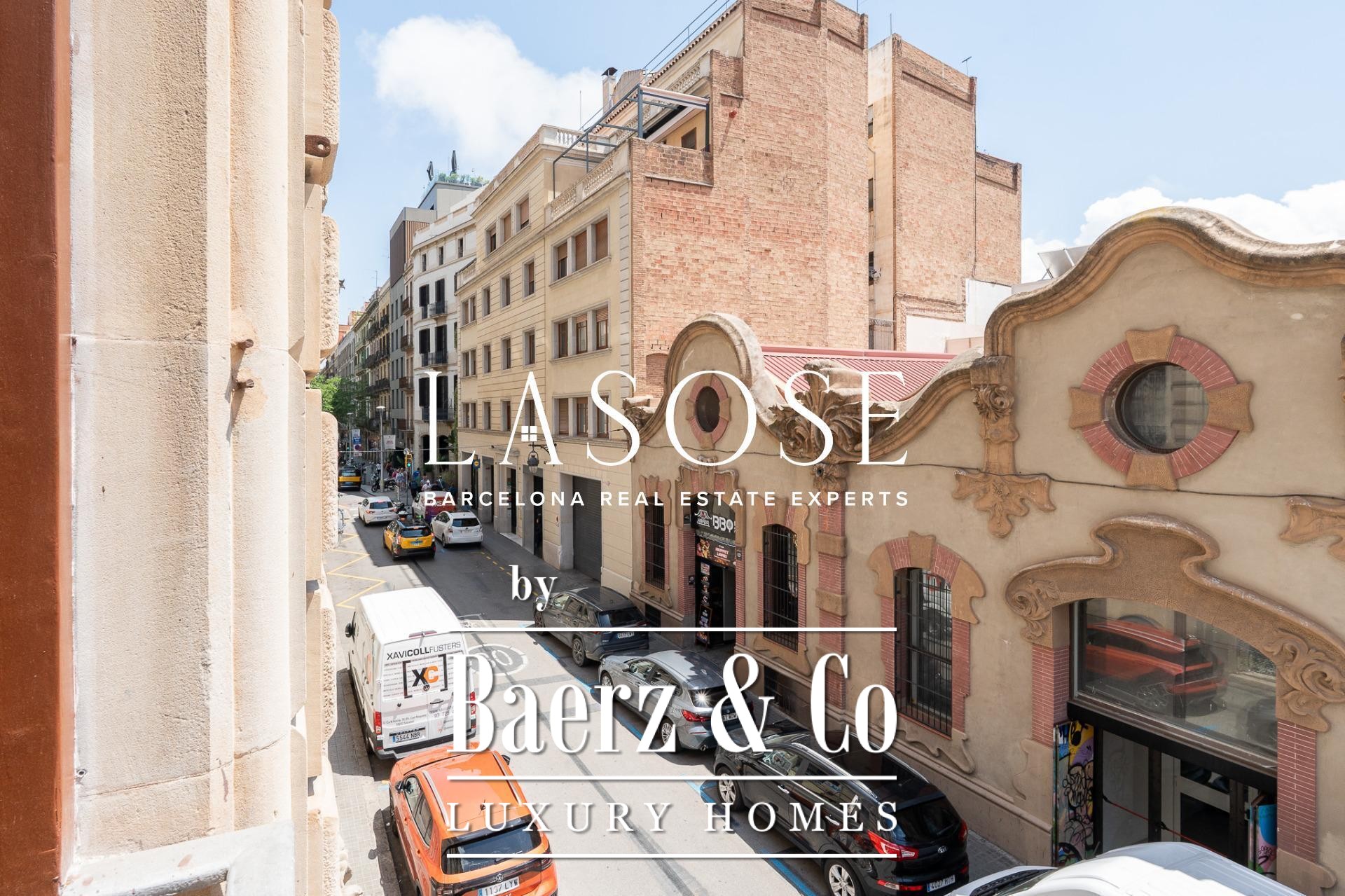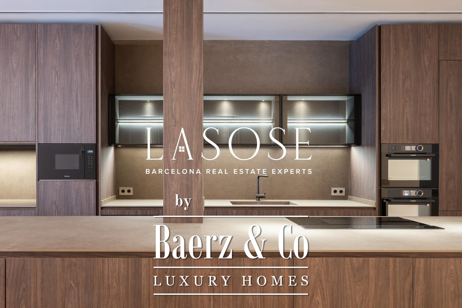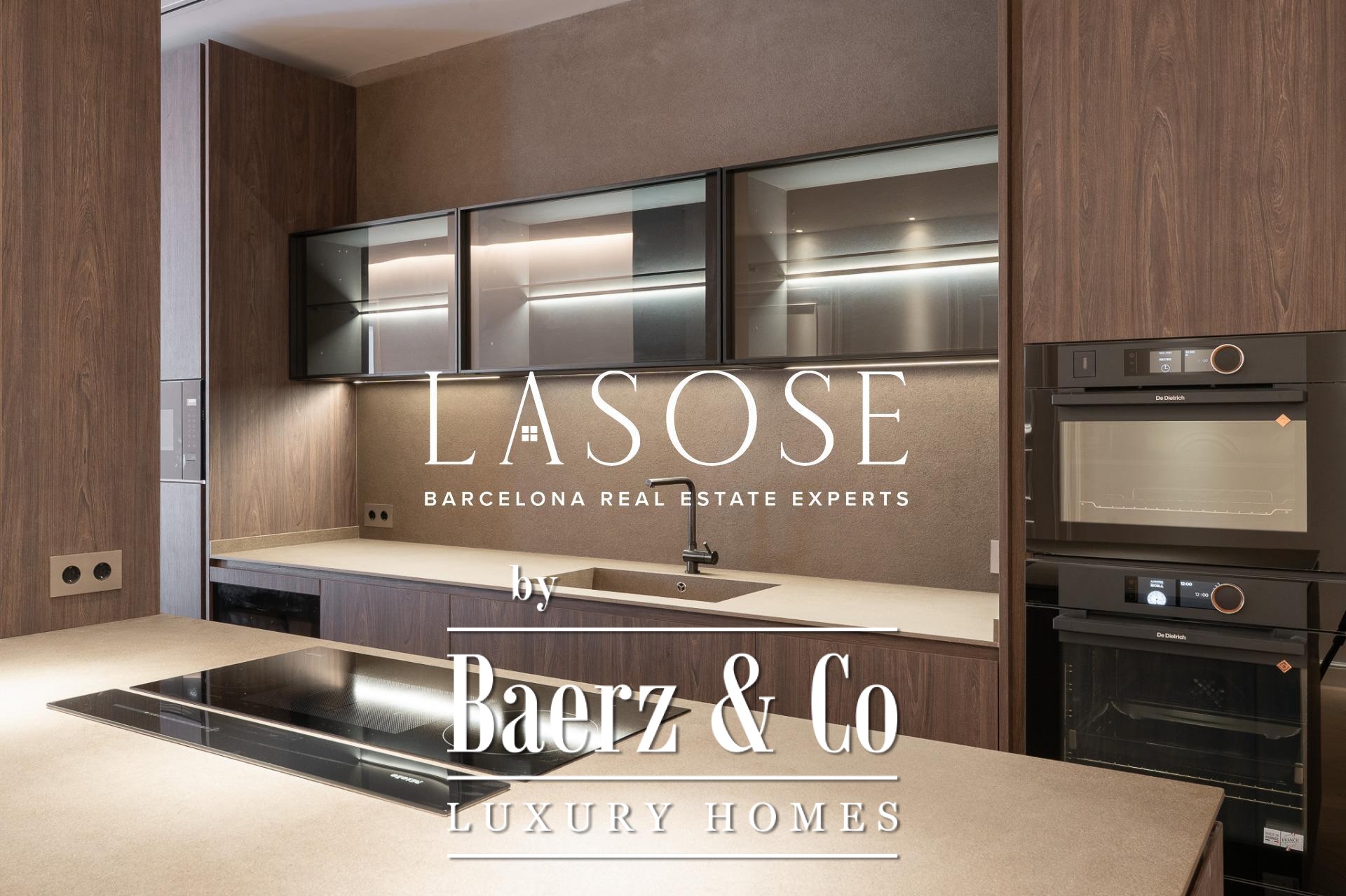 LASOSE presents this magnificent 347 m² property, completely renovated, which combines the charm of a classic estate with the comfort and sophistication of contemporary design. Located in an elegant regal estate dating from 1885, with elevator and in excellent condition, this property offers a unique experience in one of the most vibrant areas of the city.. . Located on the interfloor and with ceilings of 3.2 meters high, the apartment enjoys an exceptional luminosity thanks to its views to two streets and its southeast orientation. From the entrance, it surprises with a spectacular welcome area adorned with modernist details that make the difference.. . The day area consists of a large living-dining room with open kitchen, equipped with a central island space for six diners, ideal for meetings and dinners. This space is complemented by an elegant office, a guest toilet and a practical laundry area with washing machine, dryer and storage cabinets.. . The jewel of the home is its impressive 60 m² master suite, which