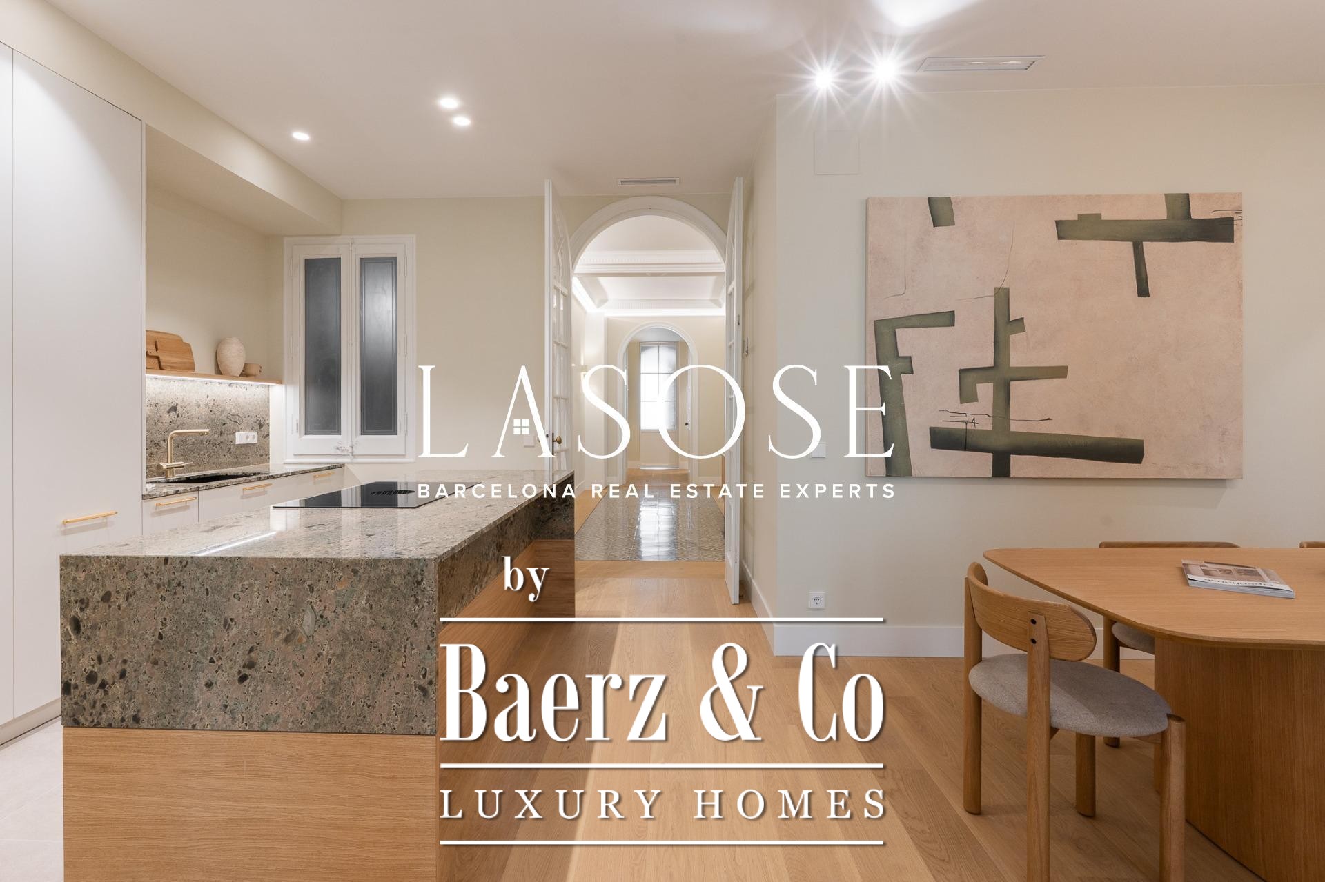 Appartement Barcelona Eixample biedt moeiteloos modern comfort binnen de tijdloze allure van historische architectuur. Op de tweede verdieping van een stijlvol monumentaal pand uit 1900 vormt deze woning van 185 m² een samensmelting van Barcelona’s architecturale erfgoed en eigentijds design. De ruimtes zijn royaal en licht, met een doorzonindeling waardoor elke leefruimte de hele dag door profiteert van natuurlijk daglicht.