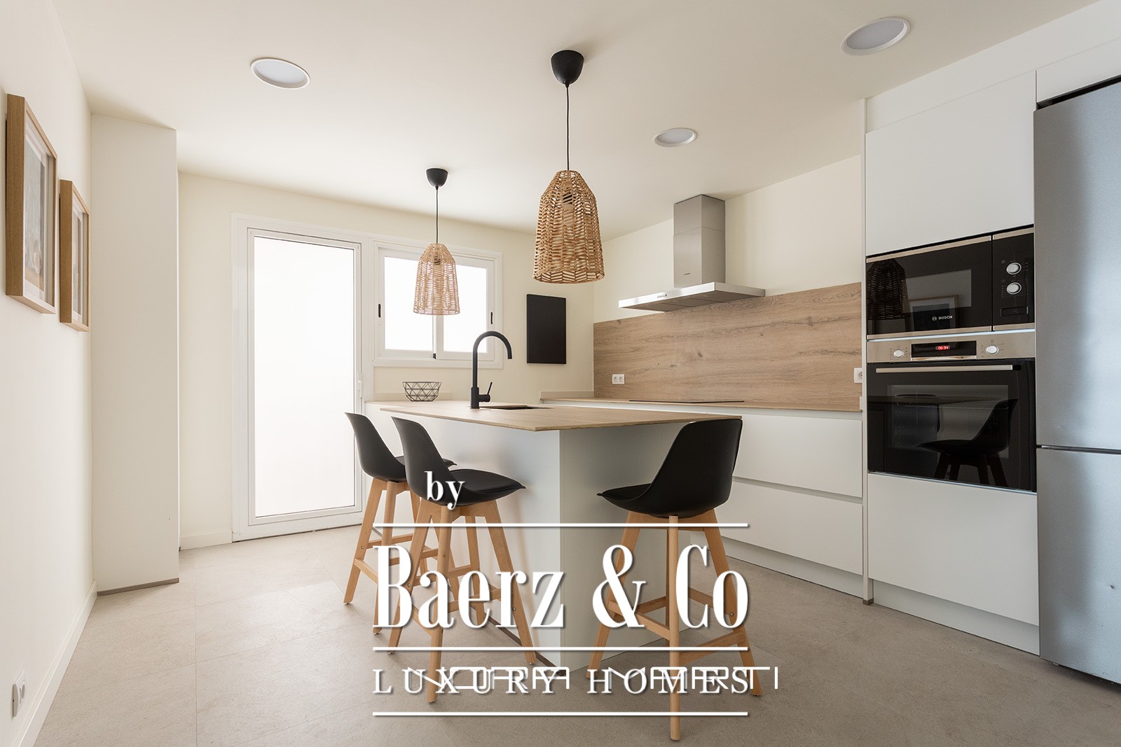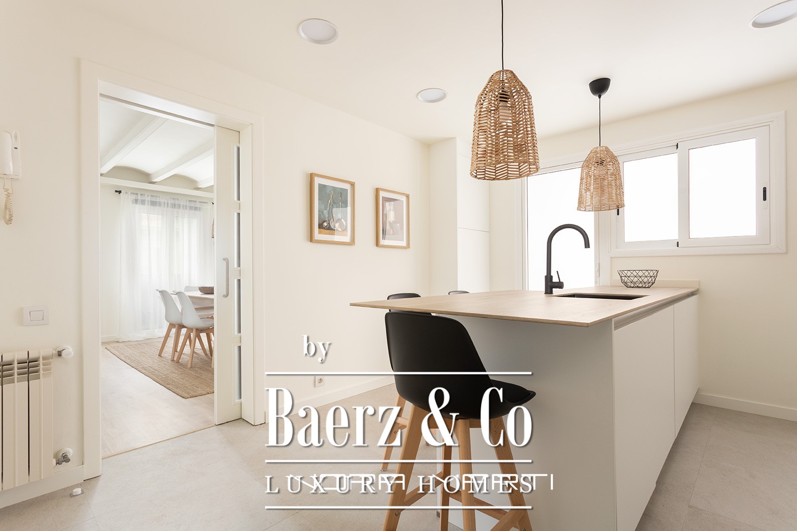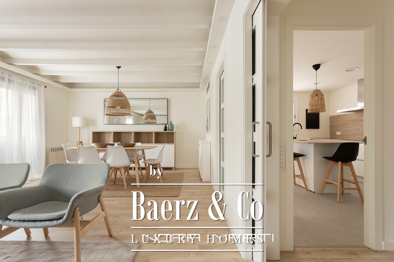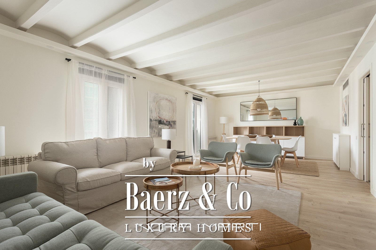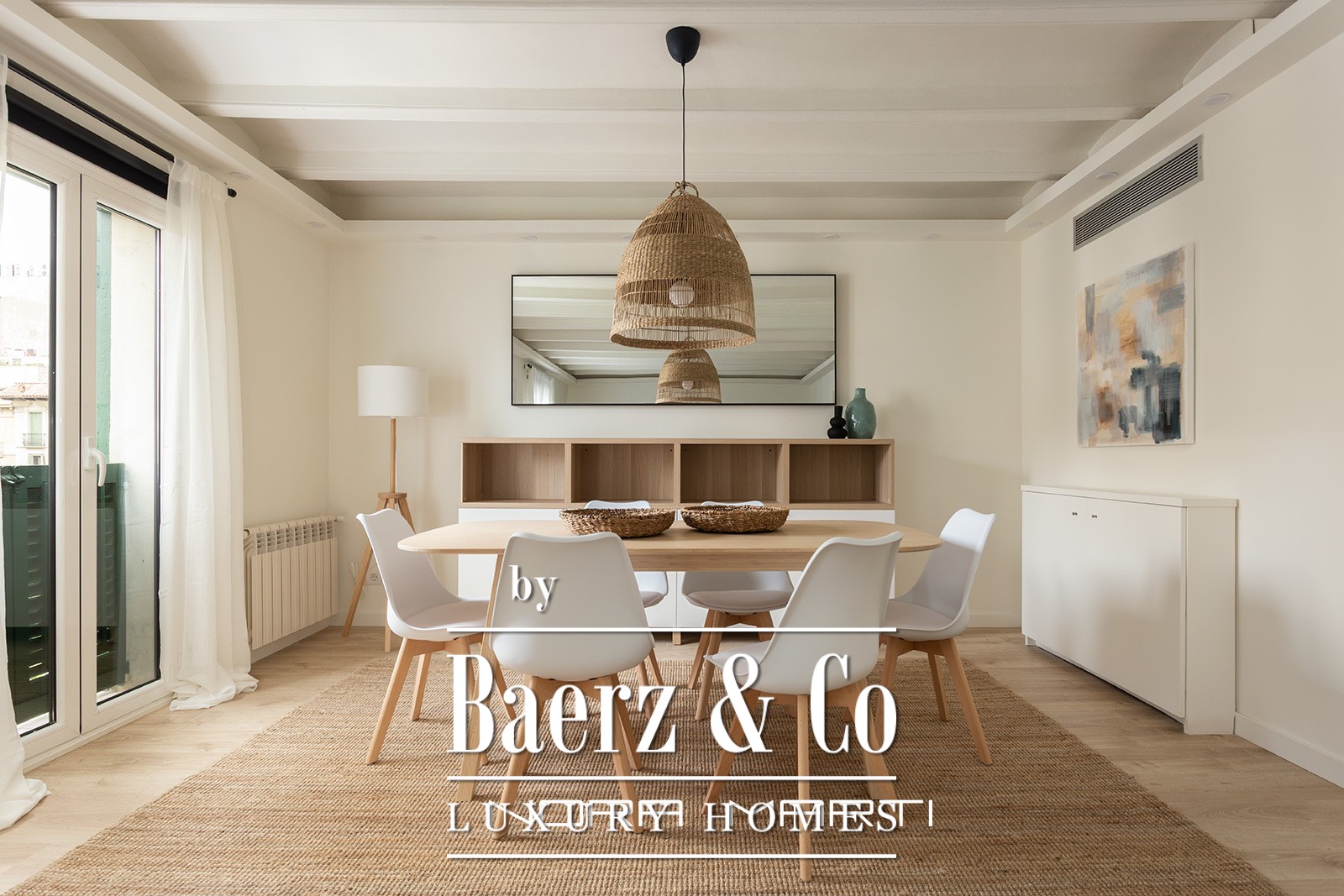 In the most charming heart of Barcelona, ​​where the light filters through the treetops and the murmur of the city becomes melody, this luminous gem rises right on the Rambla de Catalunya, right at the intersection of the now serene and pedestrianized Consejo de Ciento street. Located on the fifth floor, this 143 m² apartment has been completely renovated with care and exquisite taste, where every corner tells its own story of harmony and beauty. Offering a perfect balance between contemporary elegance and comfort, the home's uniquely Catalan vaulted ceilings are a highlight. We enter the home through a spacious hallway that separates the living and sleeping areas. The living area features a spacious living-dining room, a generous, welcoming, and bright space where the playful breeze enters from two balconies overlooking the tree-lined Rambla, bringing with it the scent of Barcelona's midday and the murmur of slow-paced urban life. The kitchen, also spacious and fully equipped, opens like a workshop of flavors, ready to inspire mornings of aromatic coffee and evenings of conversation and wine. It also includes a large utility area. The home has three double bedrooms, each a haven of tranquility, bathed in natural light and decorated with designer furniture. One of them, converted into a suite, opens like a serene refuge with large windows through which the morning sun filters in. From there, the view rests on a quiet and charming patio, typical of the Eixample district. The room is completed with a dressing room and a bathroom that invites