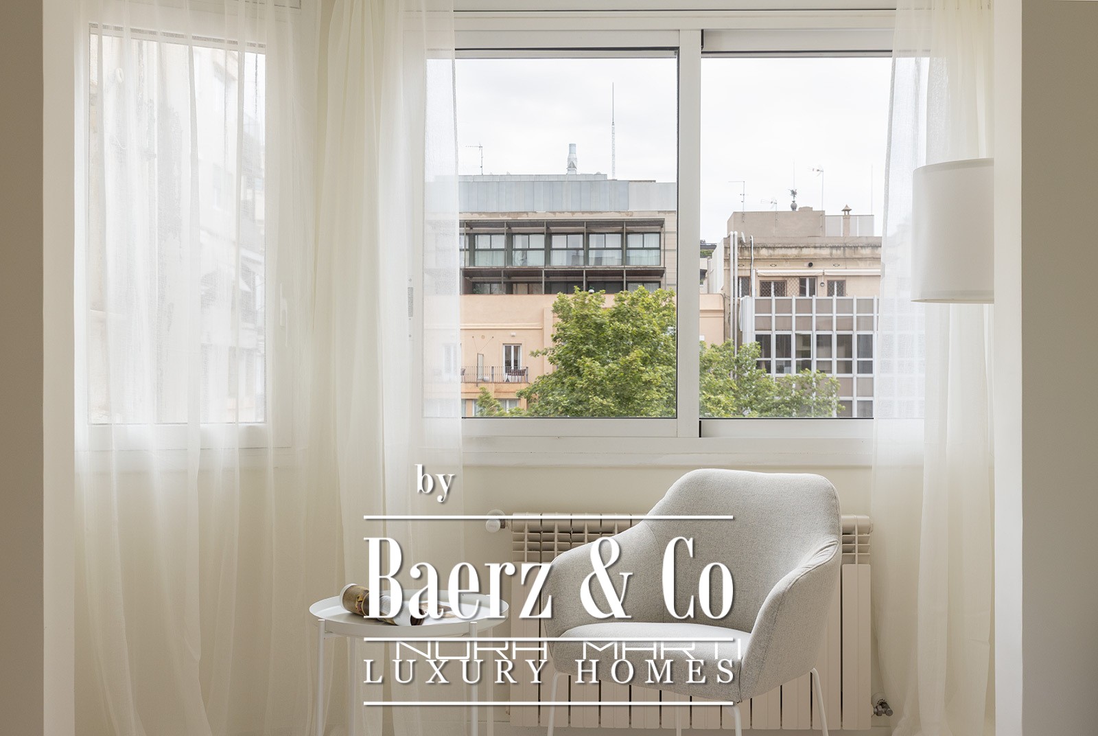 calm and tranquility with natural light. The home features a second bathroom and a shared study area for both bedrooms. The entire apartment is exterior, allowing the sun to permeate every room like a regular guest, and the atmosphere is filled with calm and comfort, like a refuge in the heart of the city. It is furnished with carefully selected designer pieces and is ready to move into. A unique property in the heart of the Eixample district, ideal for those seeking exclusivity, a prime location, and a stylish home in one of Barcelona's most iconic areas. Features include: Gas heating, ducted air conditioning, built-in wardrobes, and high-end appliances. The property also includes a concierge service. Rambla de Catalunya is an elegant Barcelona street that begins at the intersection with Gran Via and extends toward Avinguda Diagonal. At Consell de Cent, it crosses one of the streets that, since its recent pedestrianization, has further reinforced the peaceful and walkable character of this area. Developed in the 19th century as part of Ildefons Cerdà's ambitious Eixample plan, Rambla de Catalunya was conceived as a natural, bourgeois extension of Las Ramblas, but with a more residential and refined feel. From its beginnings, it attracted Barcelona's high society, who built elegant Modernist buildings and prestigious shops here. At this intersection, noble architecture blends with urban vegetation and the symmetrical layout of the Eixample. Today, this stretch symbolizes the neighborhood's essence: central, historic, vibrant, and full of life.