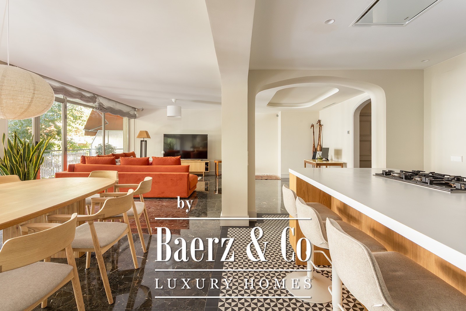 Dit luxe appartement aan de Barcelona Plaza Kennedy biedt een zeldzaam gevoel van ruimte en rust binnen een van de meest gewilde wijken van de stad. De woning beslaat 250 m² en grenst aan een royale, oostelijk georiënteerde terras van 200 m², een besloten podium voor lichte ochtenden of intieme bijeenkomsten met familie en vrienden. De open indeling van de woon- en eetruimte vloeit over in een moderne keuken, verfijnd en uitnodigend, waar lichtinval en ruimtelijkheid centraal staan.