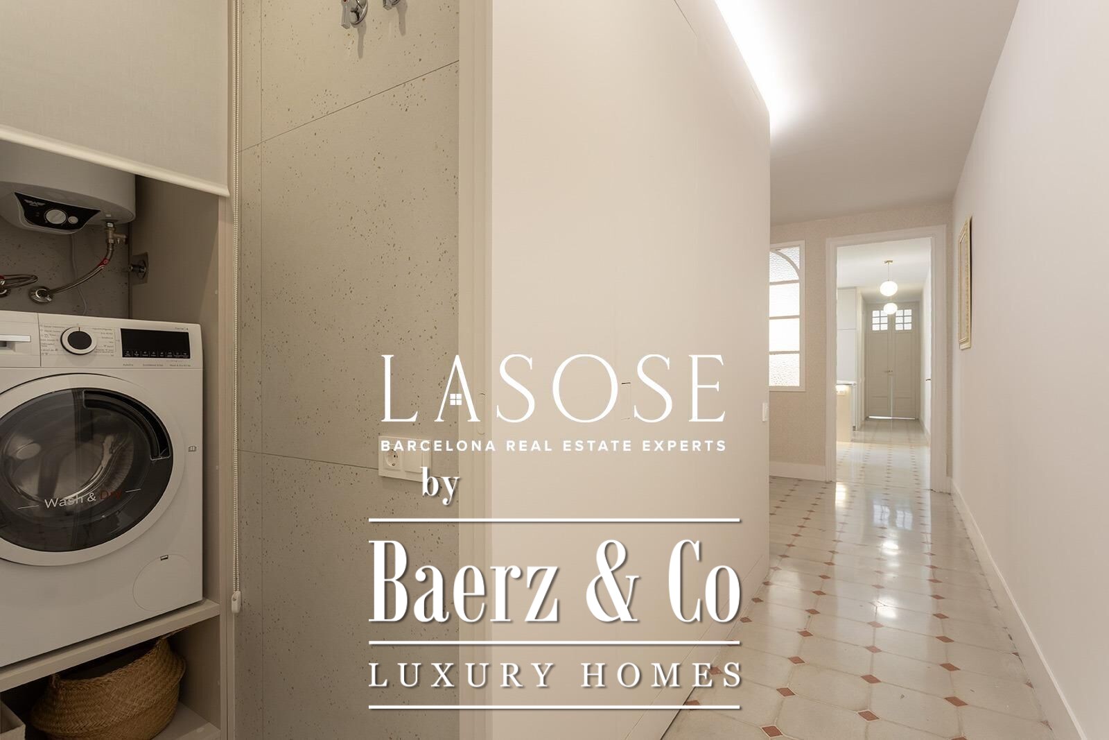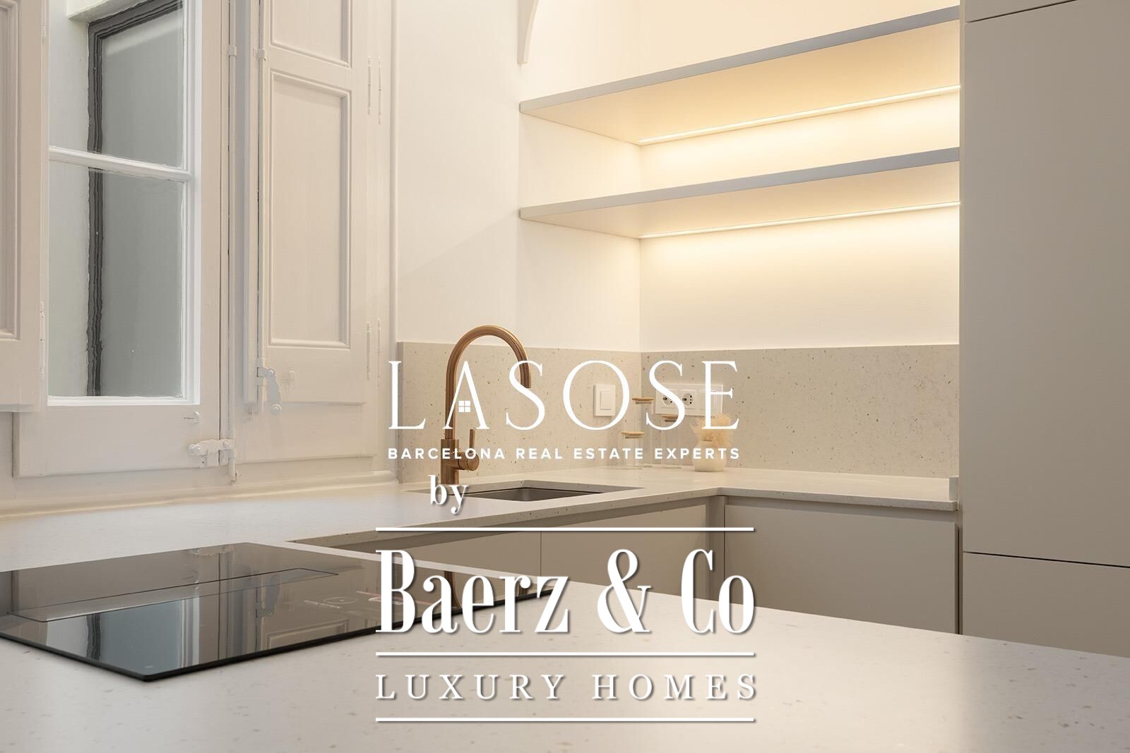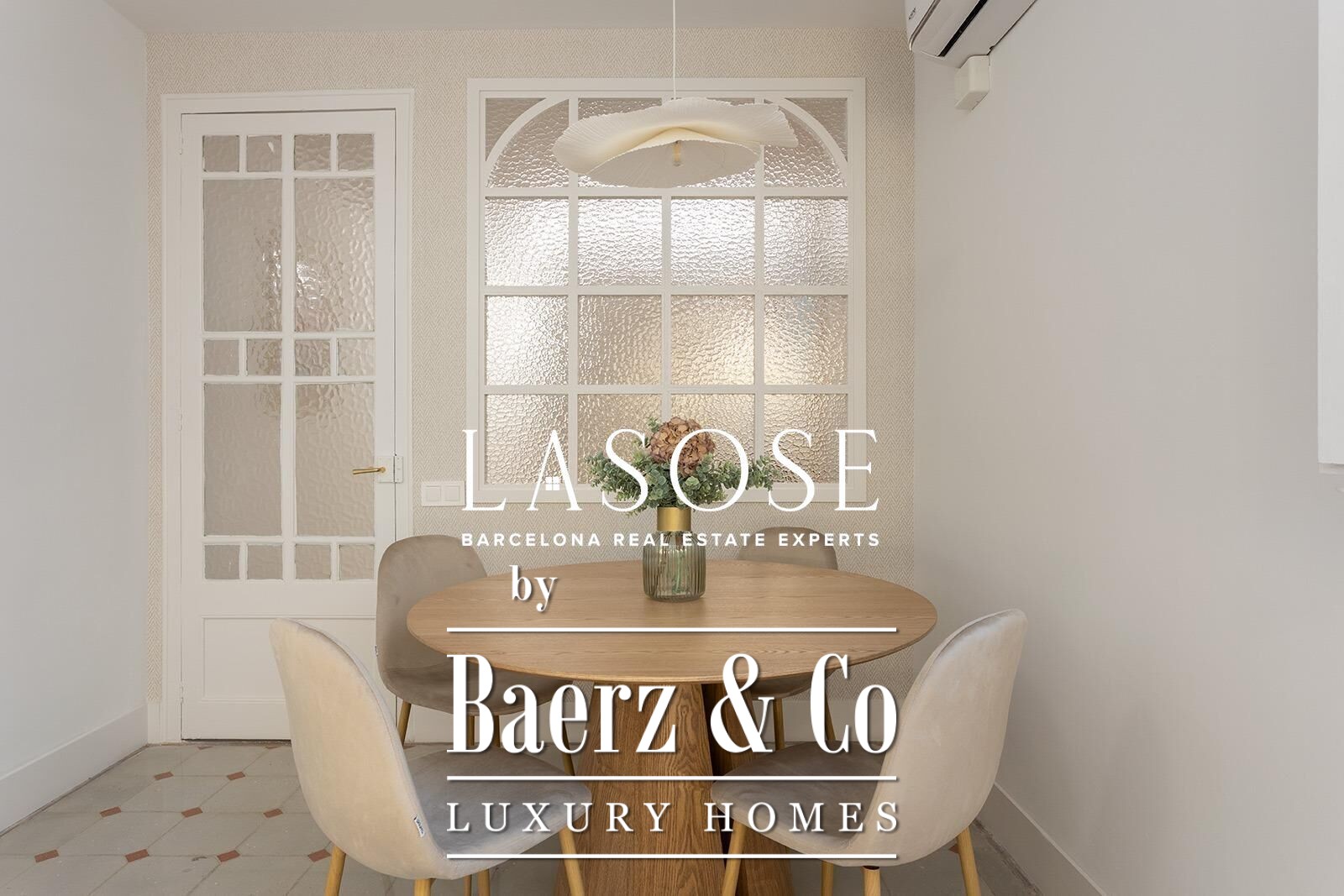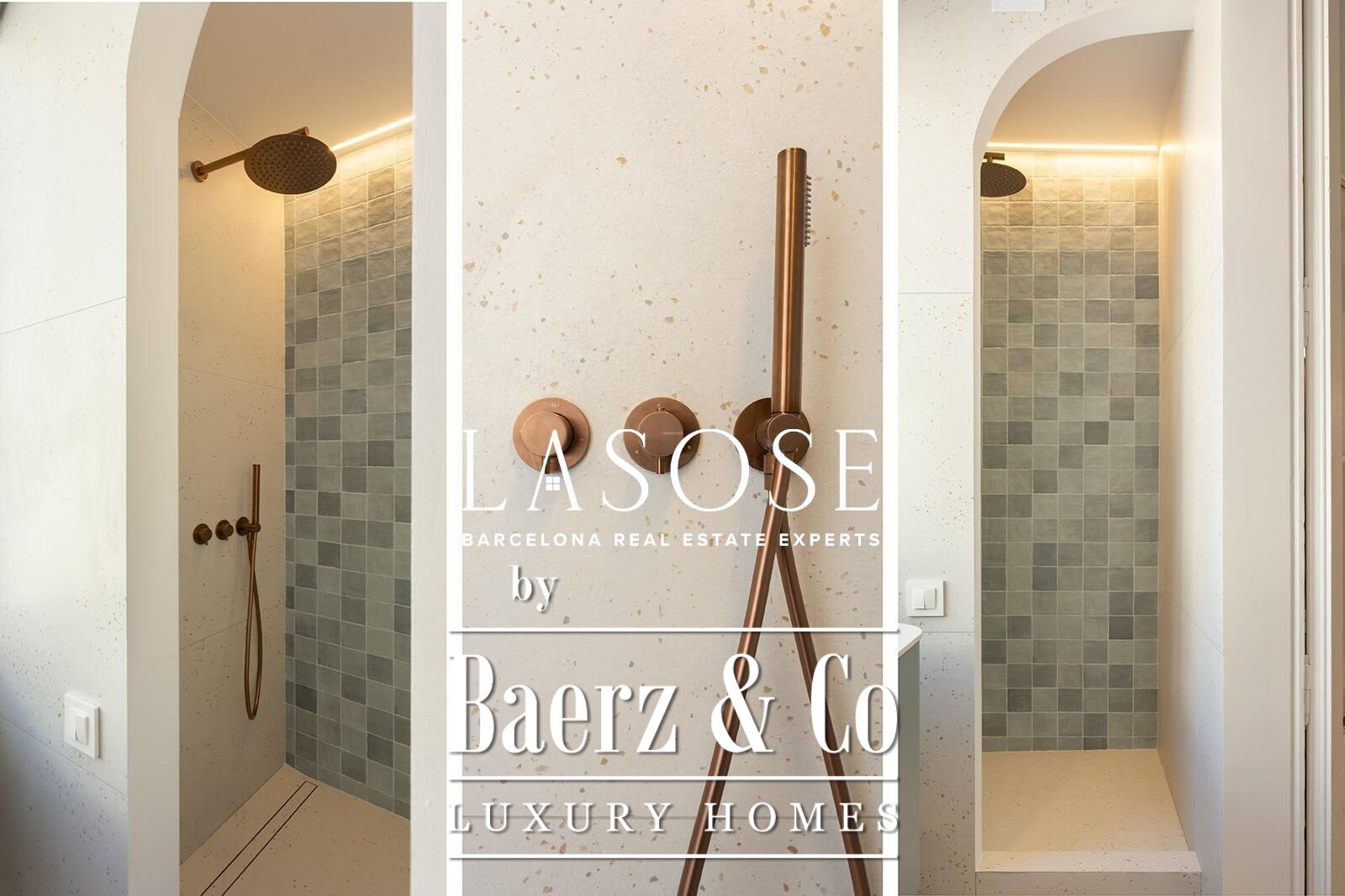 Apartment Barcelona is een residentie waar erfgoedarchitectuur harmonieus samengaat met eigentijdse renovatie, gelegen op de bovenste verdieping in Eixample. Het appartement van 115 m², volledig vernieuwd in 2025, geniet van overvloedig natuurlijk licht dankzij het zuidoostelijk georiënteerde balkon, waardoor de living zich vult met warmte en u vanuit de lounge een vrij uitzicht heeft. Originele hydraulische vloertegels en een zorgvuldig gerestaureerd Catalaans plafond benadrukken het vakmanschap uit de periode, terwijl moderne verlichting, stijlvolle badkamers en gloednieuwe apparatuur naadloos opgaan in het verfijnde geheel van dit huis.