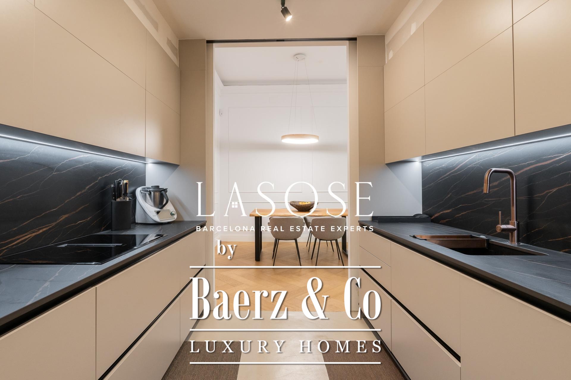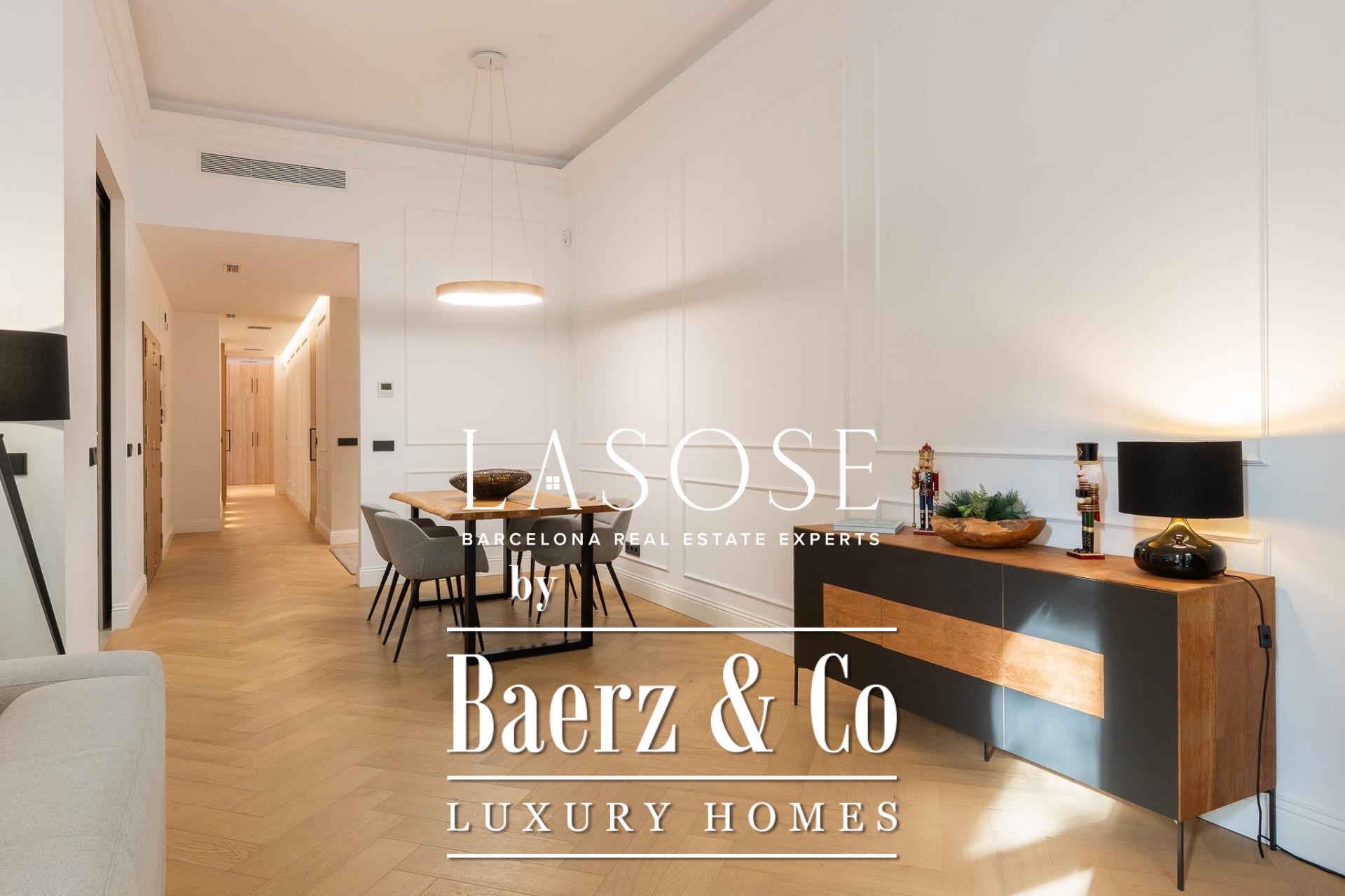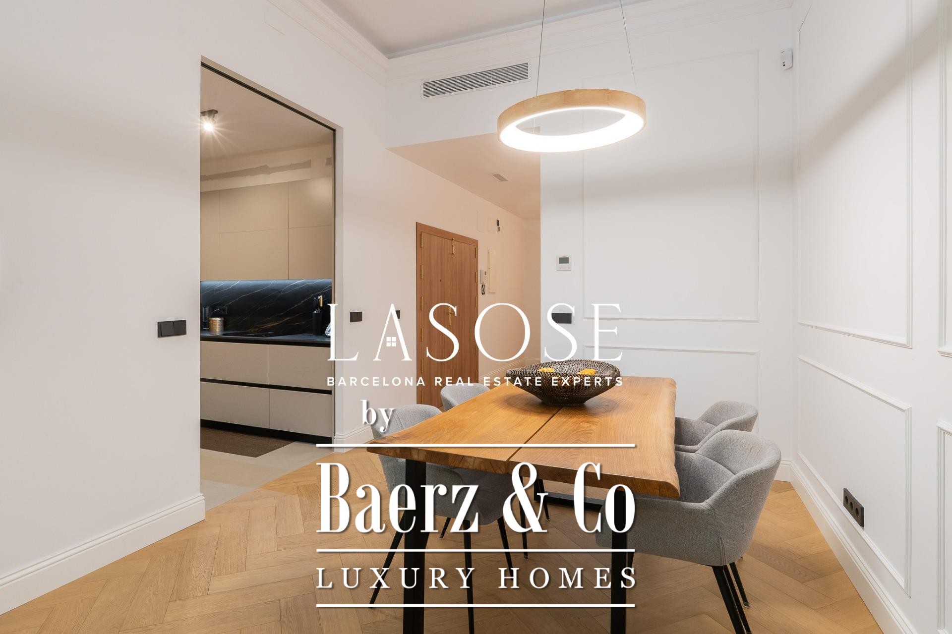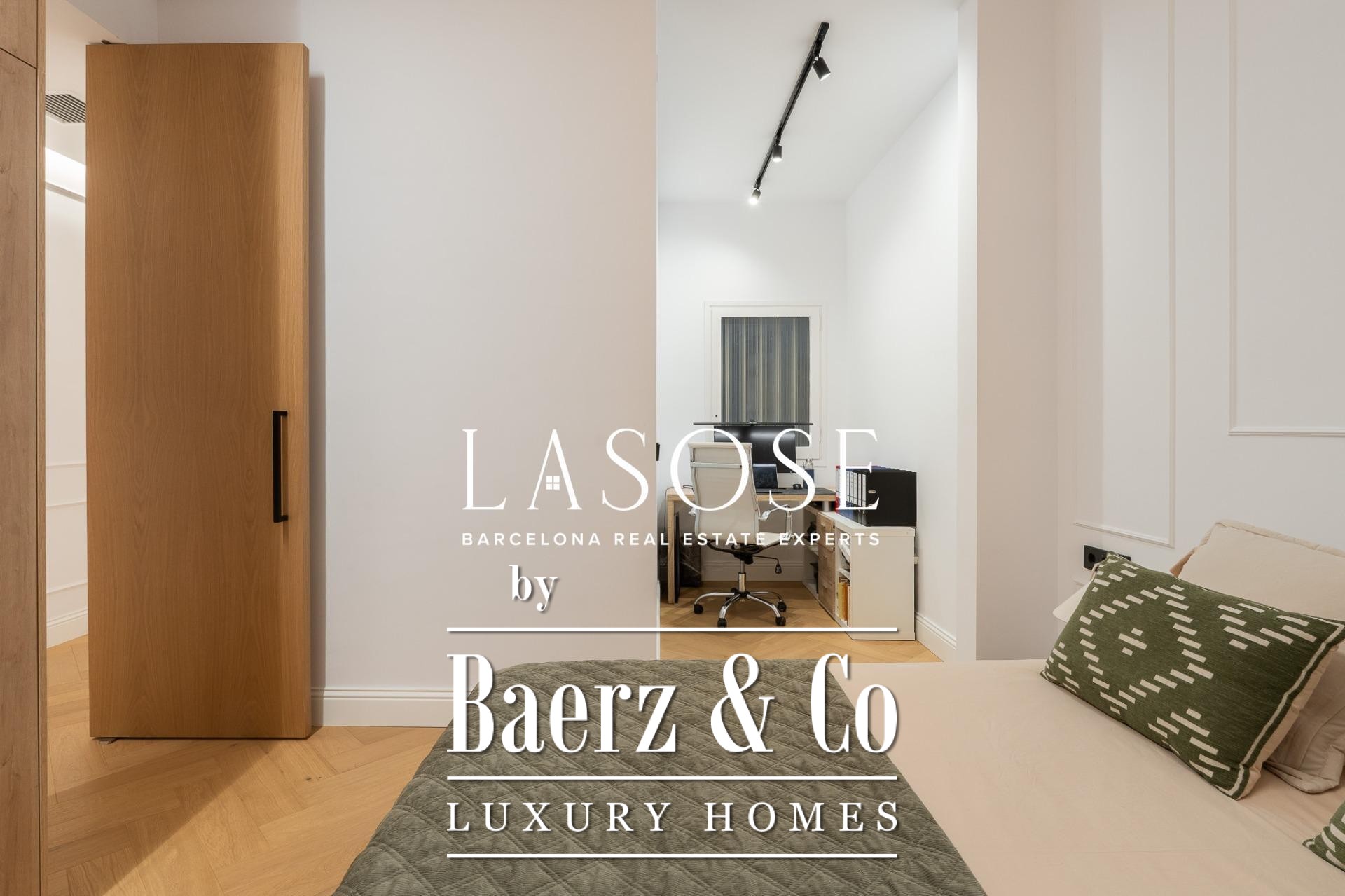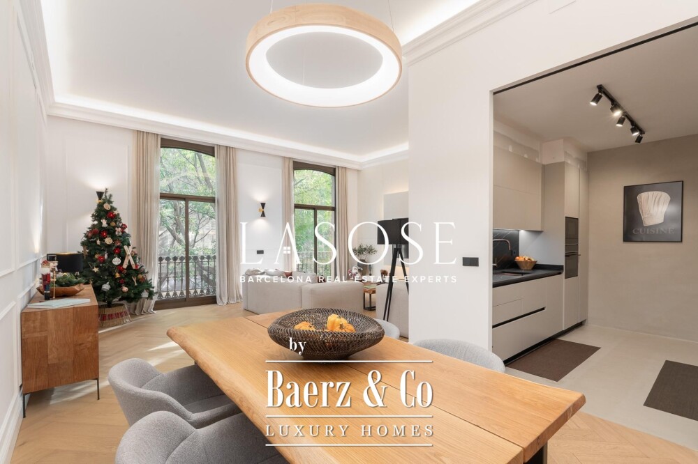 De indeling wordt gekenmerkt door een royale, zelfstandige woon- en eetkamer met hoge plafonds, drie slaapkamers—waaronder een verfijnde en suite, een tweepersoonskamer en een eenpersoonskamer—en twee complete badkamers. De volledig uitgeruste keuken is vormgegeven met een hedendaags ontwerp en eersteklas materialen, waardoor moderniteit en traditie naadloos samenkomen. Het balkon van circa 4,61 vierkante meter biedt veel licht, stadszicht en een directe verbinding met de sfeer van de Carrer de Casp.