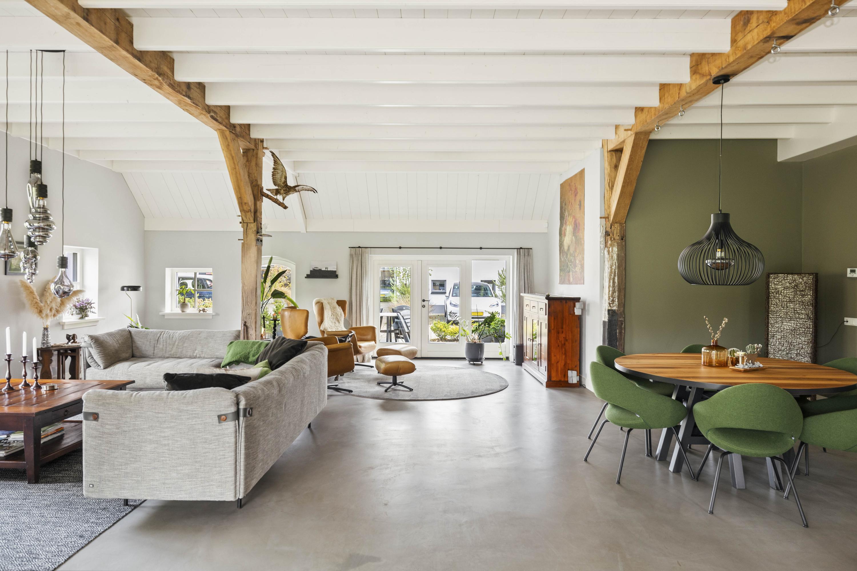 Deze magnifieke woonboerderij kreeg in 2016 haar huidige gestalte; toen werd de boerderij, die in 1924 gebouwd werd, van onder tot boven gerenoveerd. Hierbij lag de nadruk op verduurzaming; de buitenzijde werd volledig geïsoleerd met blokken styrofoam, rondom kreeg het huis nieuw HR+++-glas, er werd een water-water-warmtepomp aangelegd (die op 75 m diepte de warmte uitwisselt en ophaalt), de vloer binnen werd voorzien van een robuuste gietvloer – ideaal in combinatie met de vloerverwarming - en op de daken werden in totaal 110 (nee, dit is géén typfout) zonnepanelen gelegd. Onder de motorkap is dit huis één en al state-of-the-art technisch vernuft. Zelfs het kleurenpalet – de buitenzijde is wit gekeimd met grijs houtwerk en kraalrand – draagt bij aan het energiezuinige karakter van het huis, want waar de witte gevels het zonlicht reflecteren, absorbeert het grijs de warmte. Dit huis heeft niet alleen nul op de meter, het levert ook nog eens fiks terug! Een thuisbatterij is hier dus een prima aanvulling.