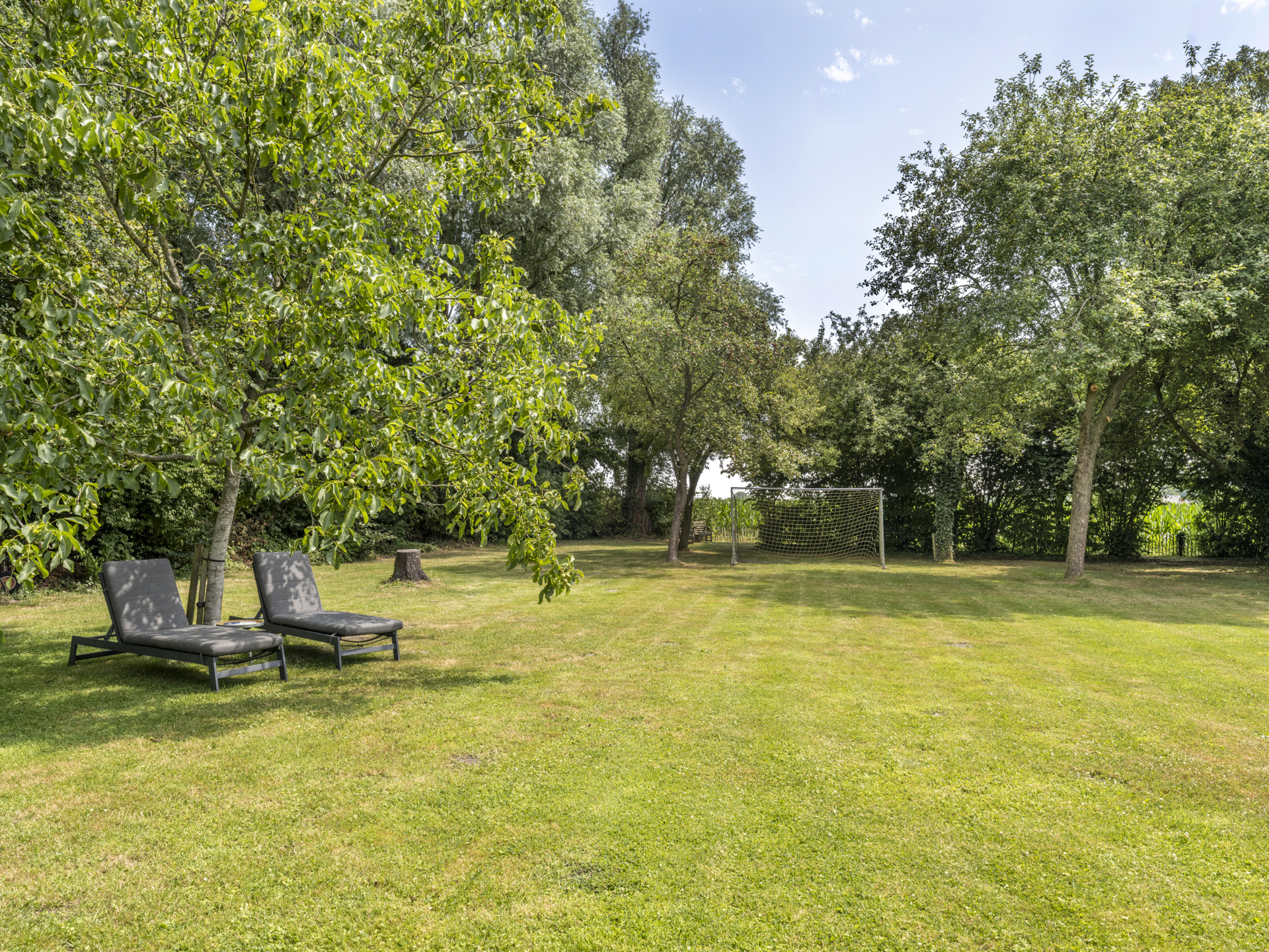 De tuin biedt zeer veel privacy en beschikt over diverse terrassen, waarvan één overkapt. Verder is de tuin rijk aan diverse boomsoorten; noten, eiken, amandel en hoogstamfruitbomen.