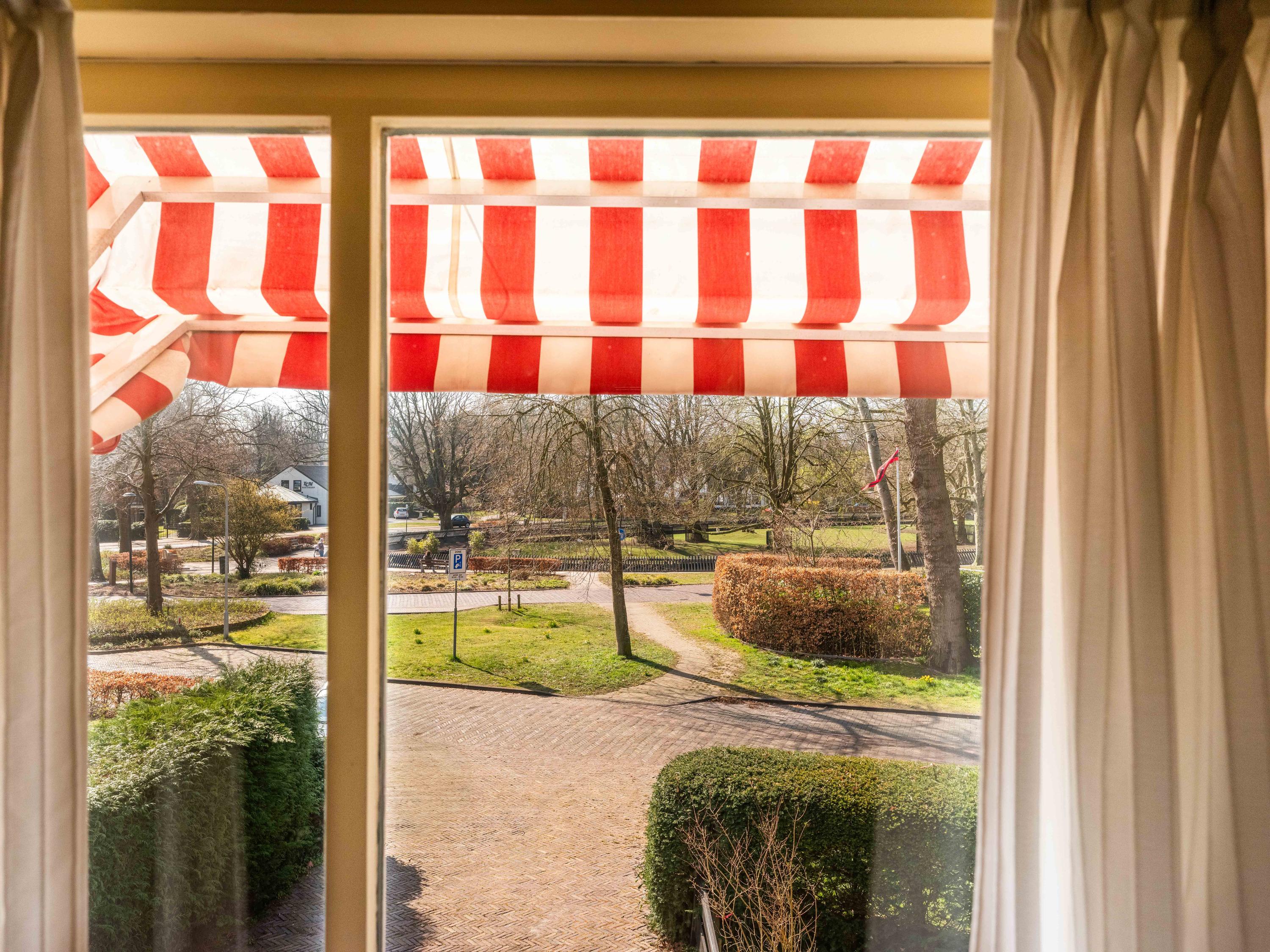 De woonkamer met erker is heerlijk licht. Een parketvloer met bies geeft een chique uitstraling. Openslaande deuren leiden naar diverse terrassen, waar u ervoor kunt kiezen heerlijk in de zon of in de schaduw te gaan zitten.