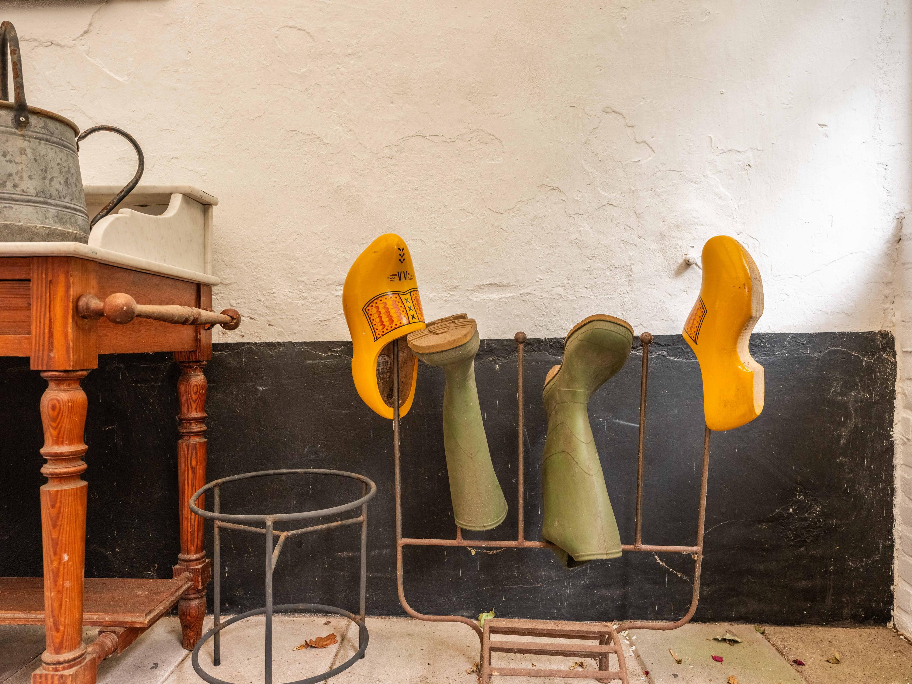 De eerste verdieping van de boerderij, nu een inpandige bergruimte, is nog helemaal naar eigen inzicht in te delen en te verbouwen naar extra woonruimte. Een gigantisch grote ruimte met direct zicht op de houten balken en de rieten kap. Wel vinden we hier nog de oude verwarmde knechtenkamer, deze dient nu als opslagruimte.