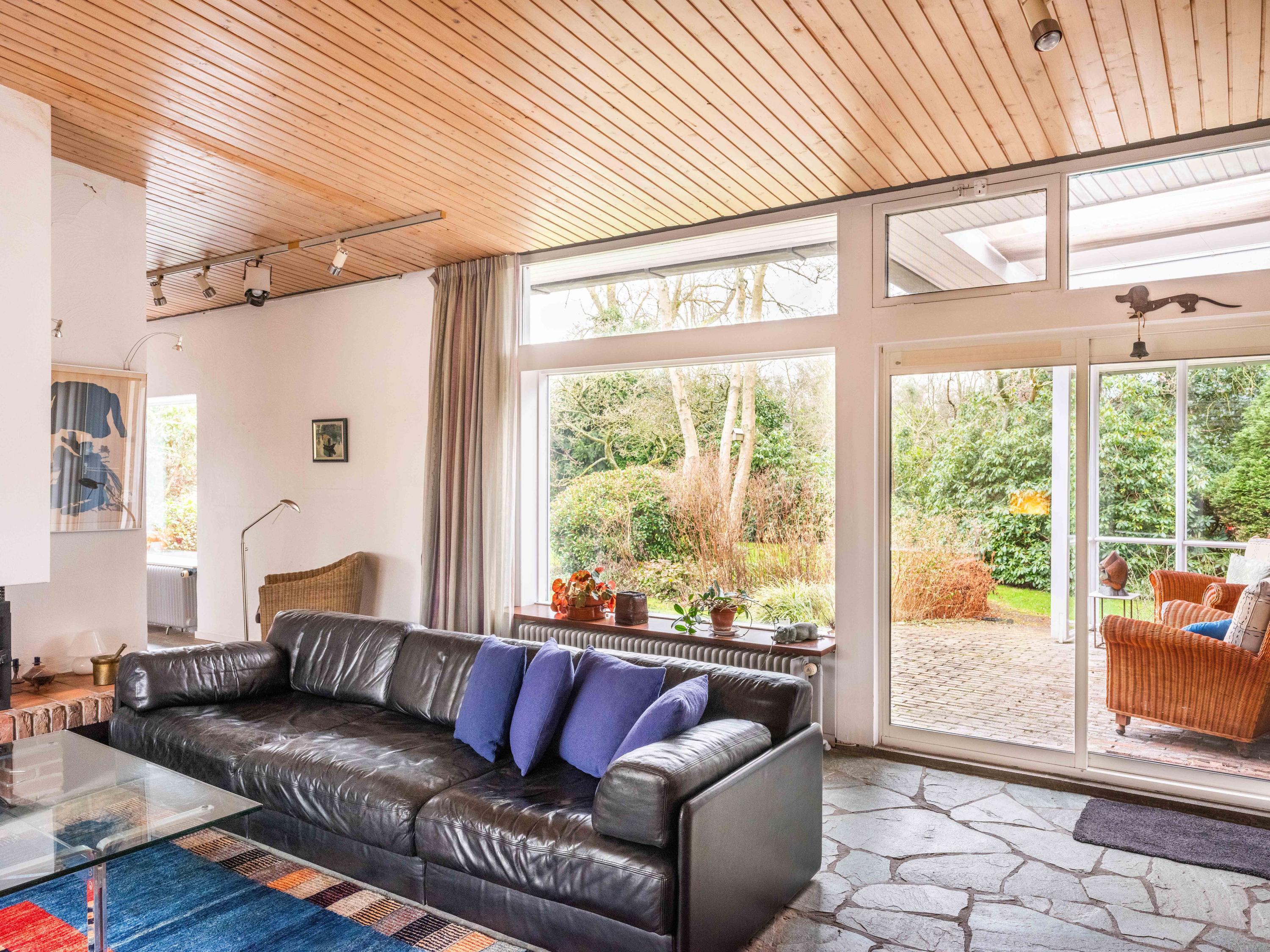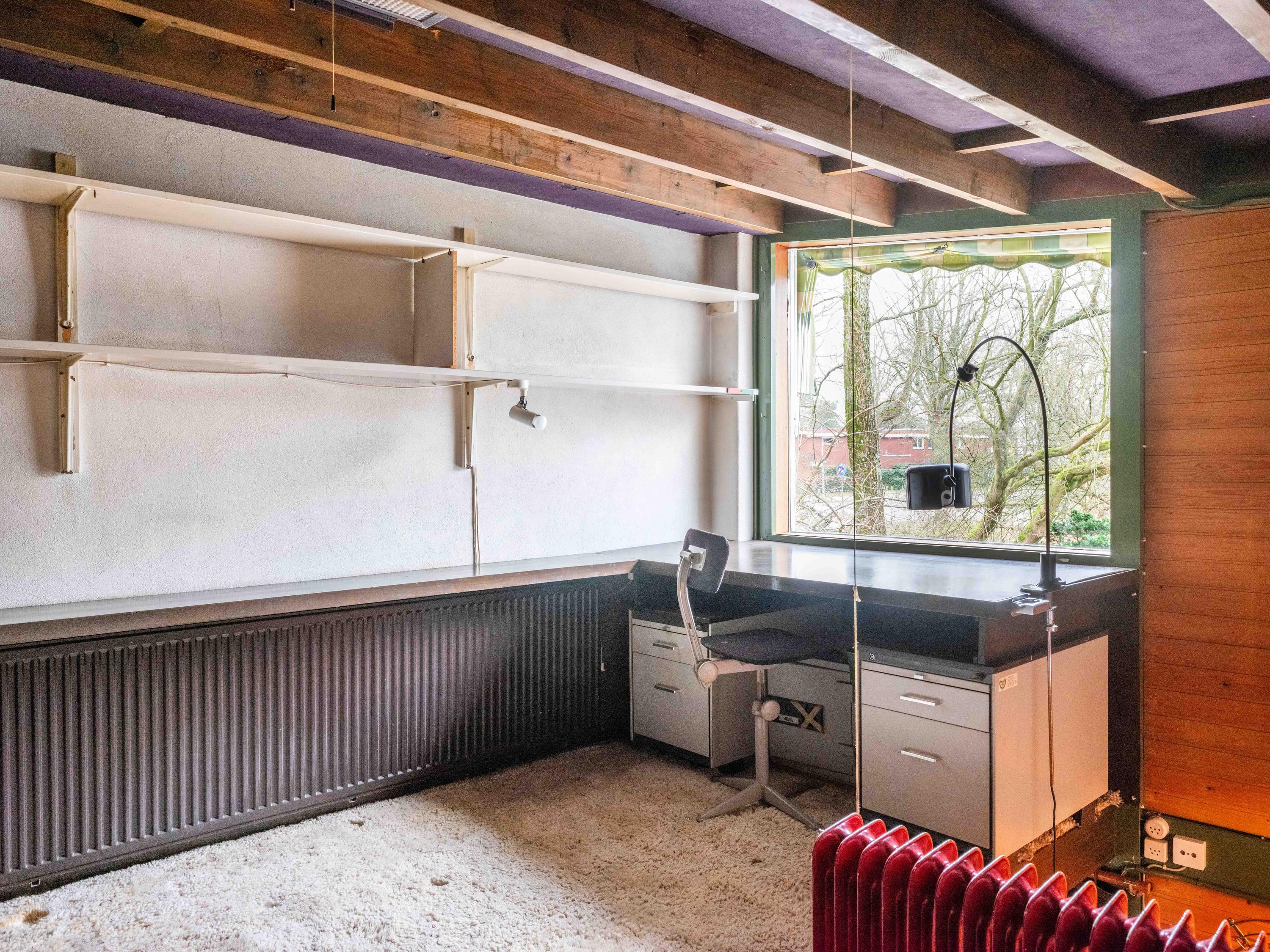 Licht, lucht en ruimte zijn de sleutelwoorden van deze woning, gebouwd in de jaren '50 en sindsdien zorgvuldig onderhouden. De principes van de Nieuwe Zakelijkheid komen tot uiting in de platte daken, strakke lijnen en de naadloze verbinding tussen binnen en buiten. De grote schuifpui in de woonkamer vervaagt de grens tussen interieur en exterieur, terwijl de loggia een perfecte overgang biedt naar de omringende natuur. U dient hier zelf wel nog hedendaags woongenot en enige luxe aan toe te voegen, maar dan krijgt u ook wat.