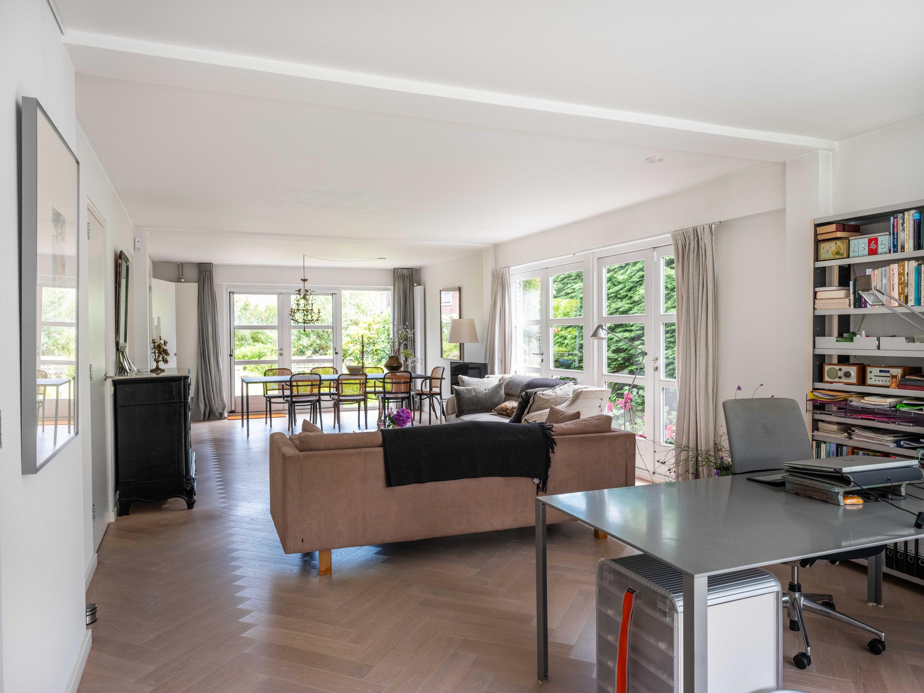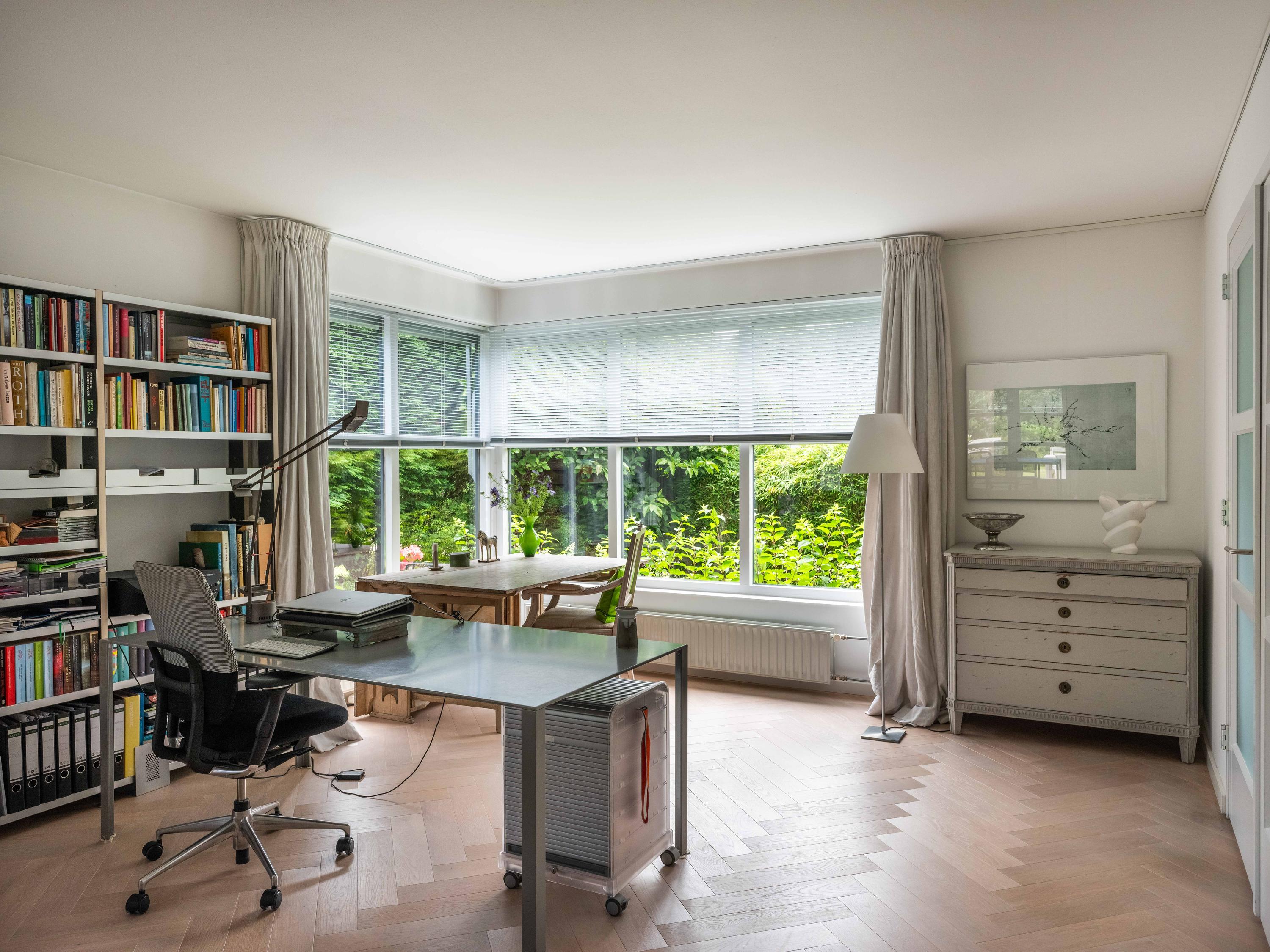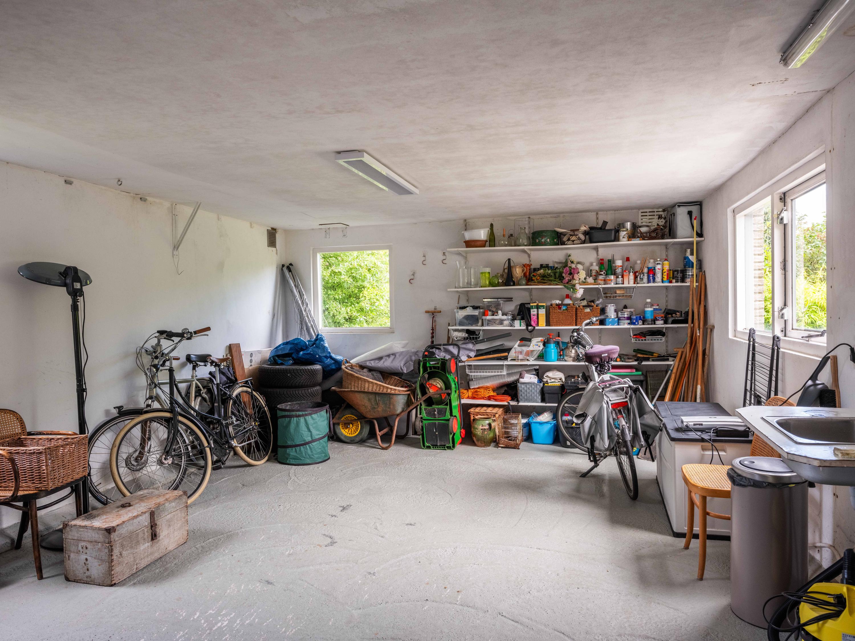 De Bulthaup keuken is uitgerust met een Atag oven, 5-pits gasfornuis, vaatwasser en koelkast. Via een tussenhal met toegang tot de tuin bereikt u een grote berging, voorheen een garage. Deze is voorzien van een water en elektra aansluiting.