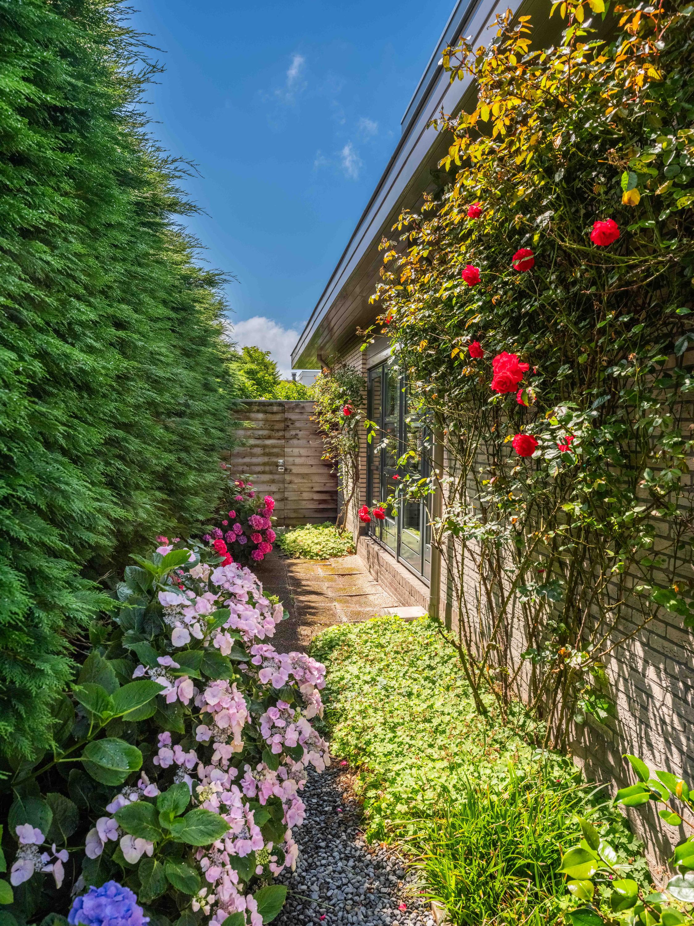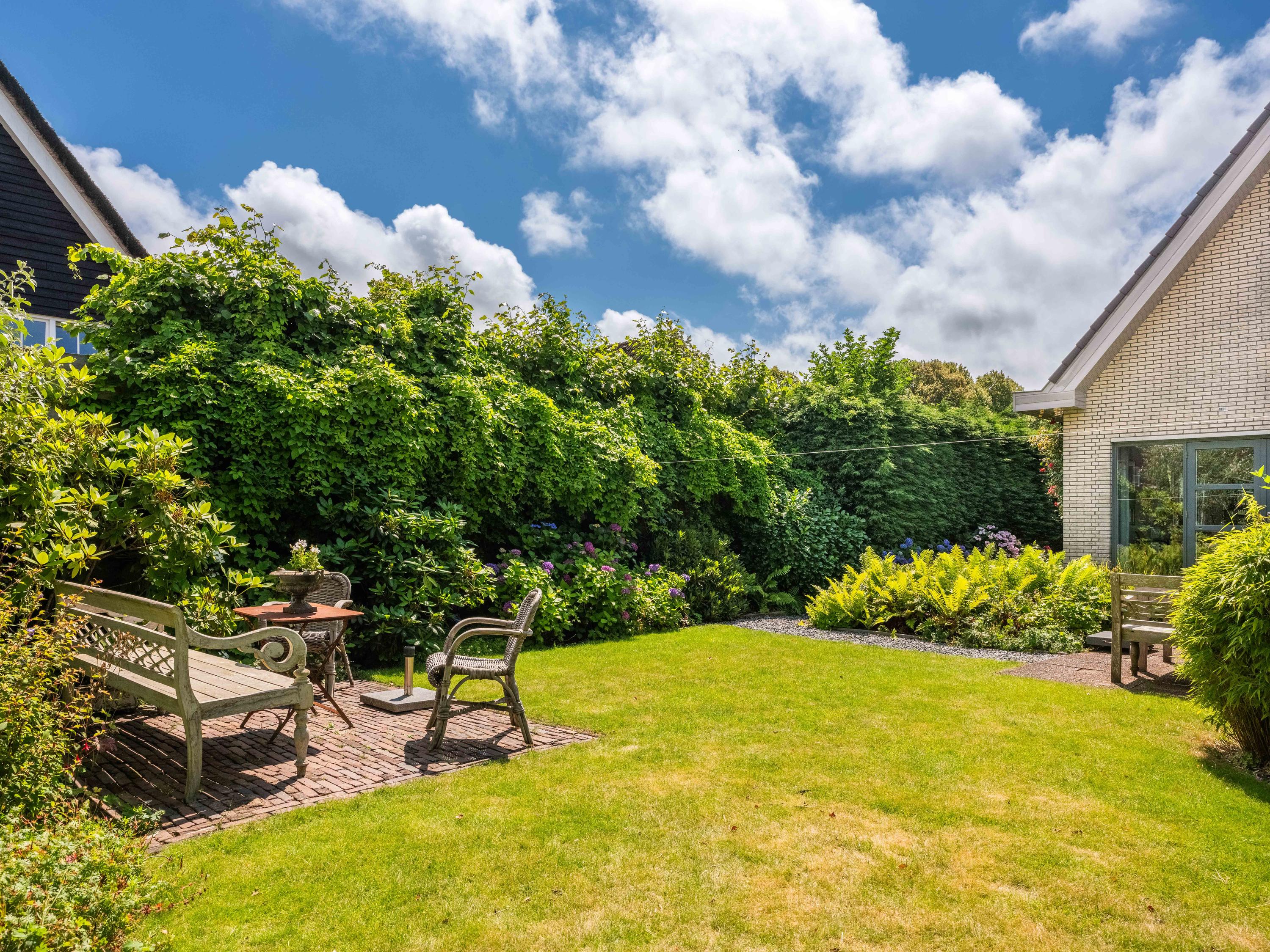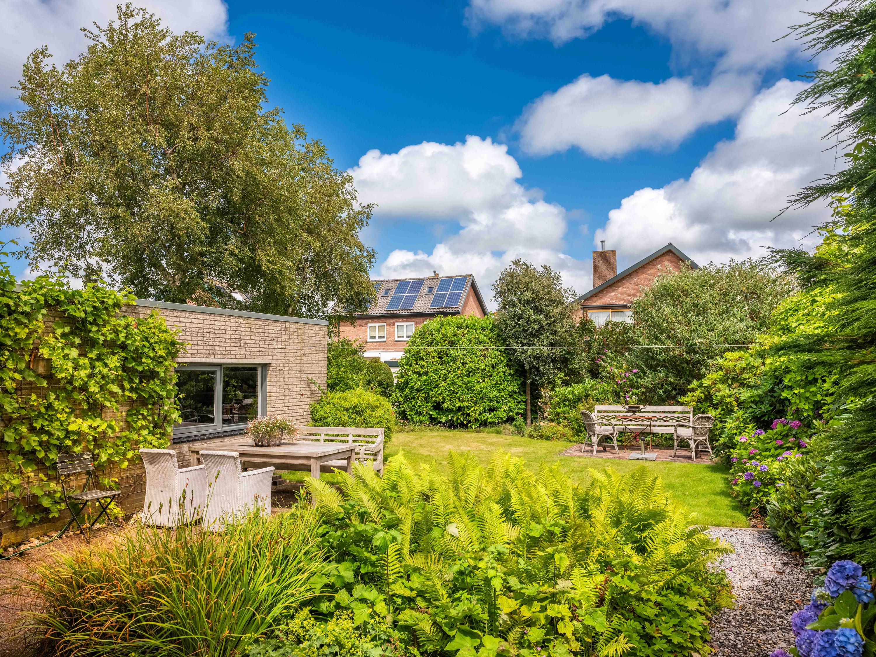De grote zonovergoten tuin achter het huis, met diverse terrassen en veel privacy, maakt dit huis compleet.