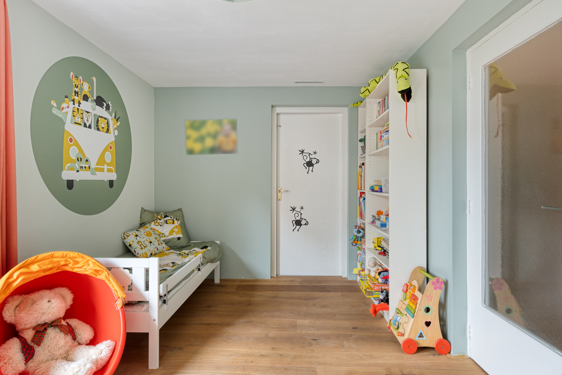 Aan de vierde slaapkamer grenst een praktische berging met toegang tot de tuin.