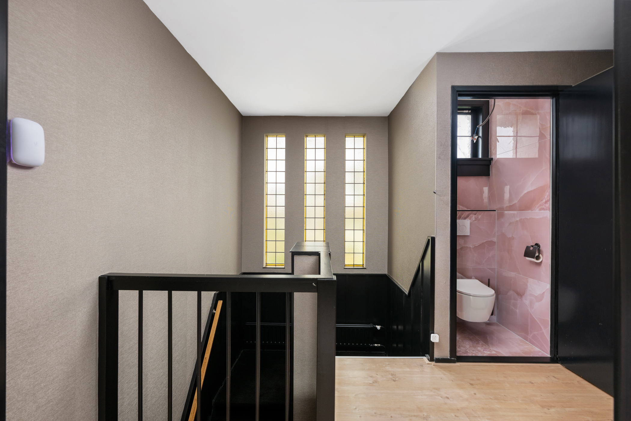 Overloop met separaat toilet en toegang tot alle vertrekken.