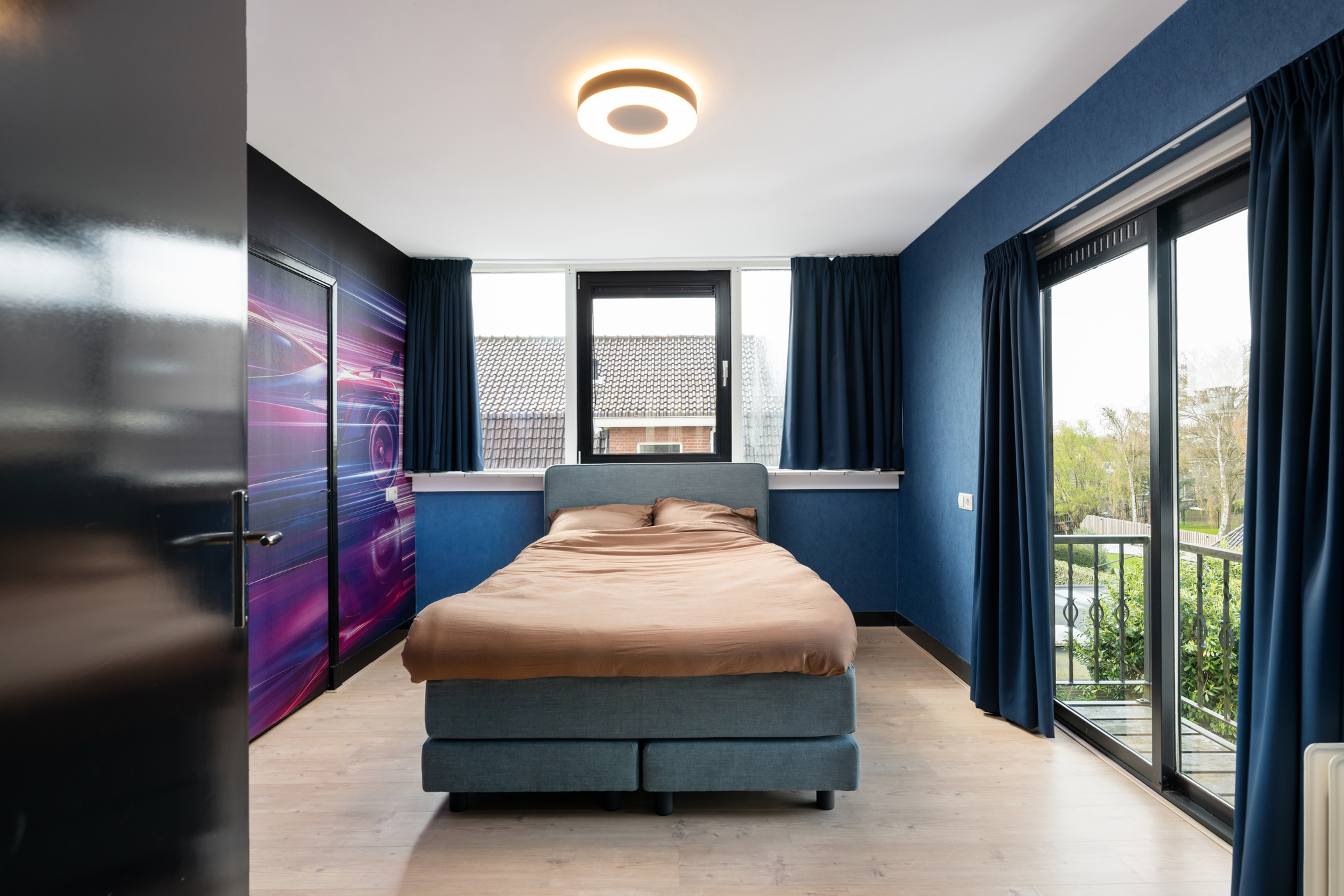 Slaapkamer 4 (achterzijde) met vaste kasten en toegang tot het balkon