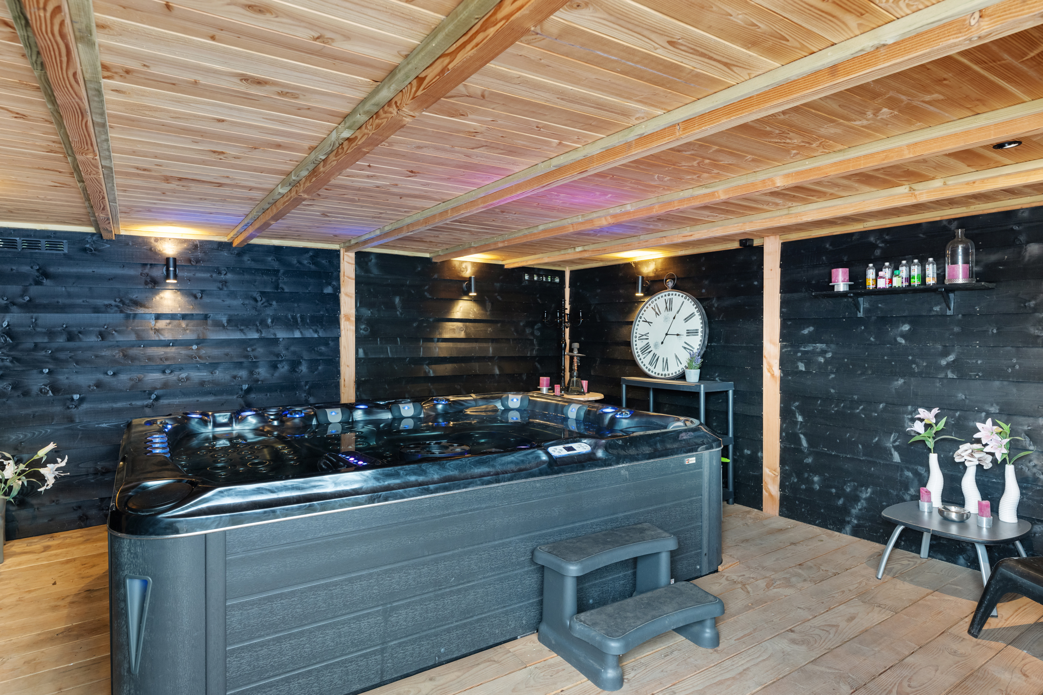 De tuin beschikt over een overkapping met jacuzzi en biedt volop mogelijkheden voor verdere invulling, zoals het realiseren van een zwembad. Daarnaast is de tuin afsluitbaar middels een hekwerk, wat bijdraagt aan het gevoel van veiligheid en privacy.
