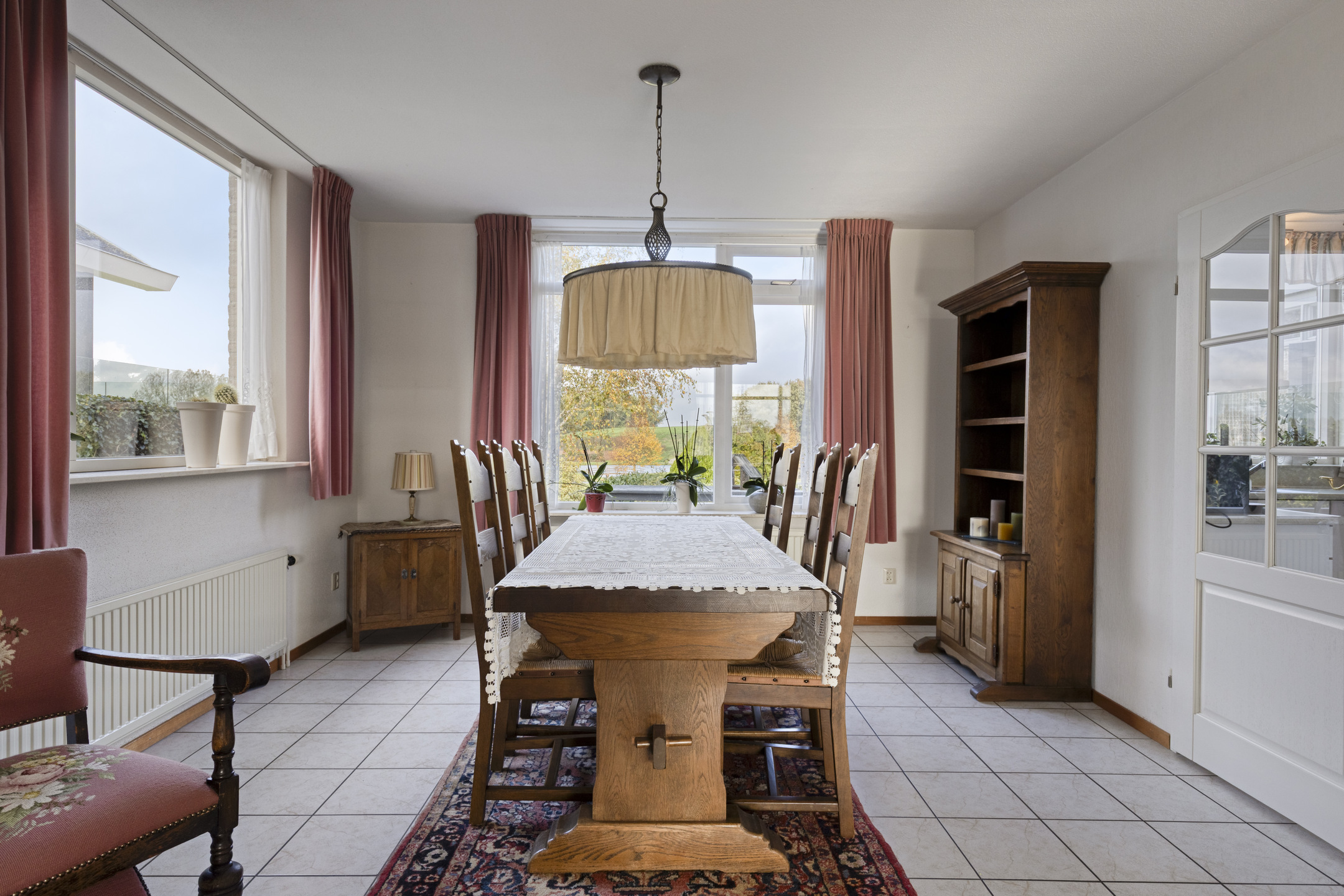 De royale woonkamer aan de voorzijde is heerlijk licht dankzij de grote raampartijen en is voorzien van een plavuizen vloer met vloerverwarming. Via de schuifpui loop je zo de tuin in. De eetkamer sluit aan op de keuken, die is uitgevoerd in L-opstelling en voorzien van diverse inbouwapparatuur zoals een vaatwasser, koel-vriescombinatie, keramische kookplaat, afzuigkap en spoelbak met mengkraan.