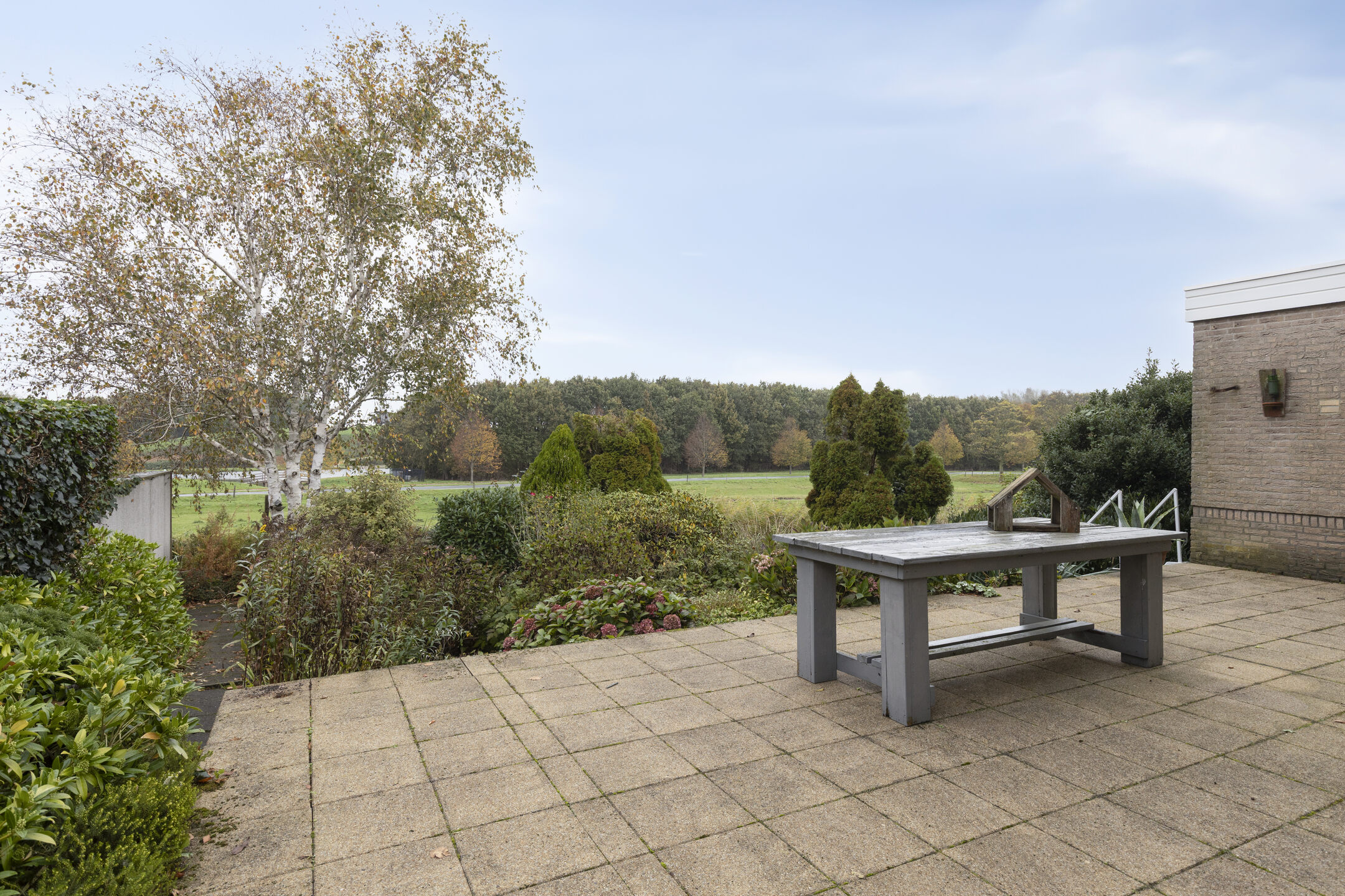 De ruime en zonnige achtertuin ligt op het noordwesten en biedt een weids uitzicht over het groen en het Lage Bergse Bos. Een ideale plek voor lange zomeravonden, een borrel met vrienden of gewoon om lekker tot rust te komen.